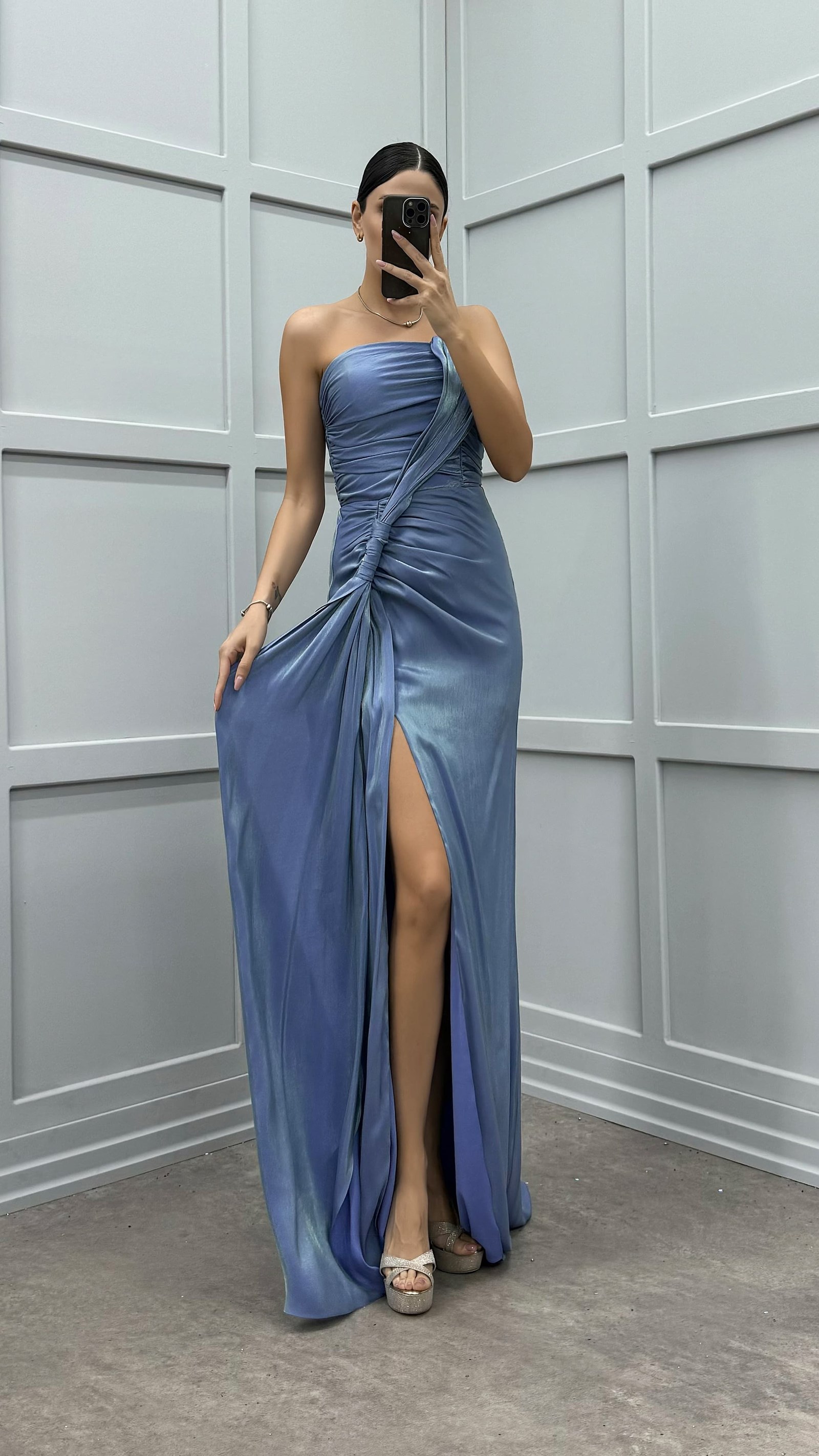 Bebe Mavi Straplez Bel Detay Tasarım Abiye