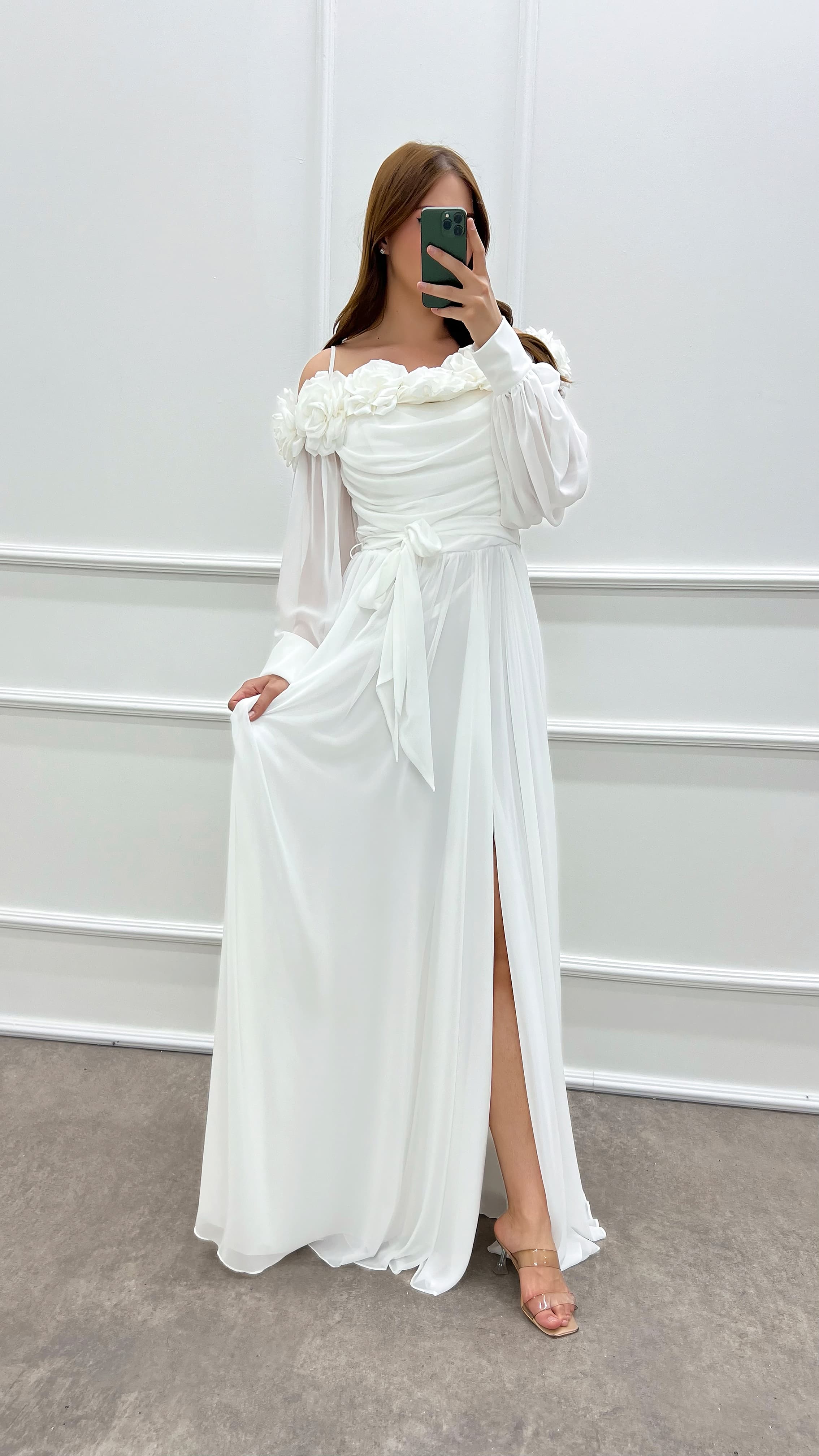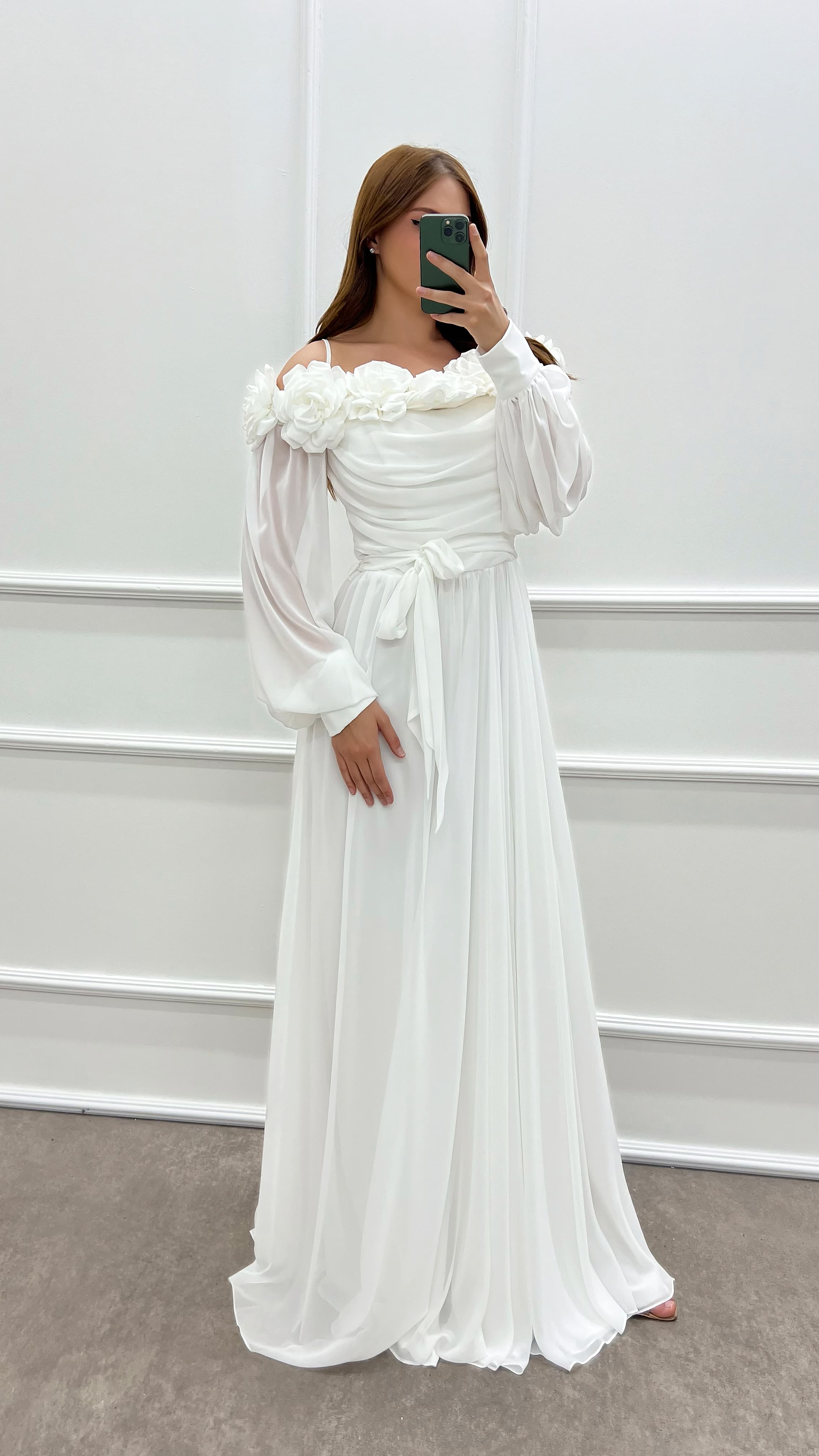 فستان شيفون بمقاس كبير وأكمام بالونية باللون الأبيض
