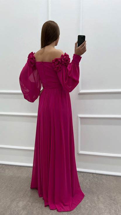 فستان فوشيا على شكل صدر وردي وأكمام من الشيفون مقاس كبير