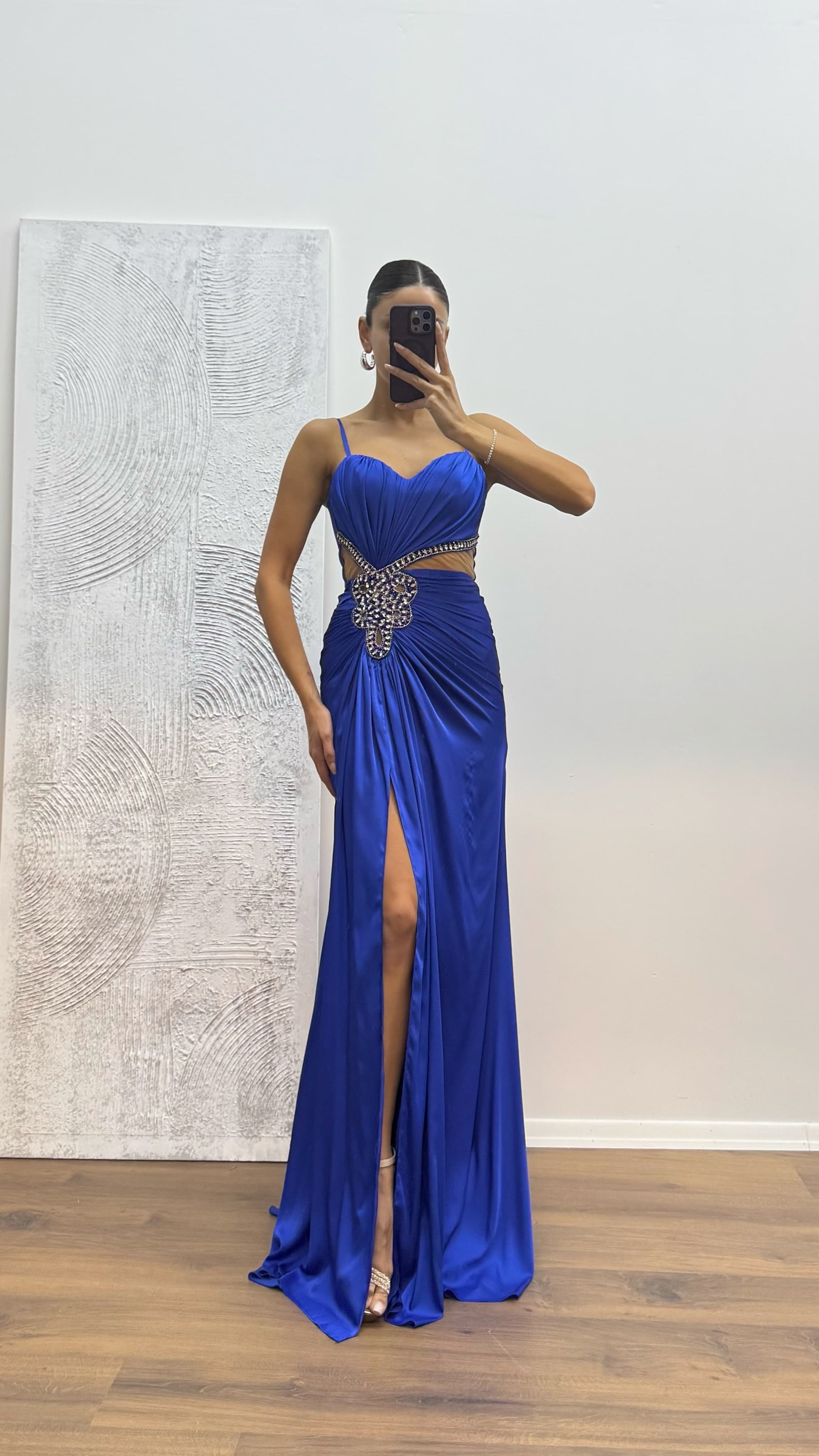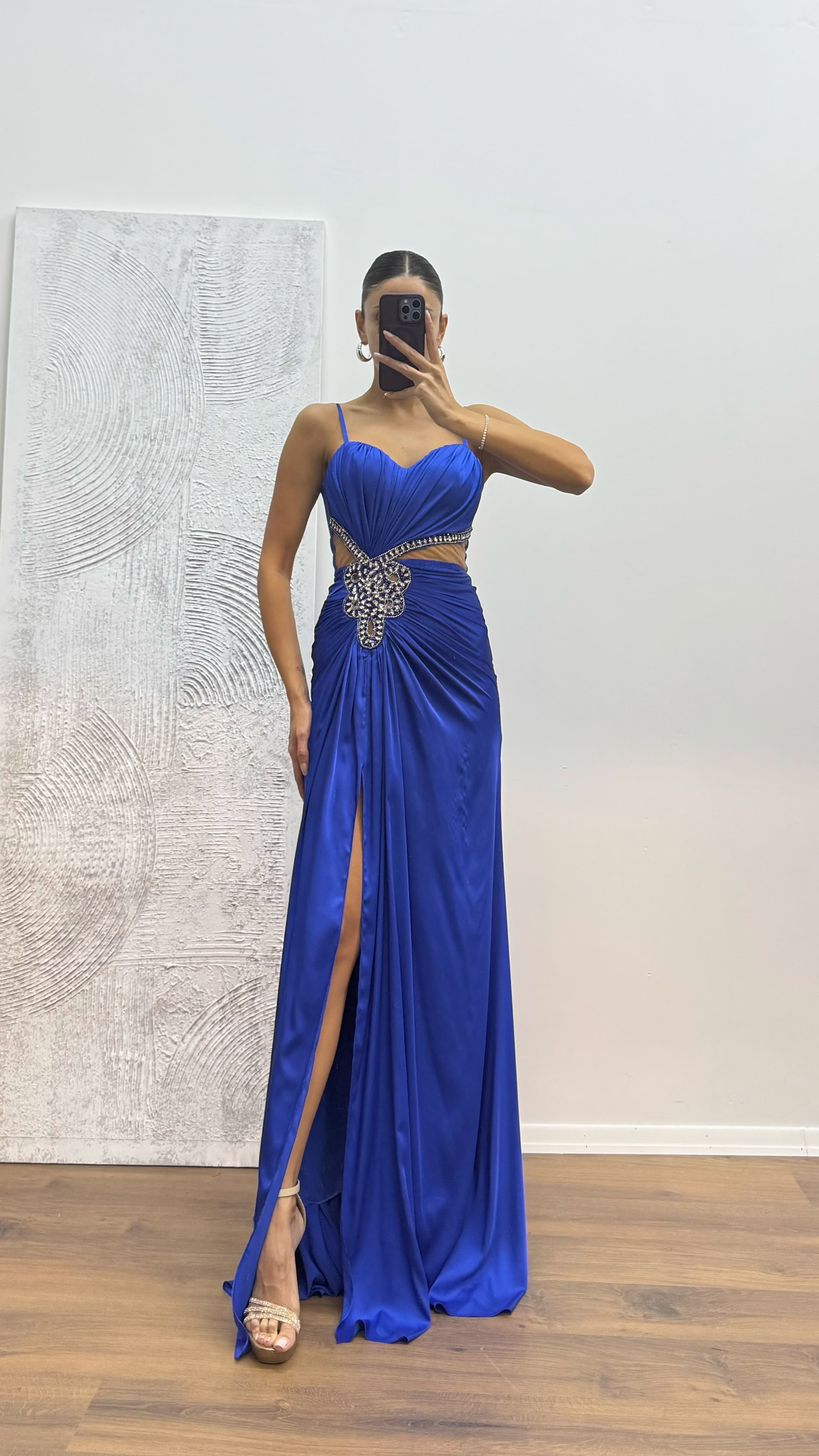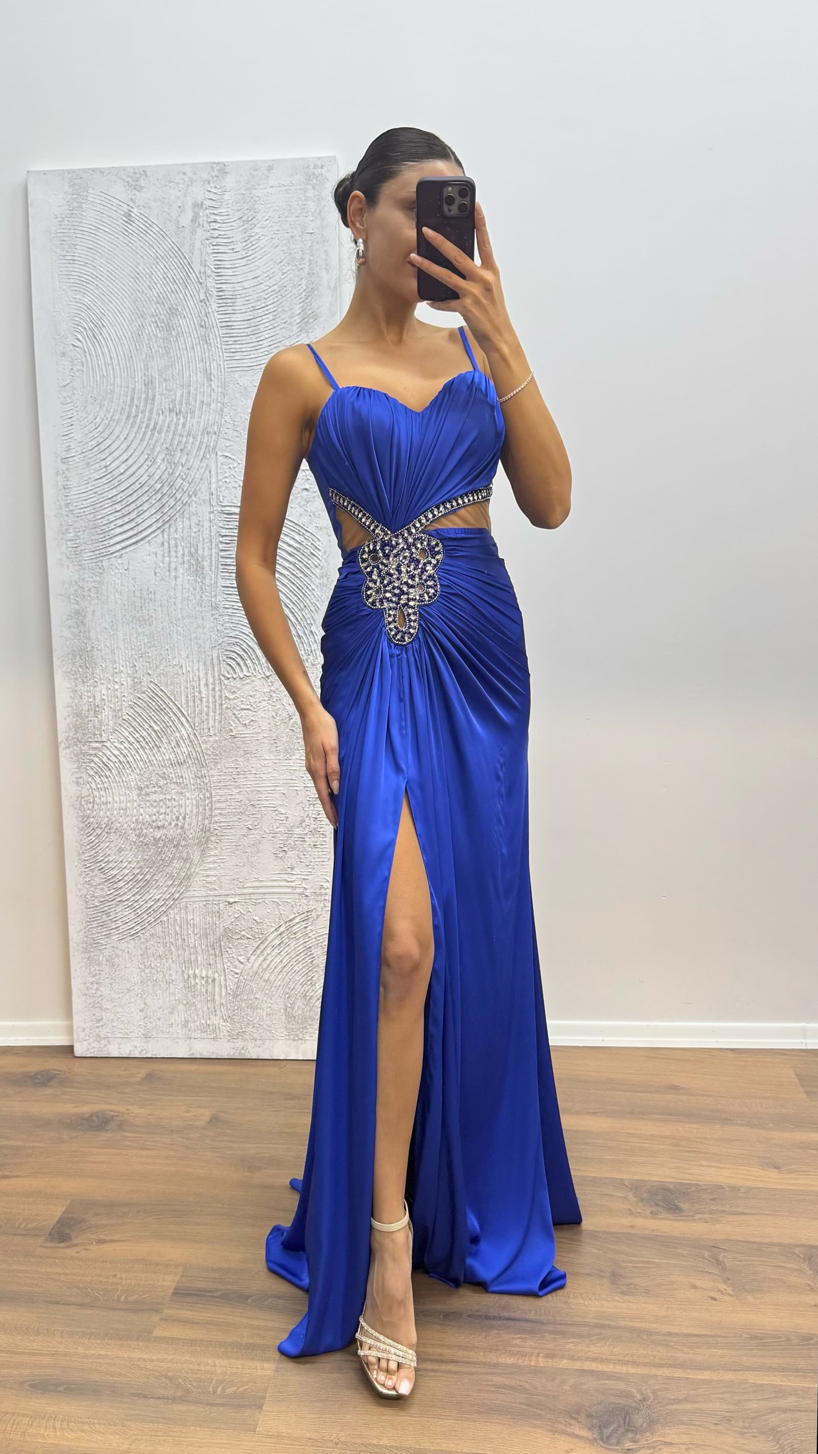 • Yeşil İşleme Detay Saten Abiye Elbise