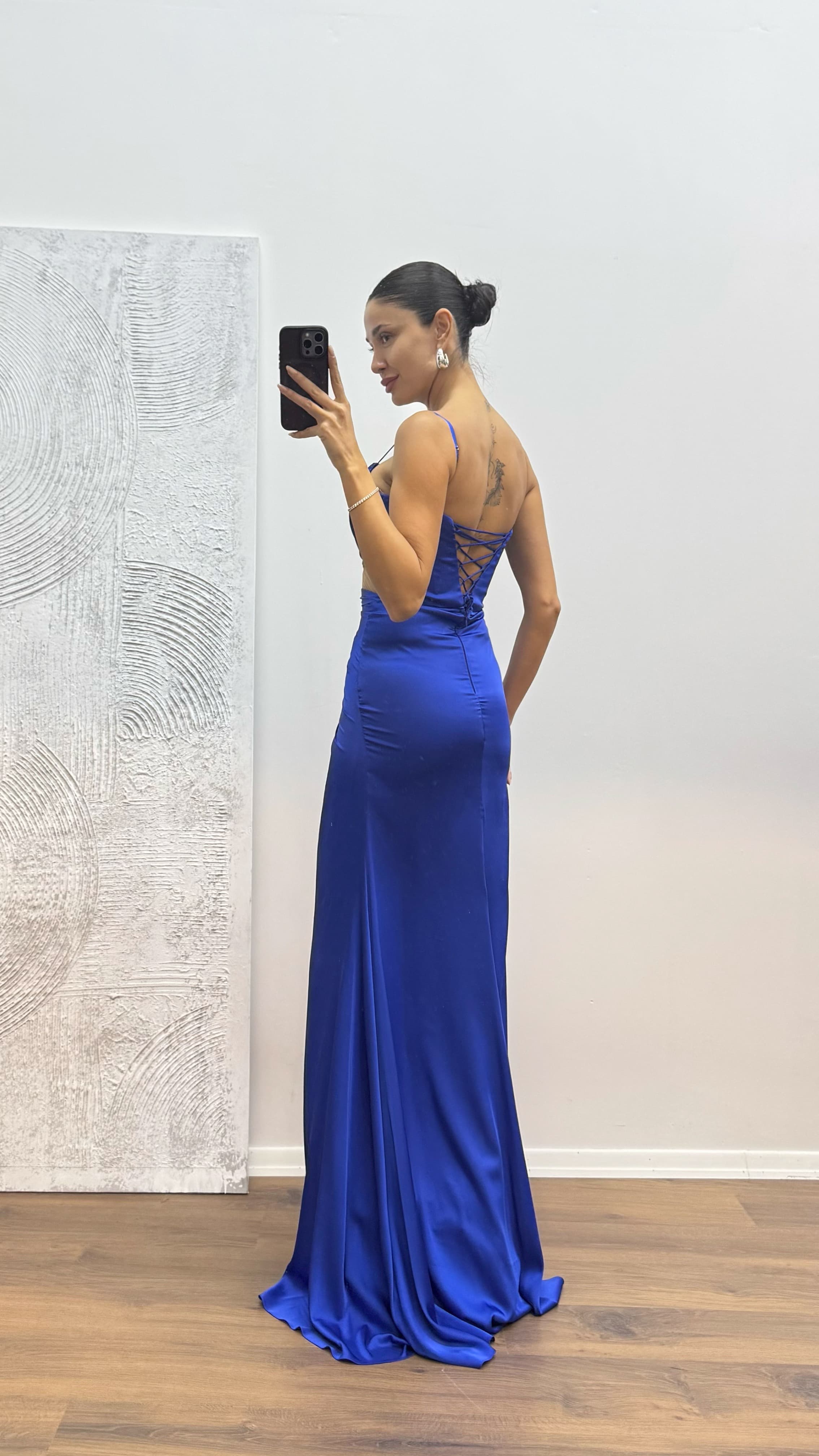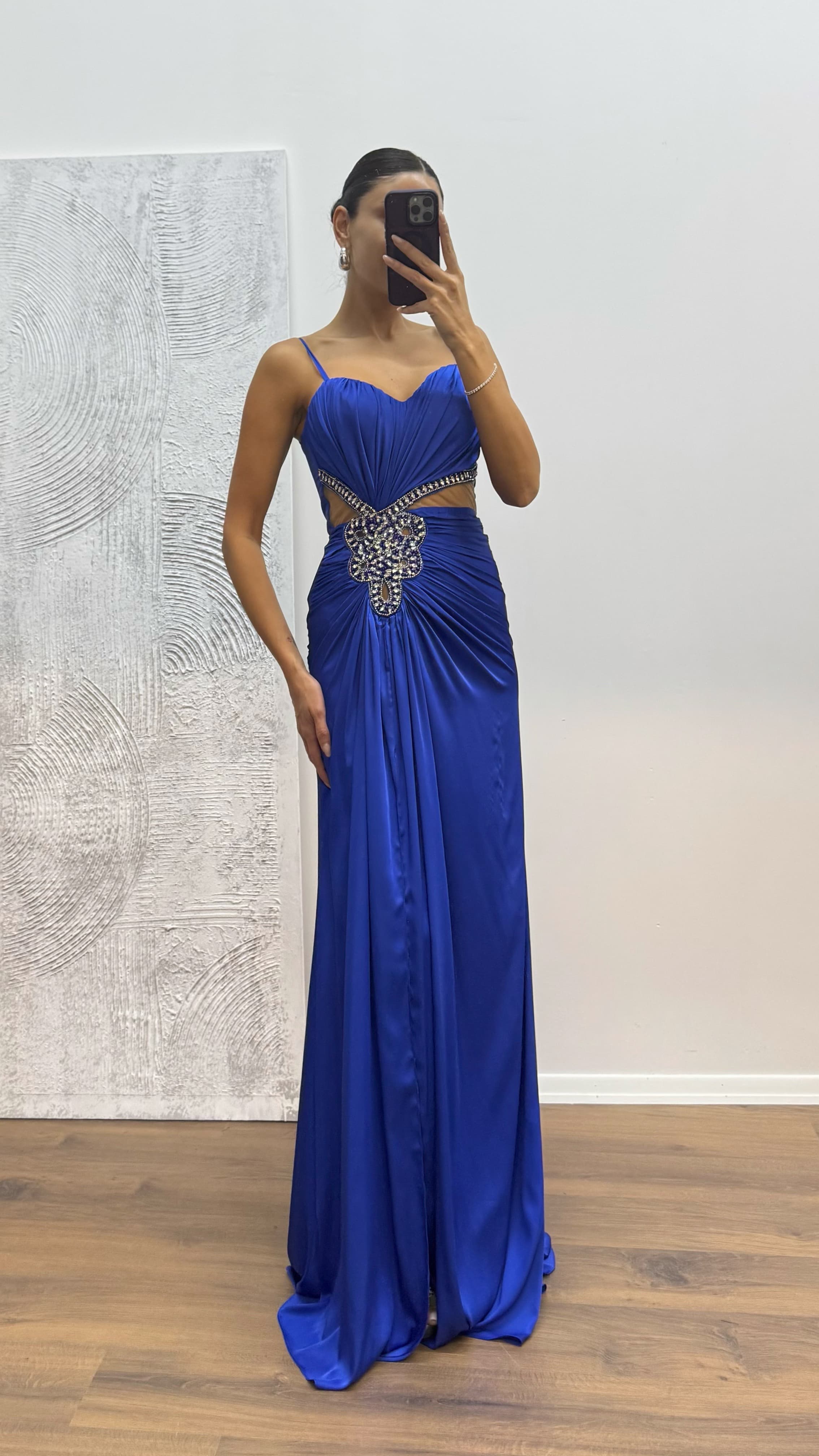 فستان سهرة من الساتان بتفاصيل تطريز من ساكس