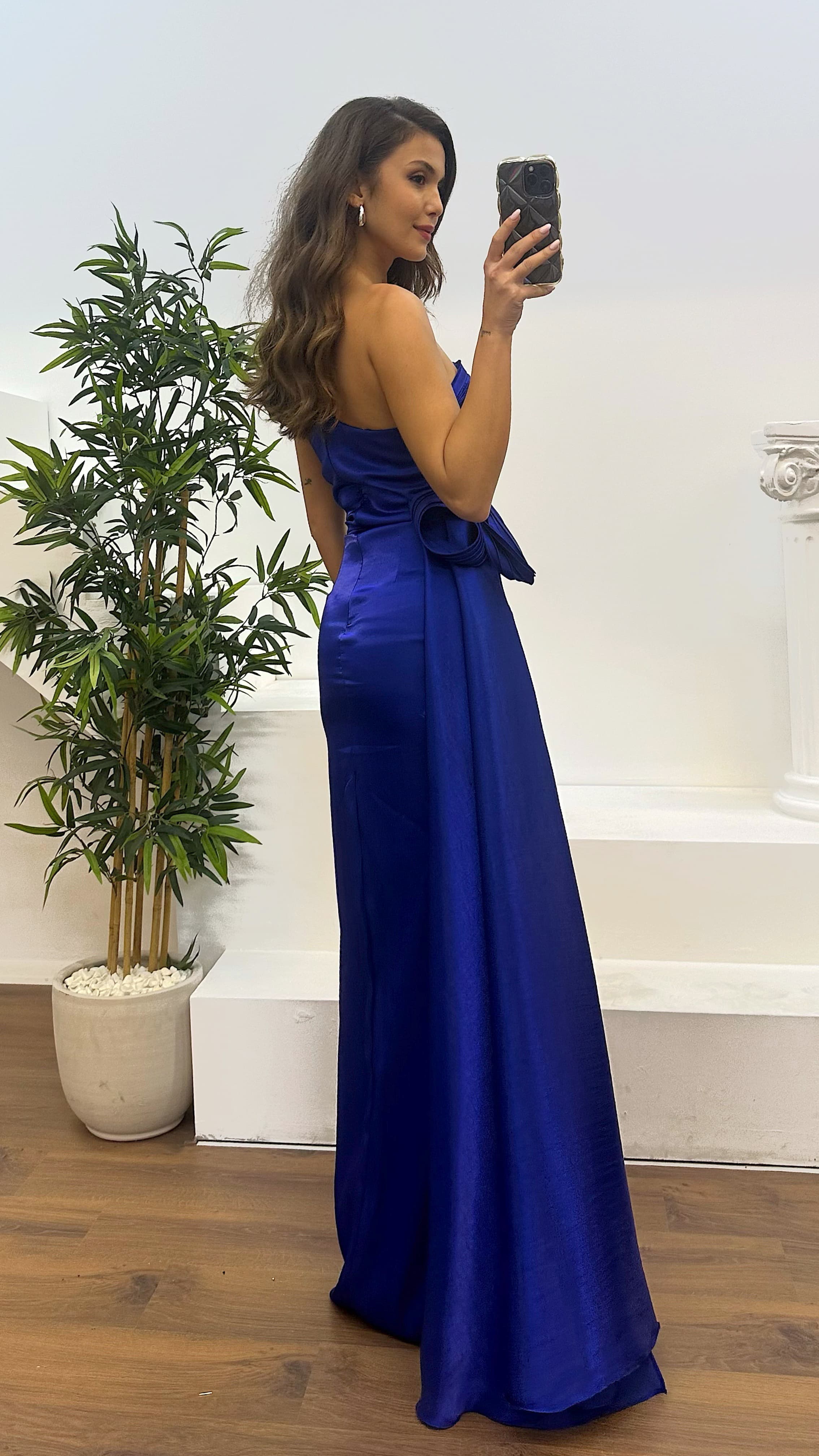 • Fuşya Straplez Drape Detay Abiye Elbise