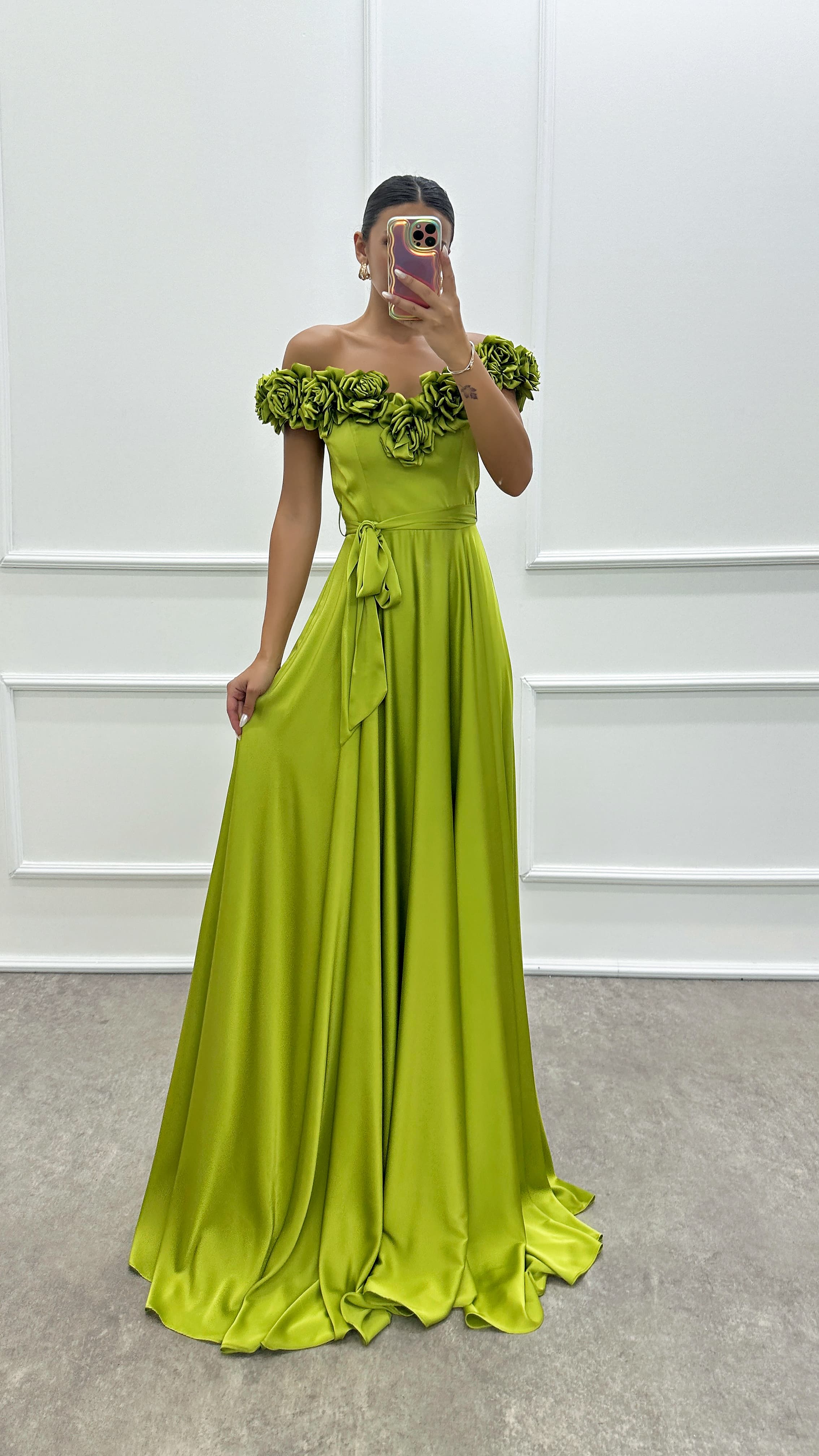 • Sarı Gül Detay Tasarım Abiye Elbise