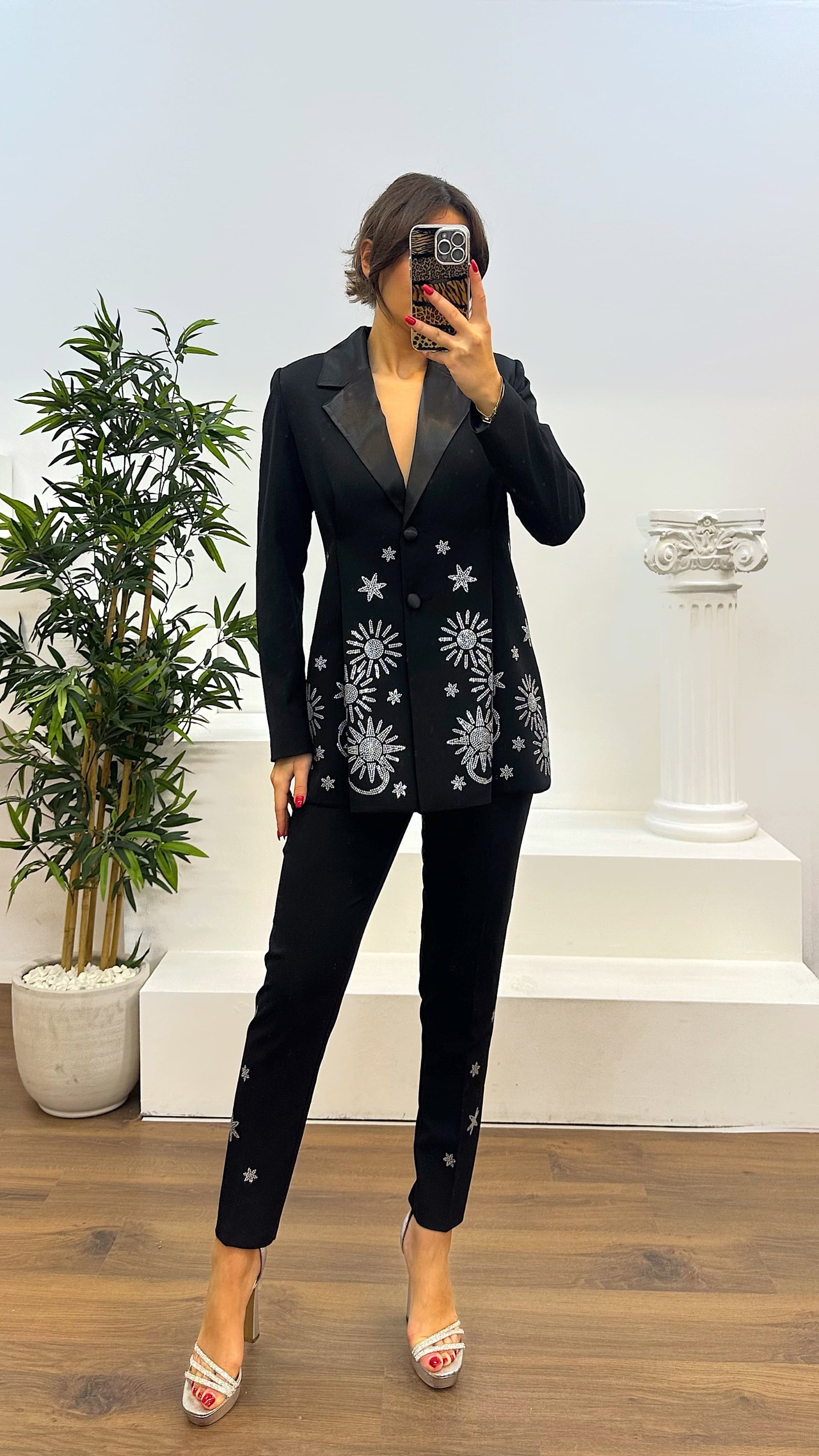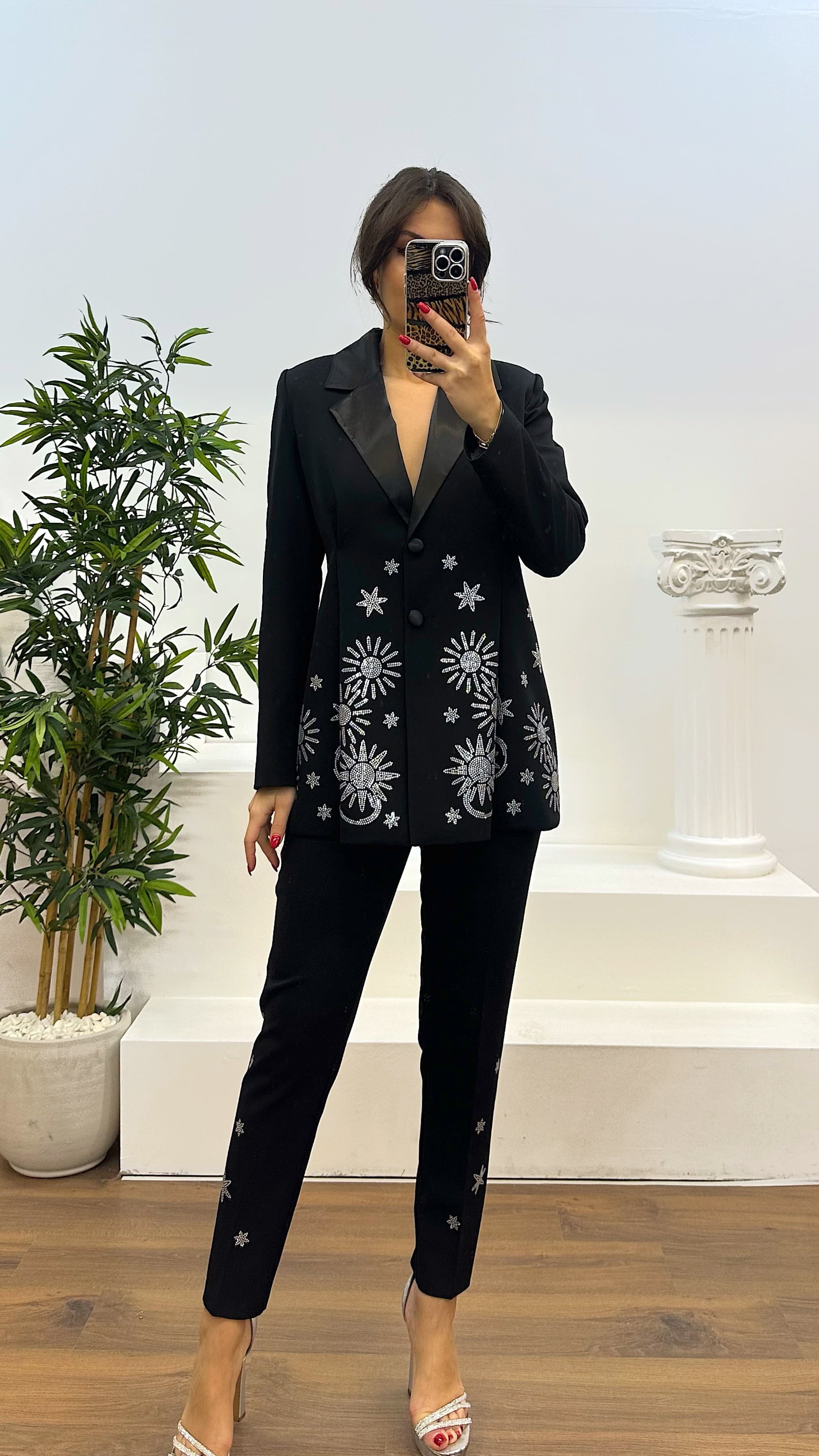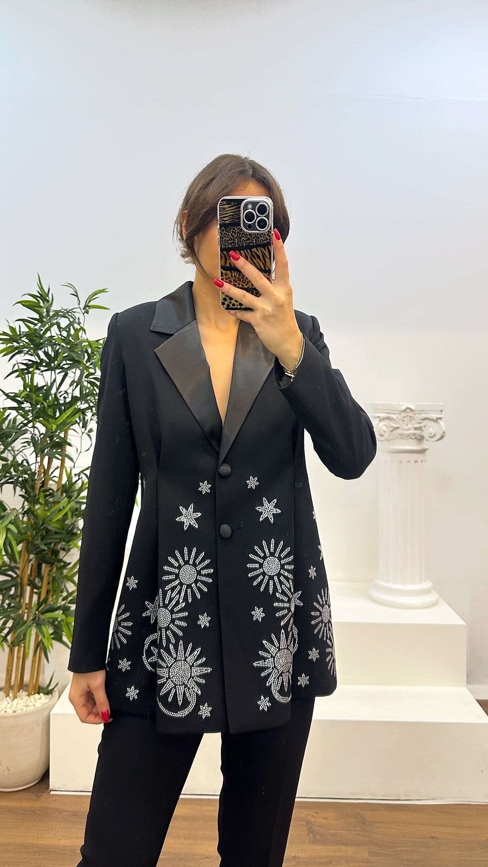 إطلالة كاملة بتصميم مزخرف المنتج يناسب المقاسات من 36 إلى 44، مزود بطبقة داخلية، مزخرف بتصميم أنيق، مع أزرار وسحّاب، وأكتاف مبطنة. طول المنتج: 100 سم نوع القماش: قماش أطلس 100% بوليستر - ساتان بوليستر، فيسكوز. طول ذراع المنتج 60 سم.