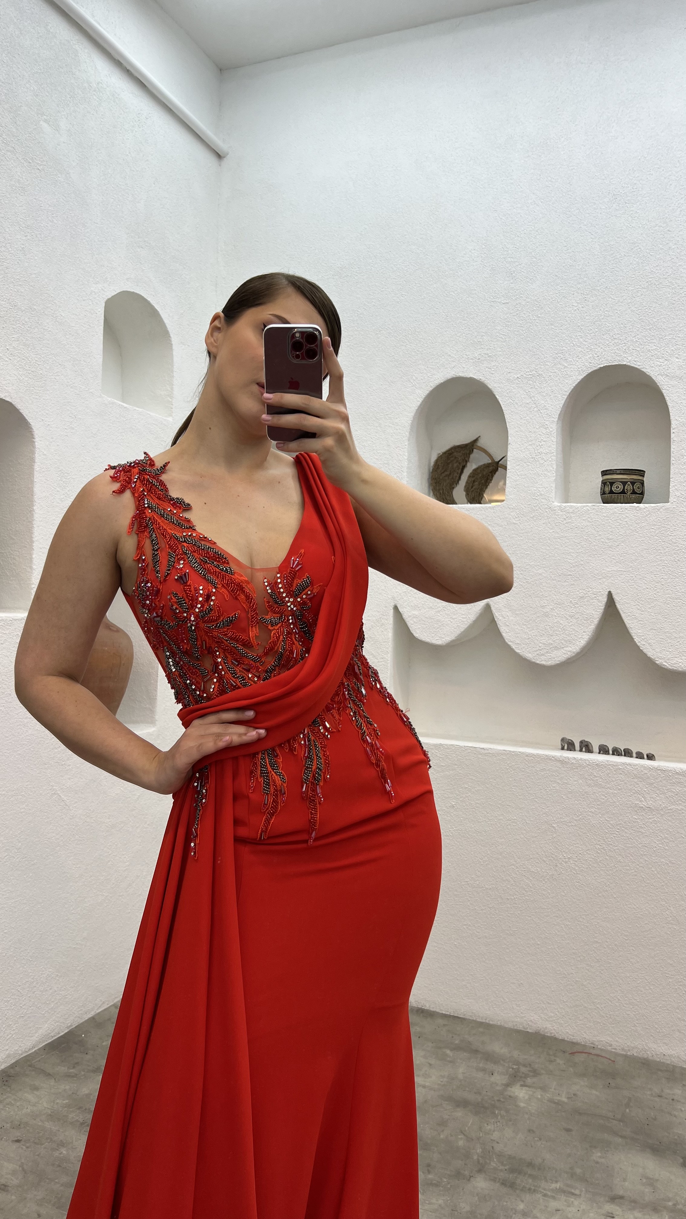 فستان سهرة مقاس كبير مطرز باللون البرتقالي