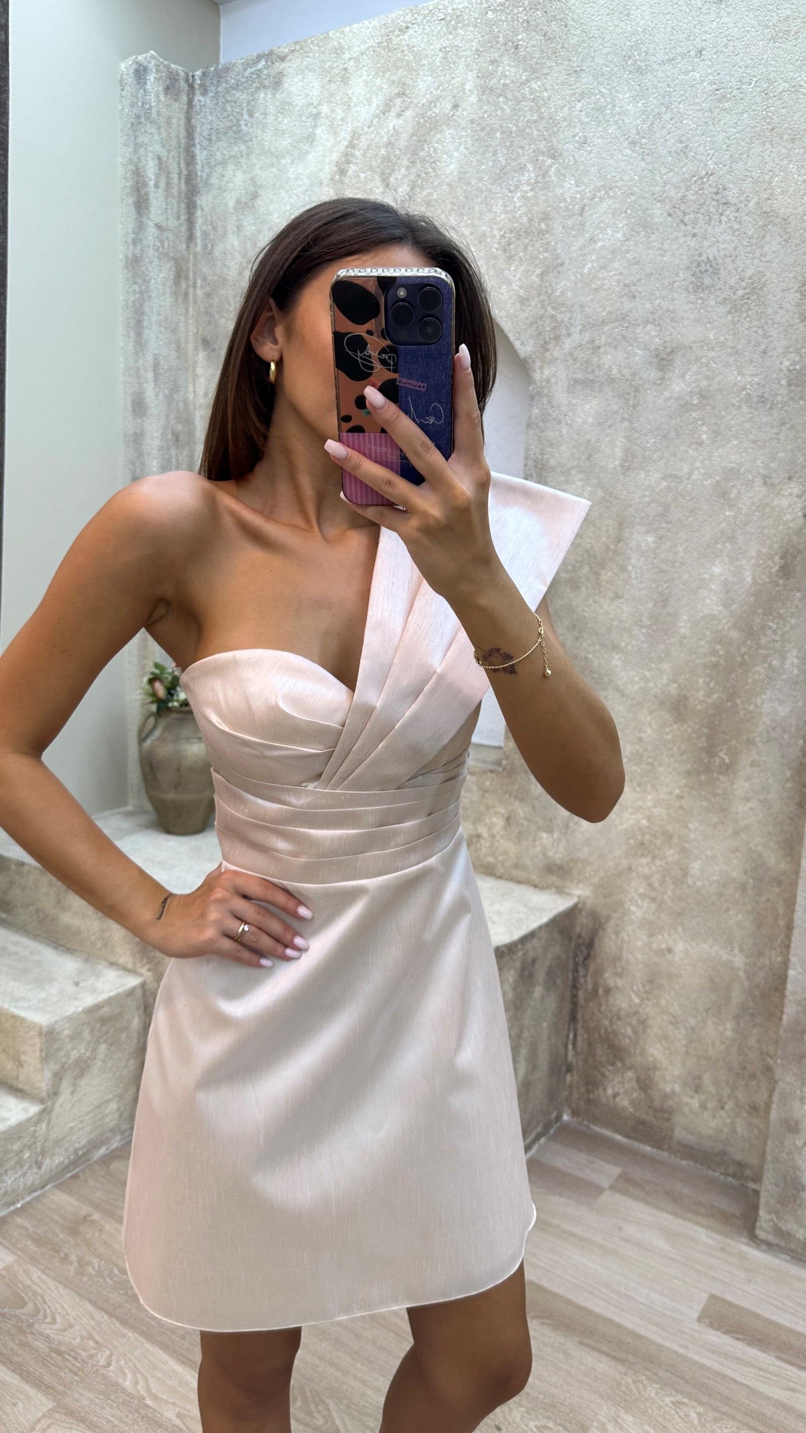 إكرو فستان ميدي بكتف واحد وثنيات