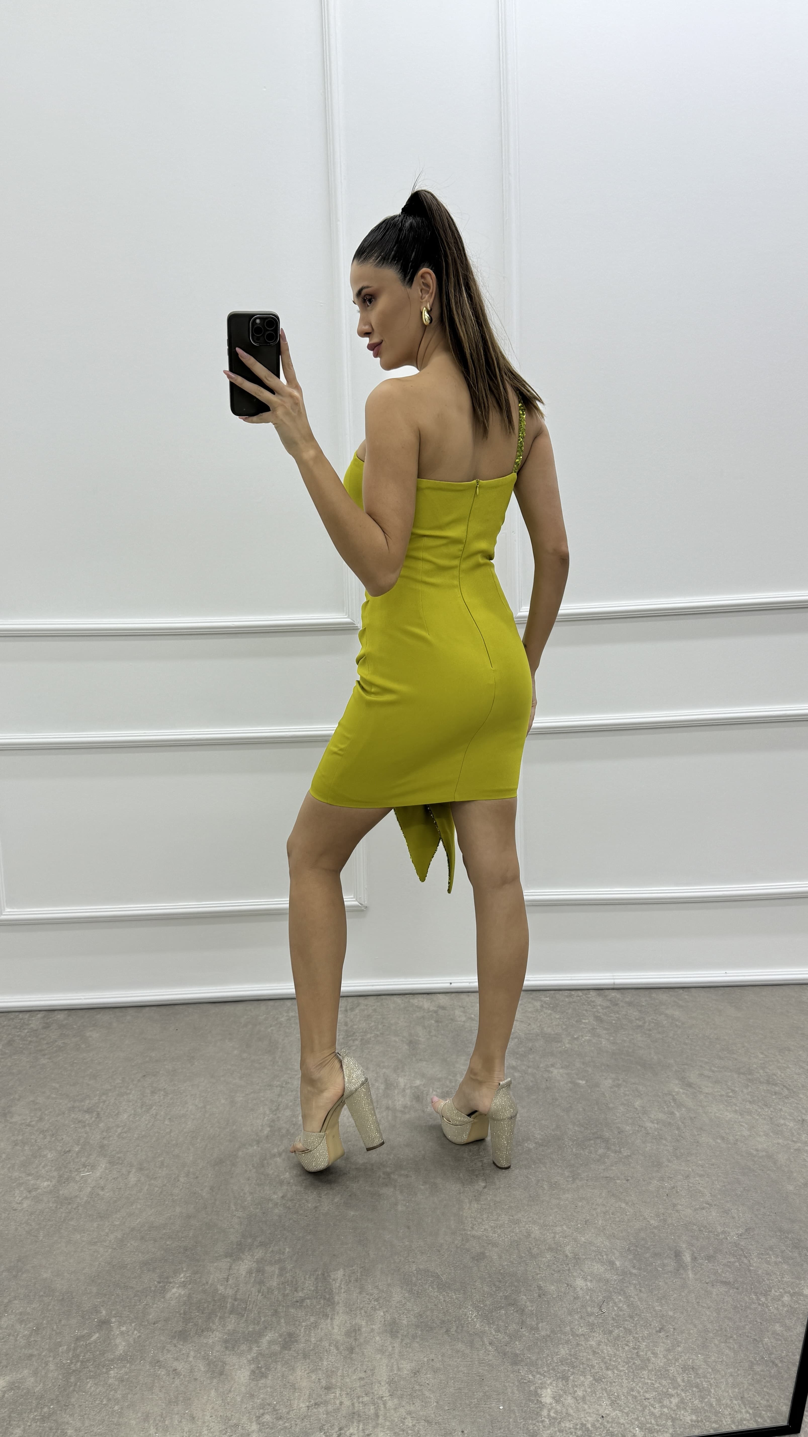 Sarı Tek Omuz Volanlı Payet Detay Tasarım Elbise