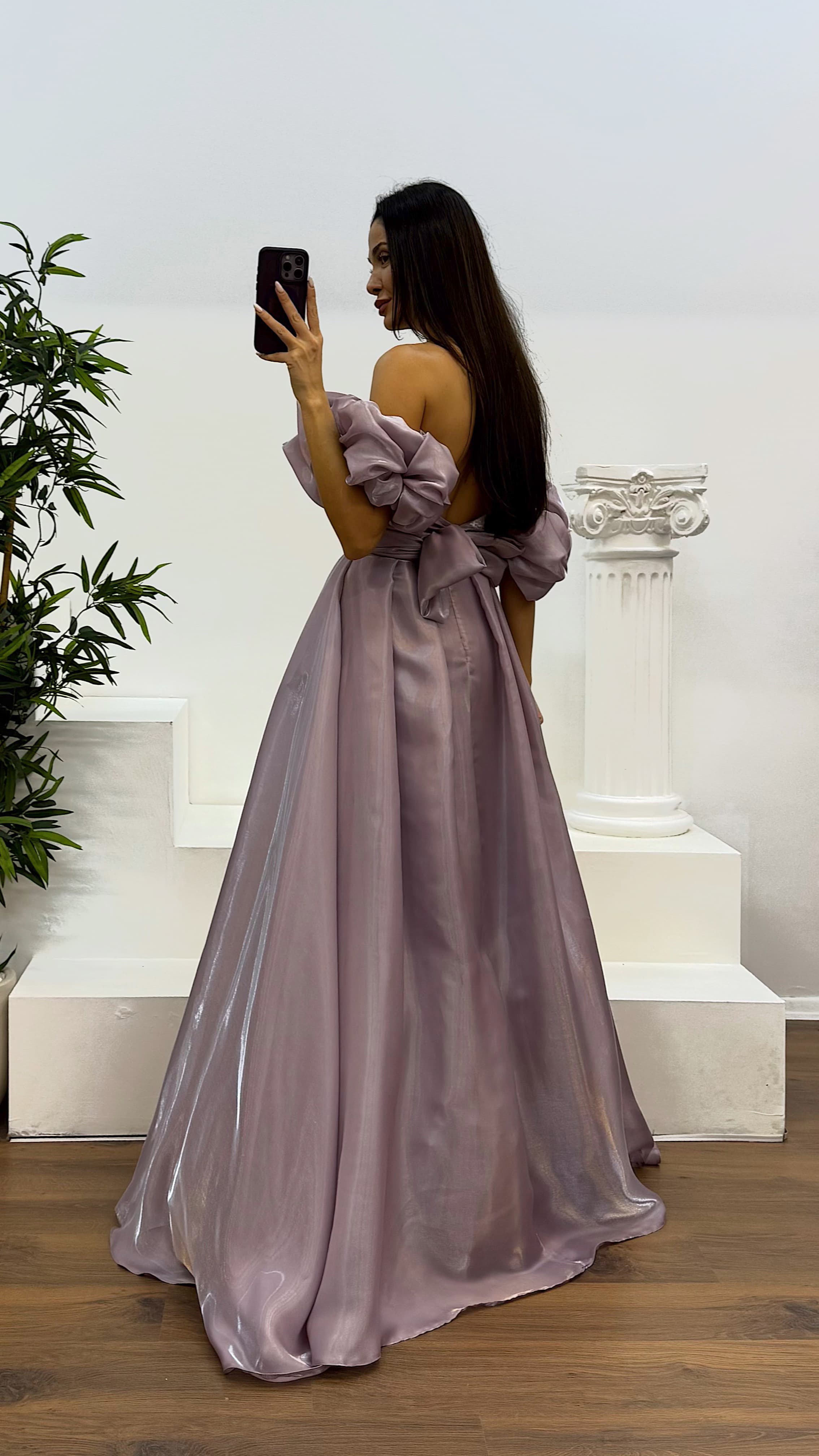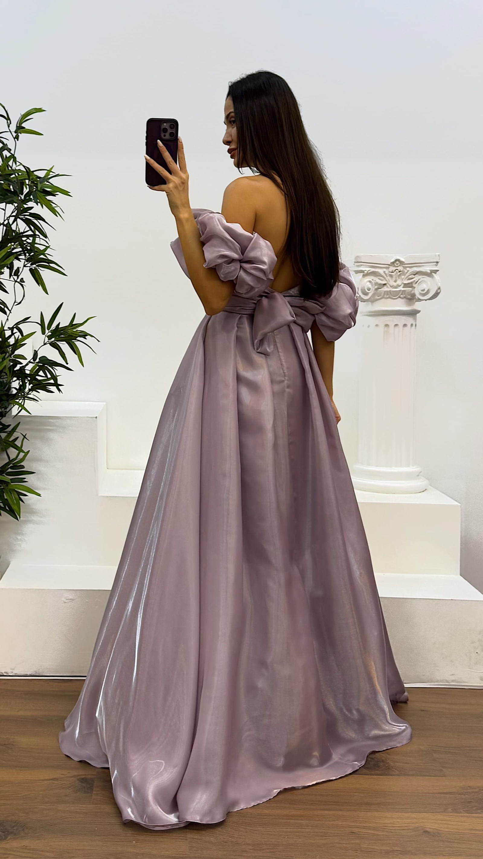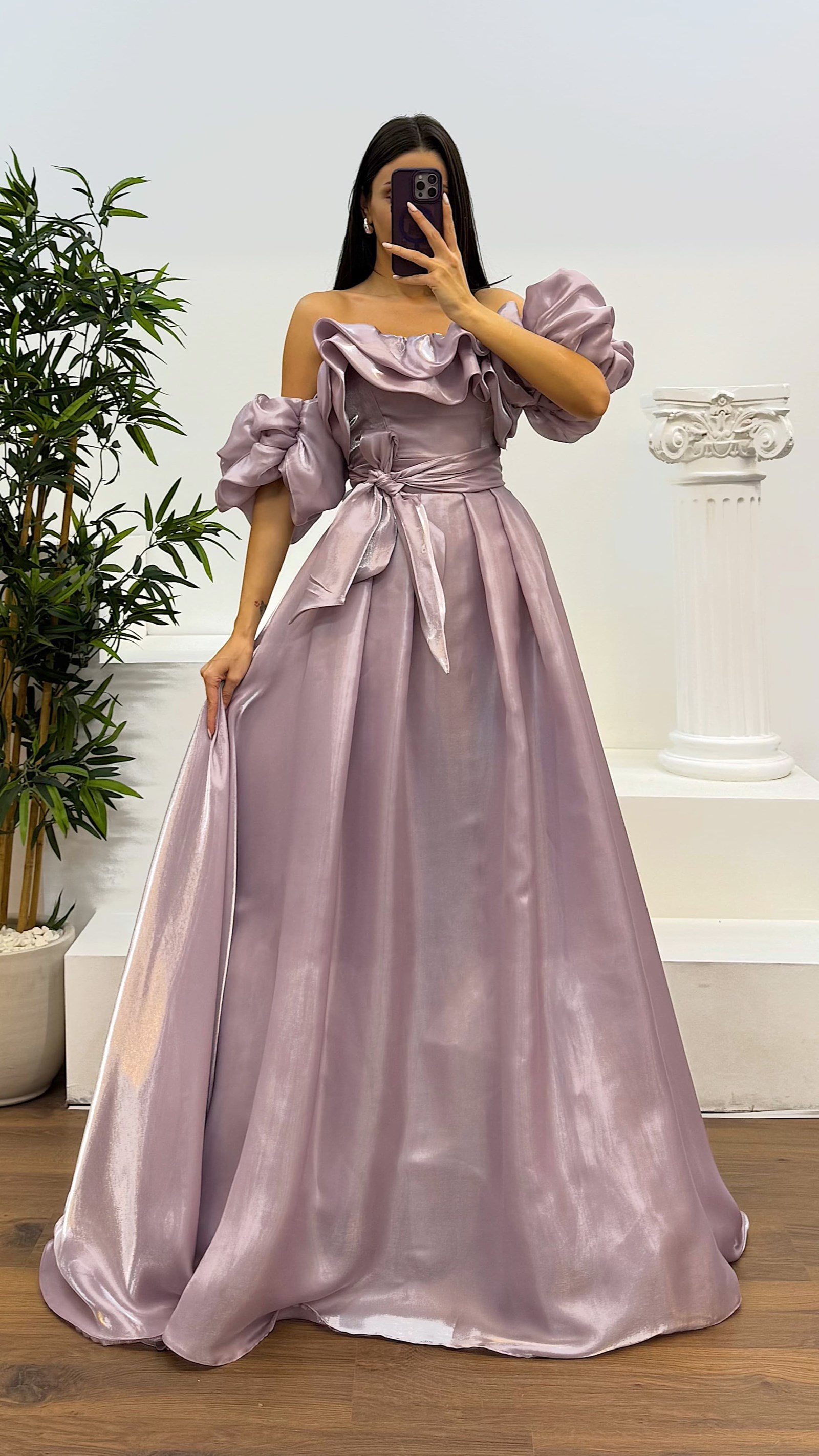 • Lila Balon Kol Valonlu Kabarık Abiye Elbise