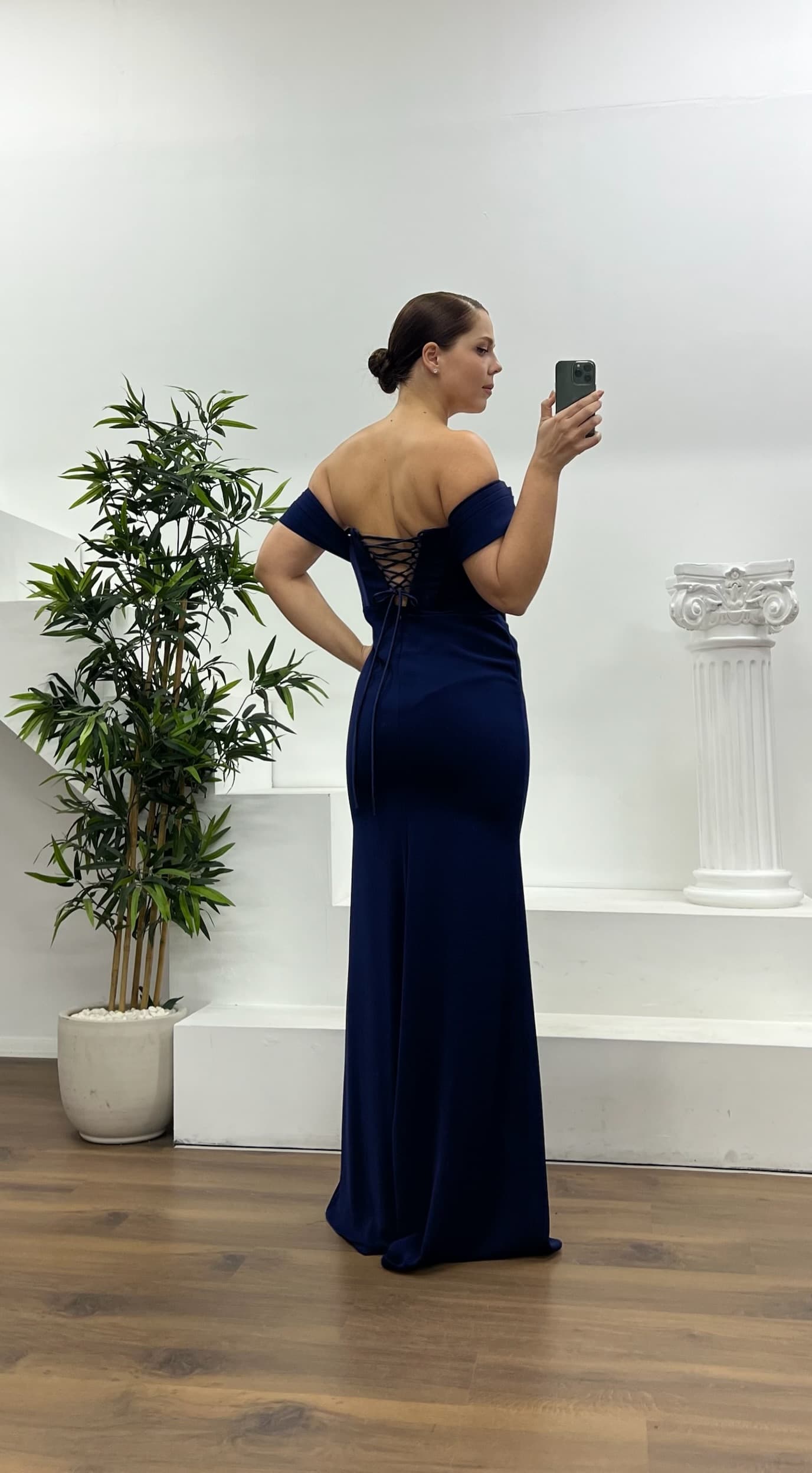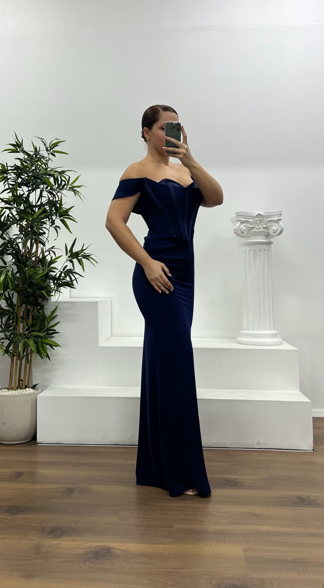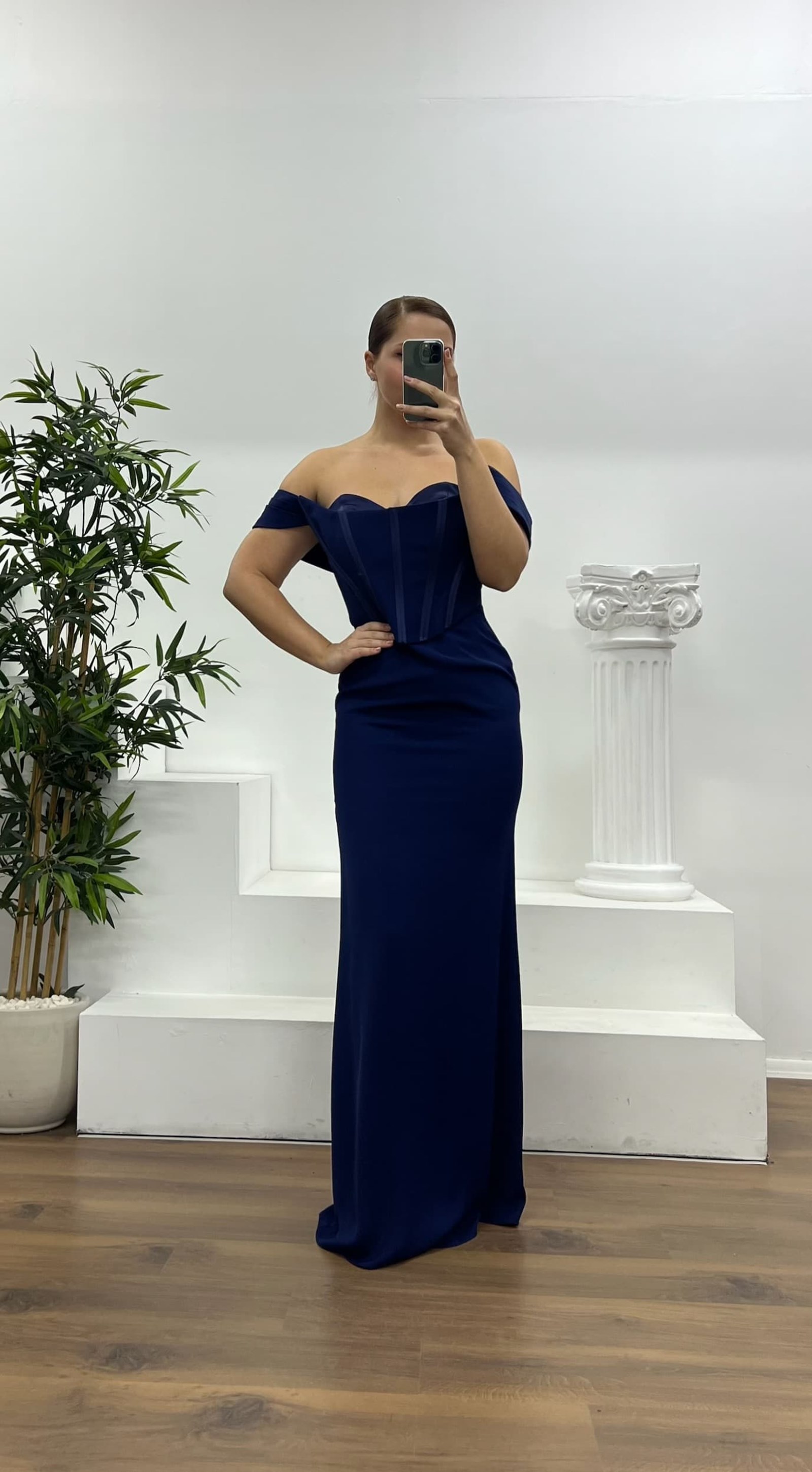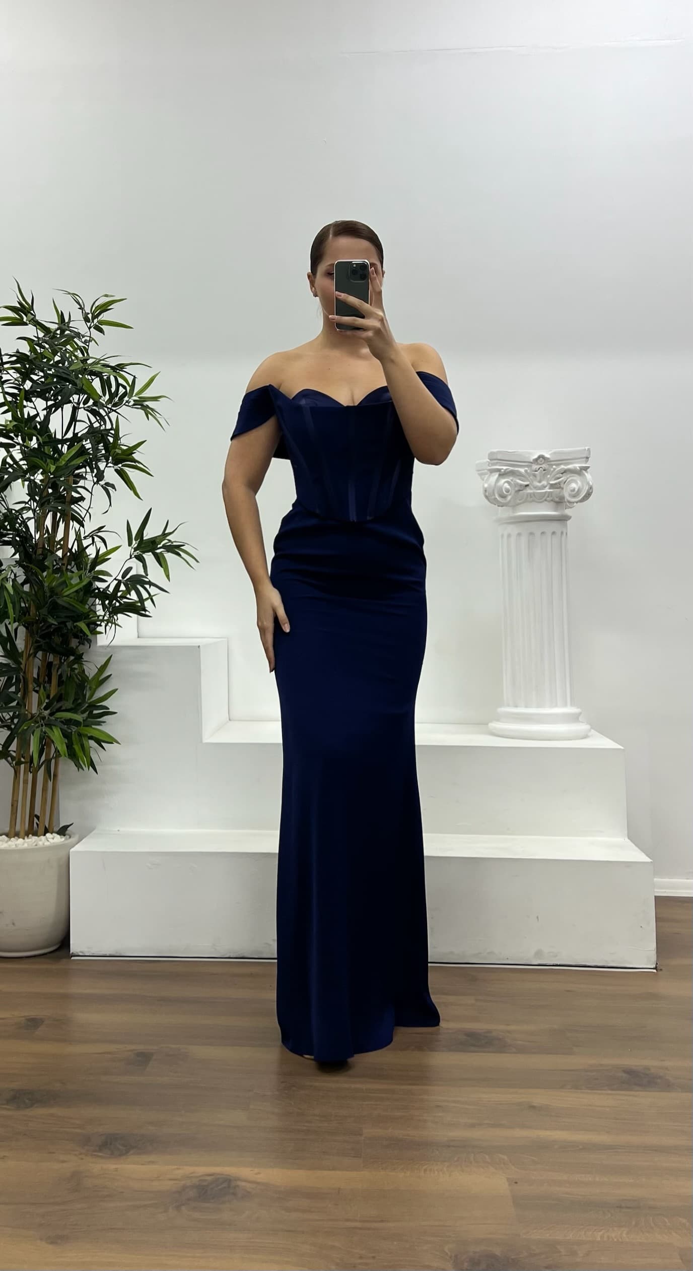 • Lacivert Straplez Büyük Beden Abiye Elbise