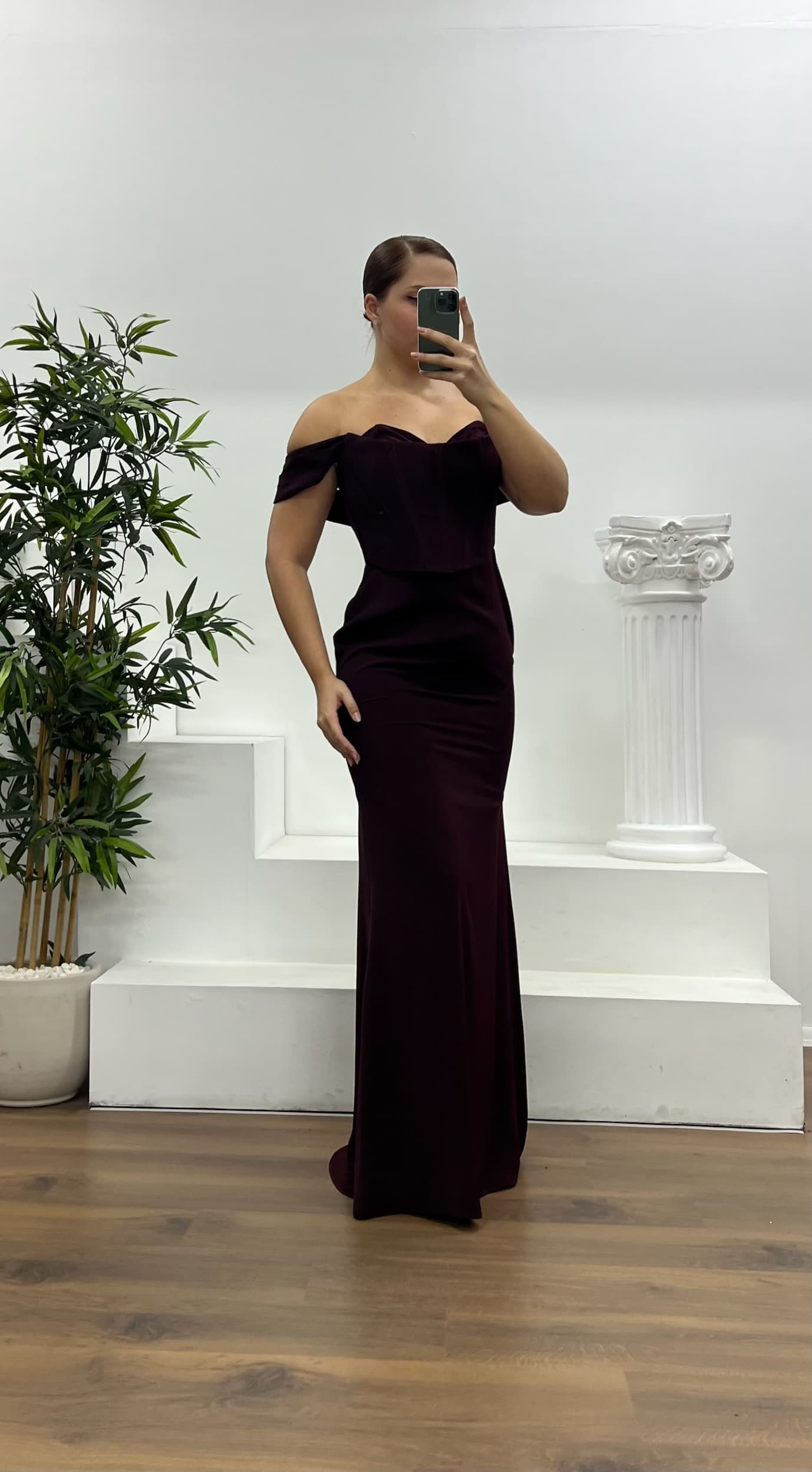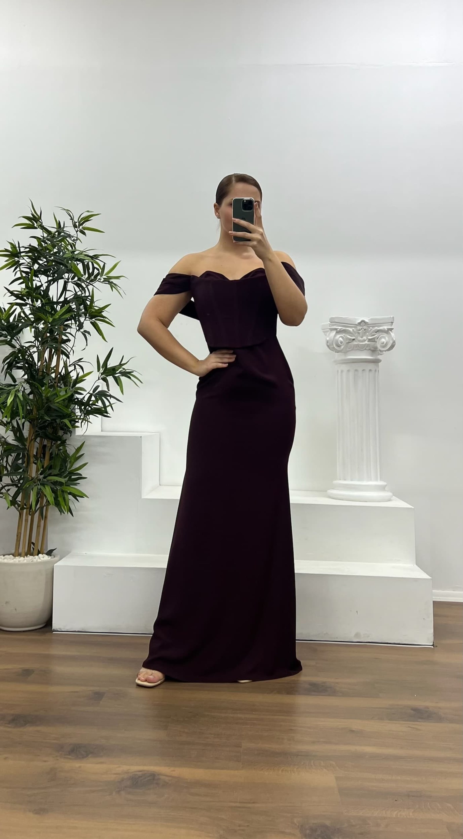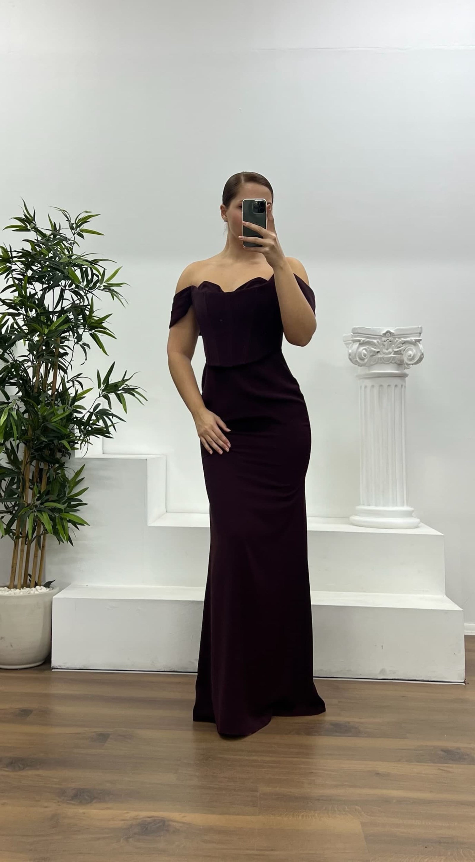 • Mürdüm Straplez Büyük Beden Abiye Elbise
