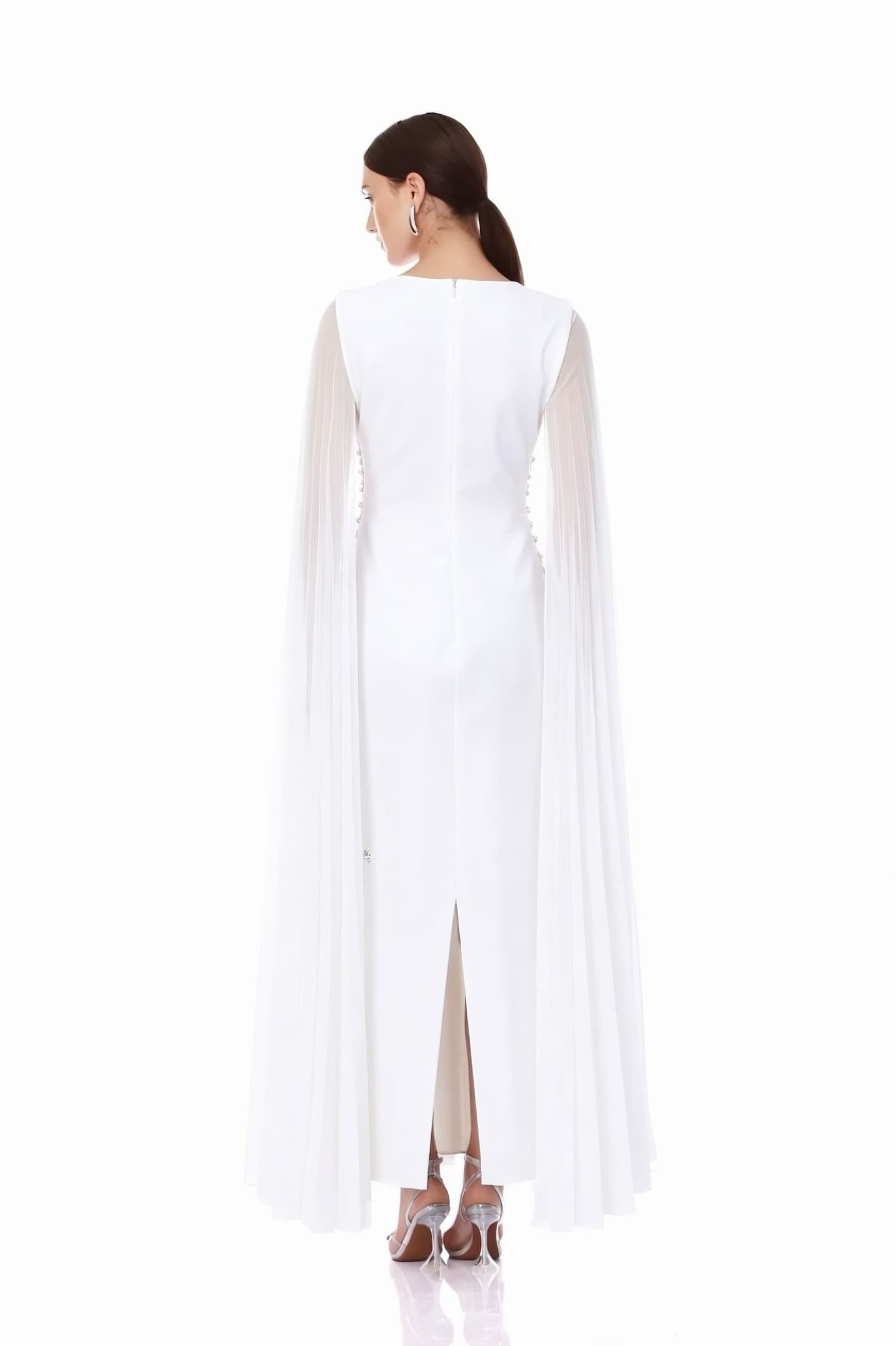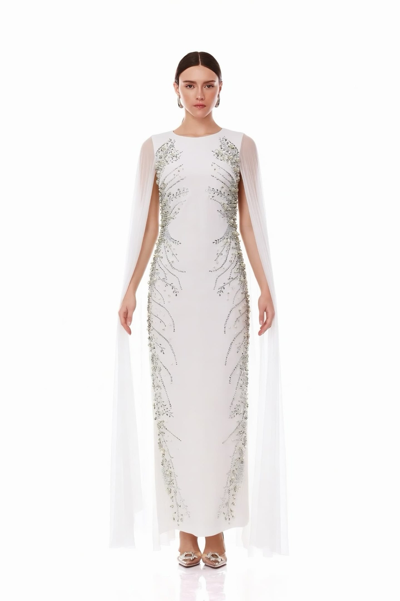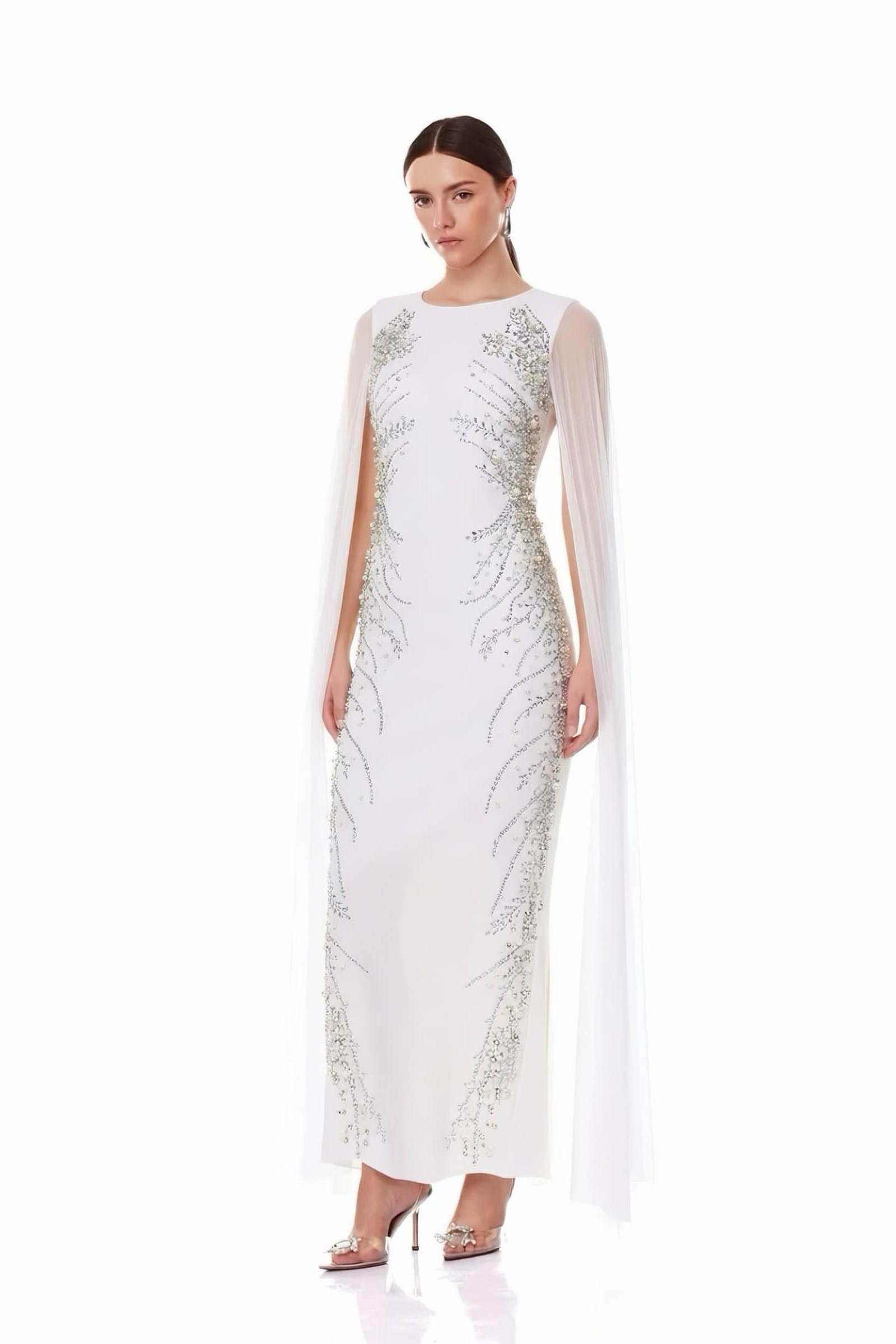 • Kemik Pelerin Detaylı Nakışlı Abiye Elbise