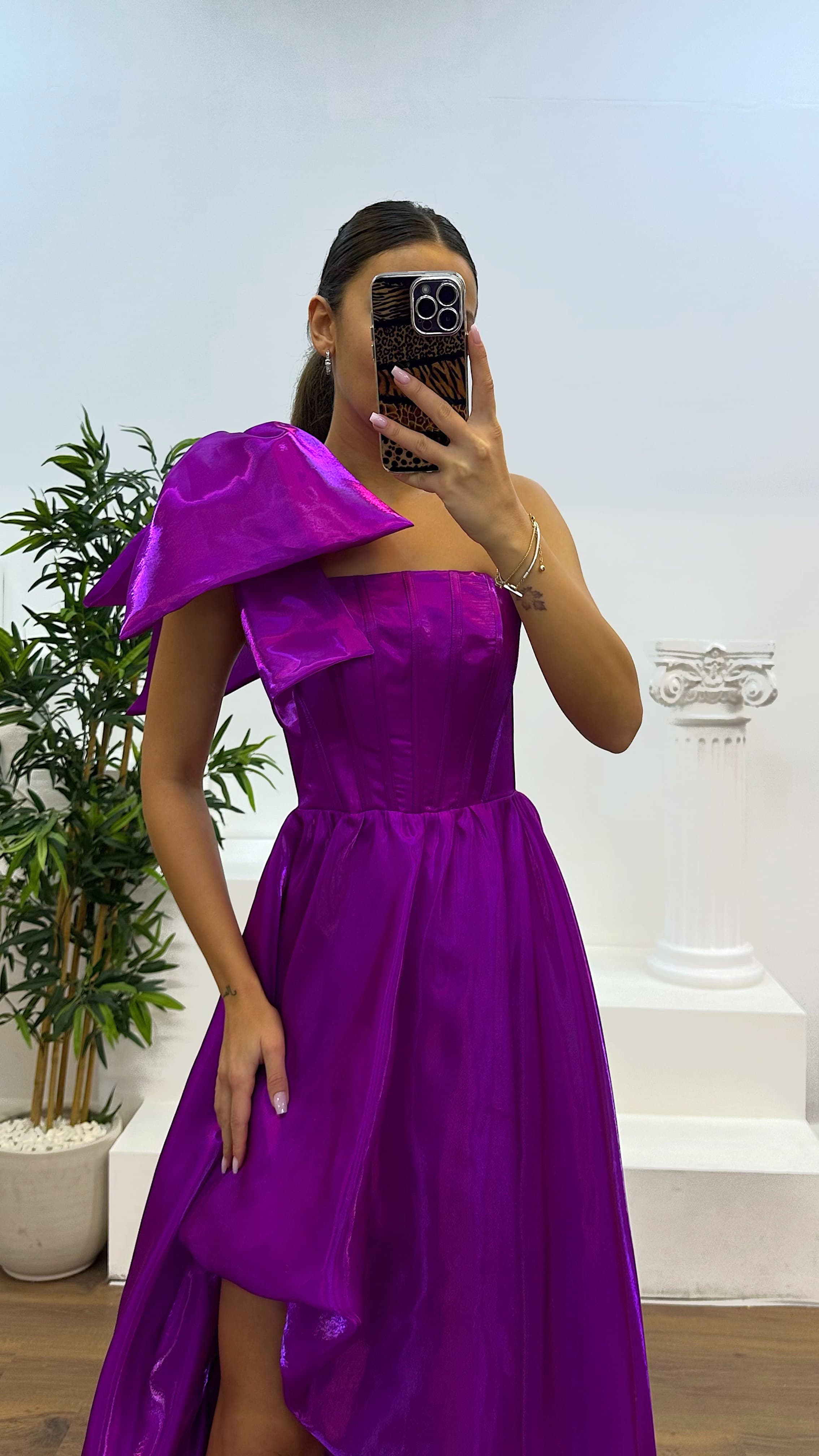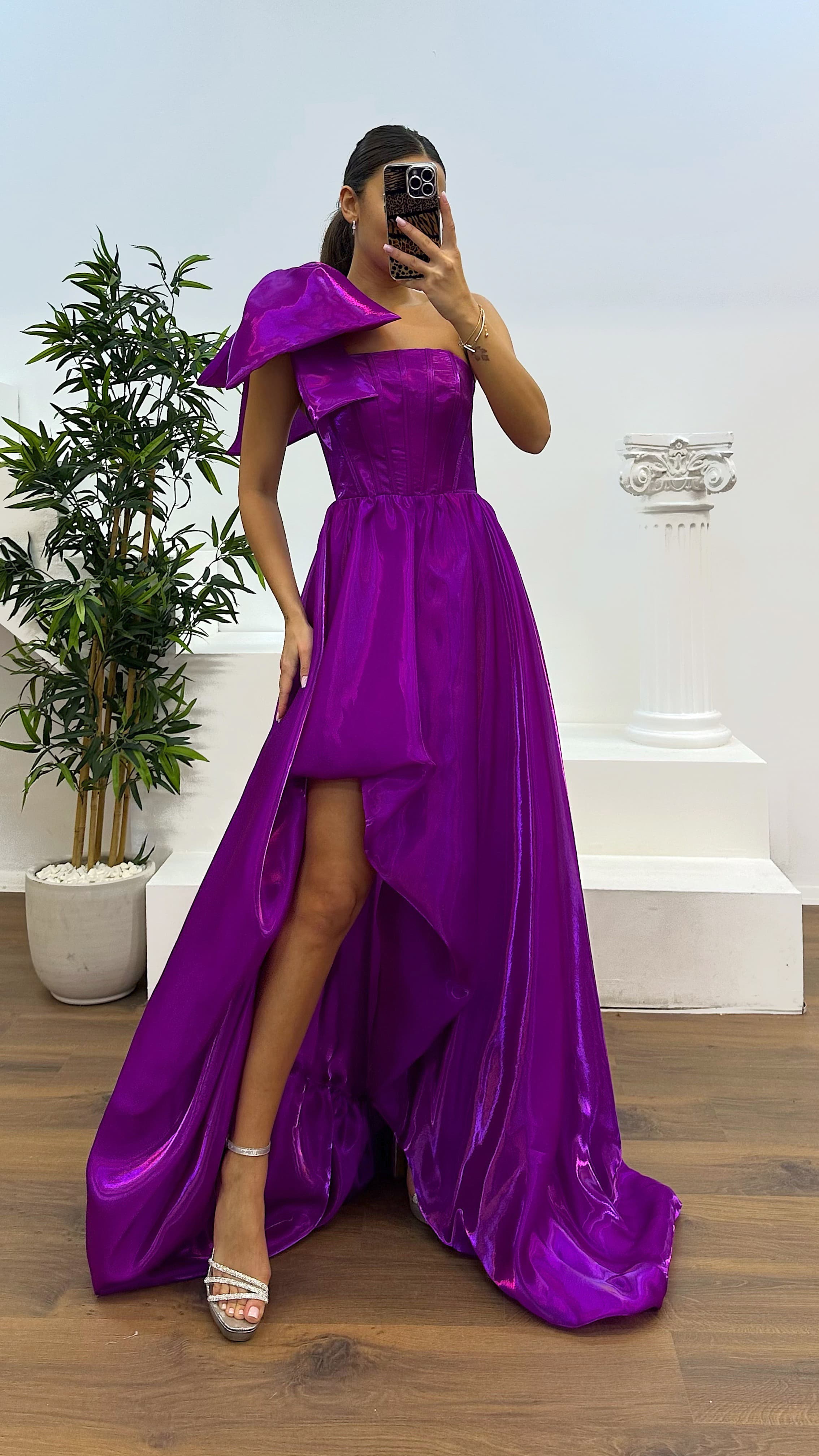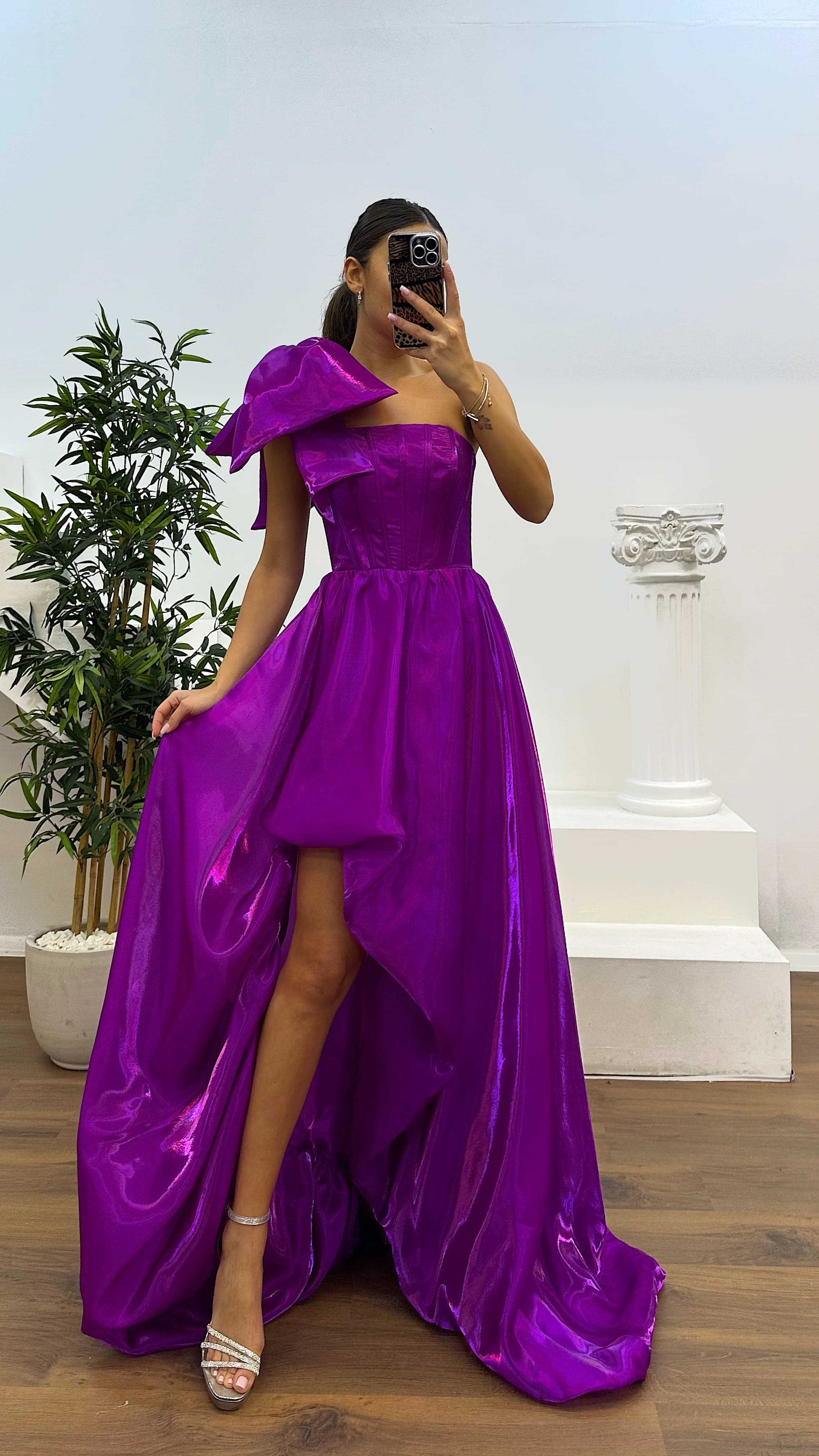 • Fuşya Tek Omuz Abiye Elbise