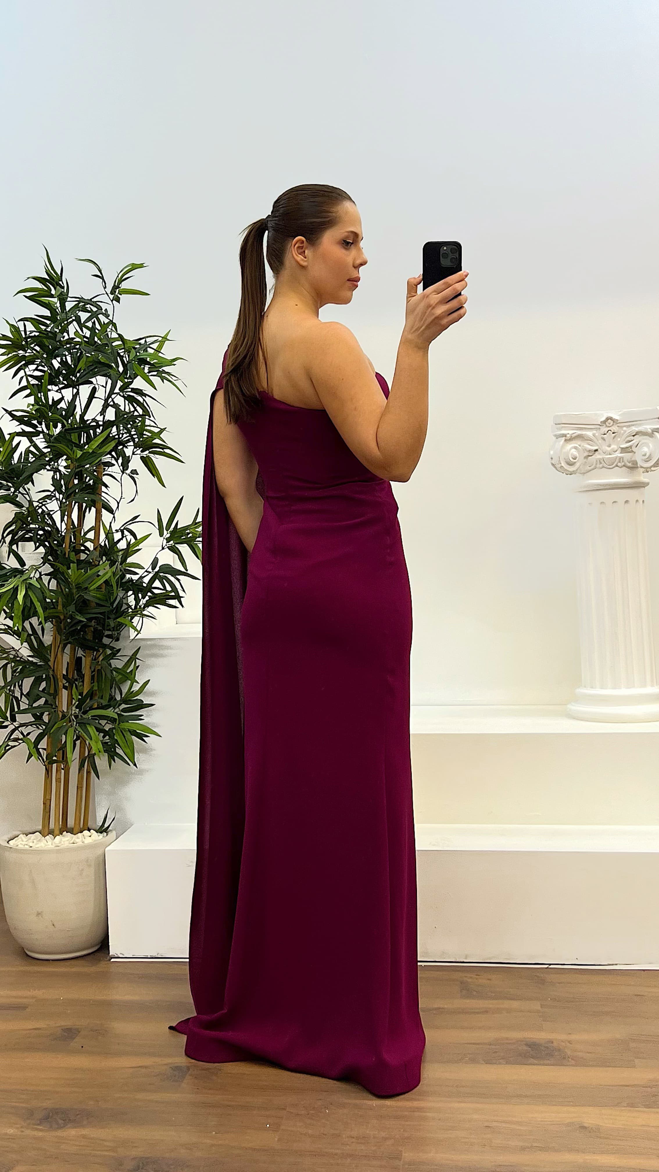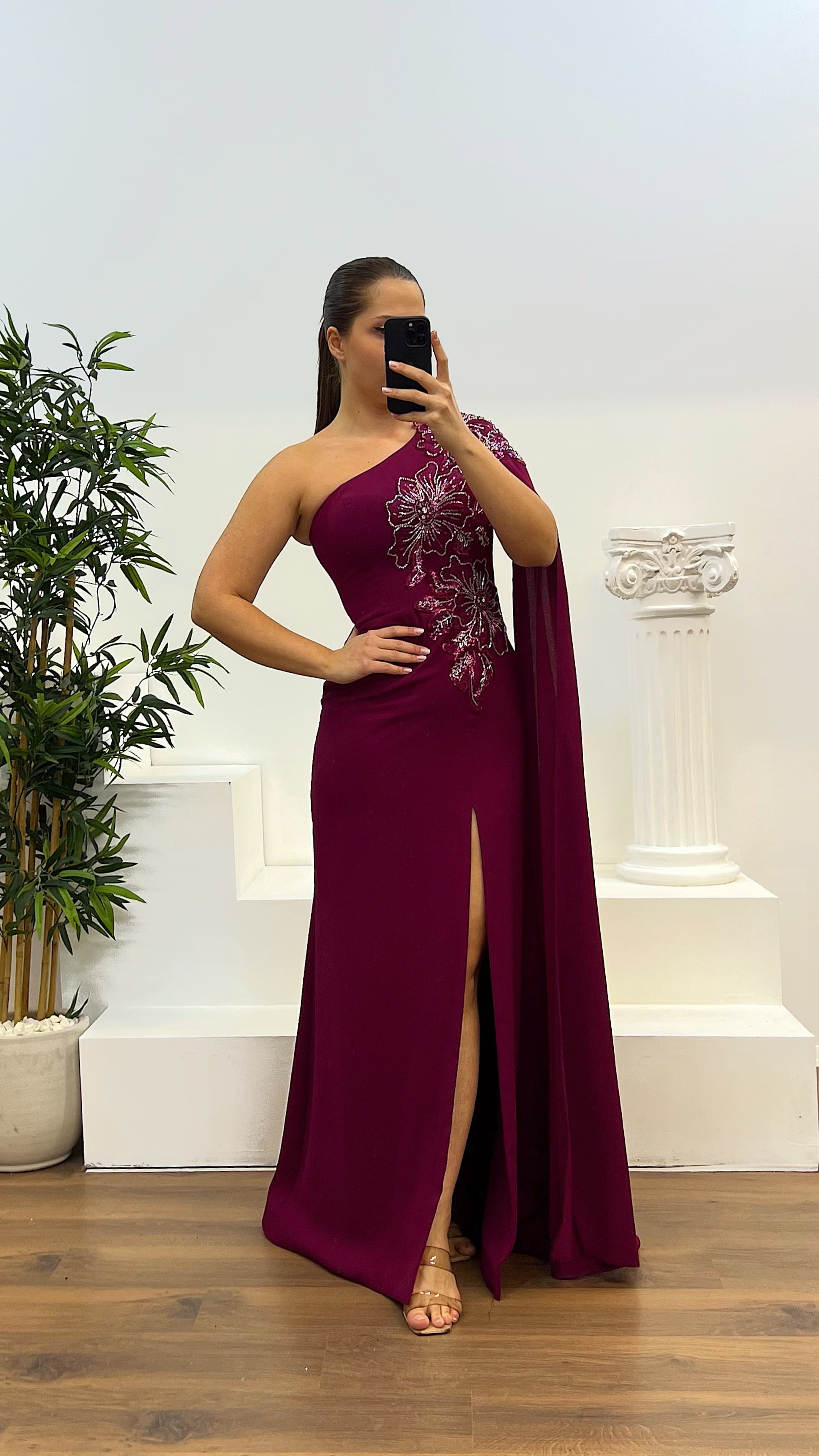 • Mürdüm Tek Kol Büyük Beden  Abiye Elbise