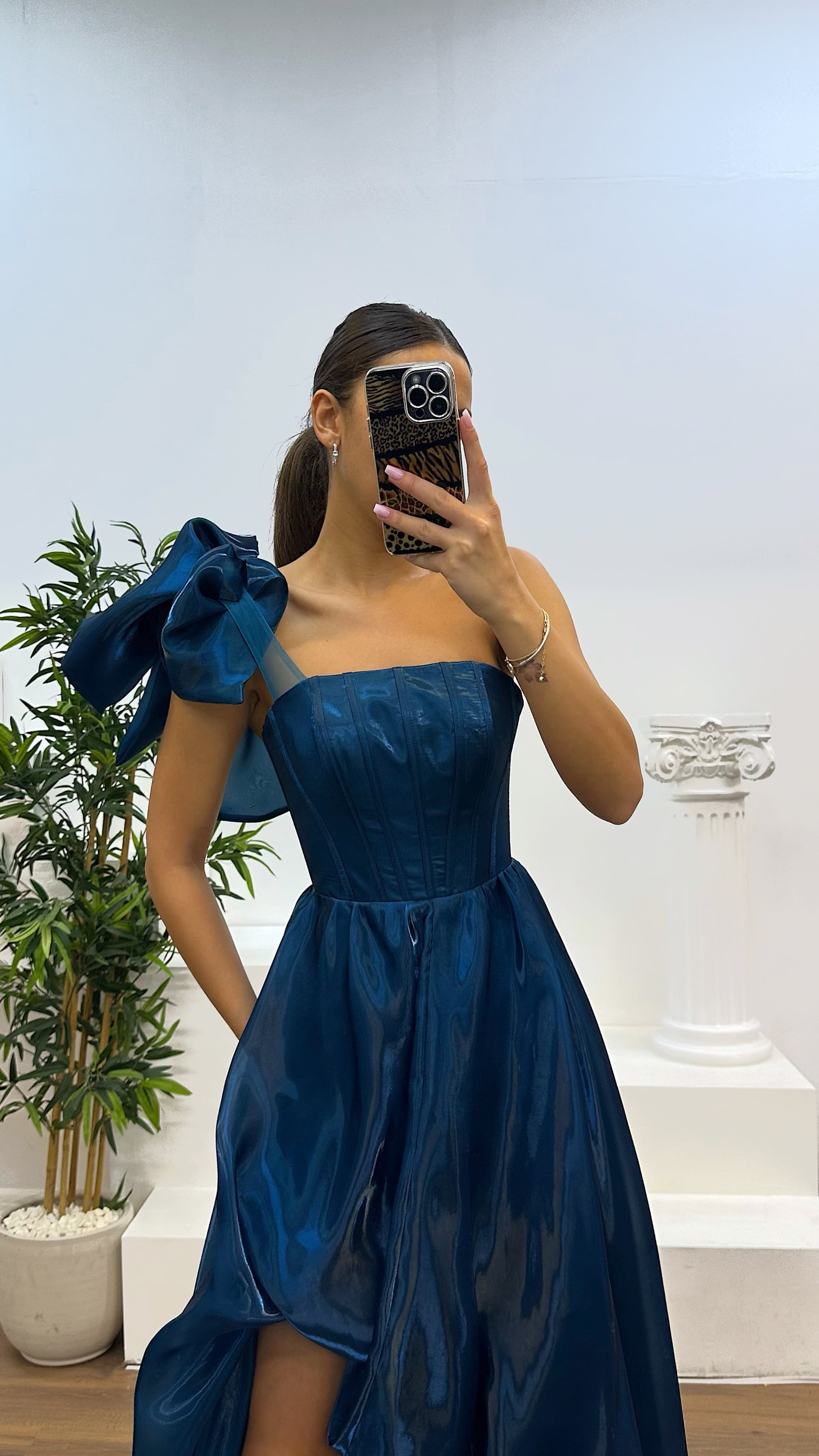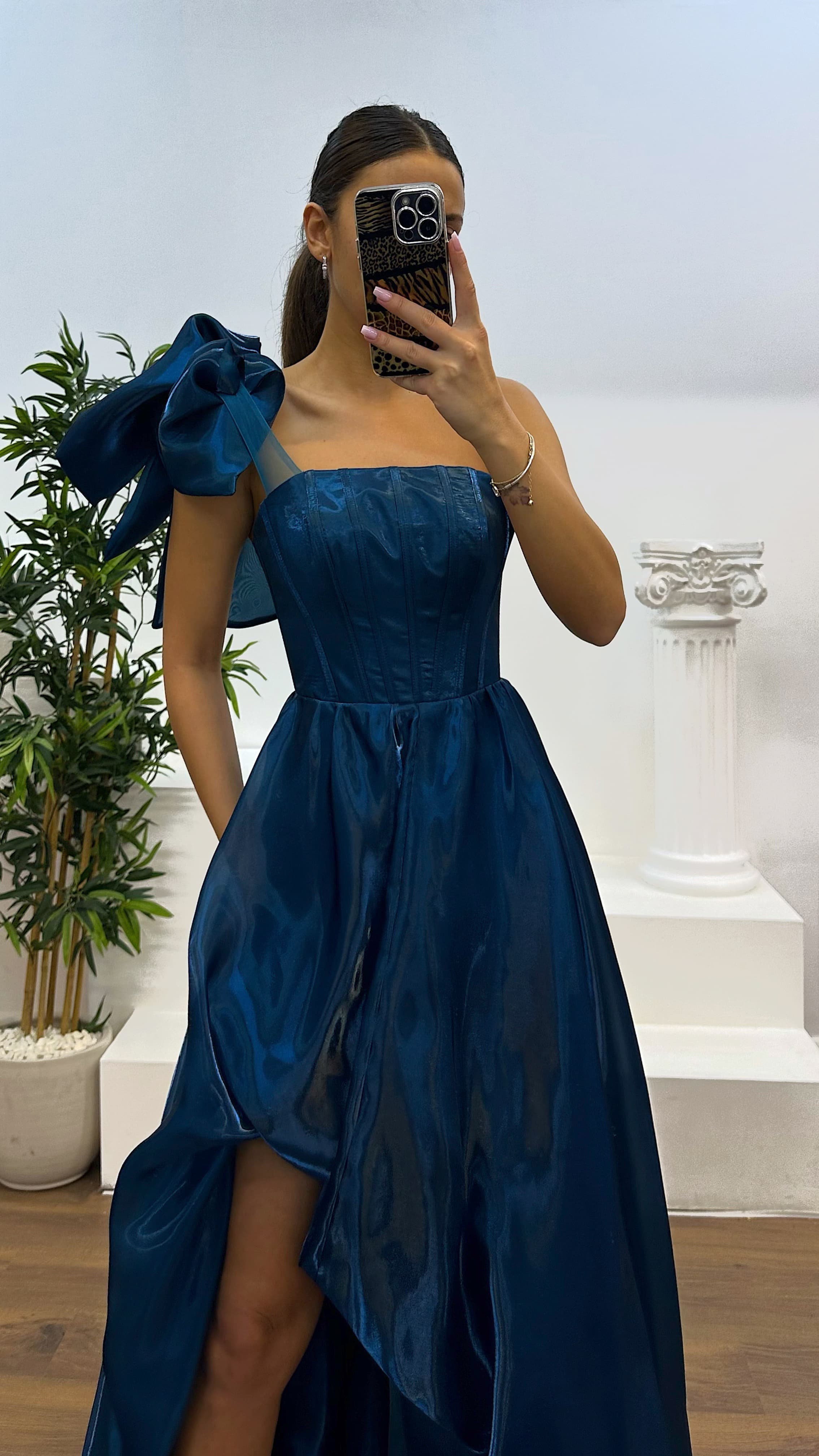 • Petrol Tek Omuz Abiye Elbise