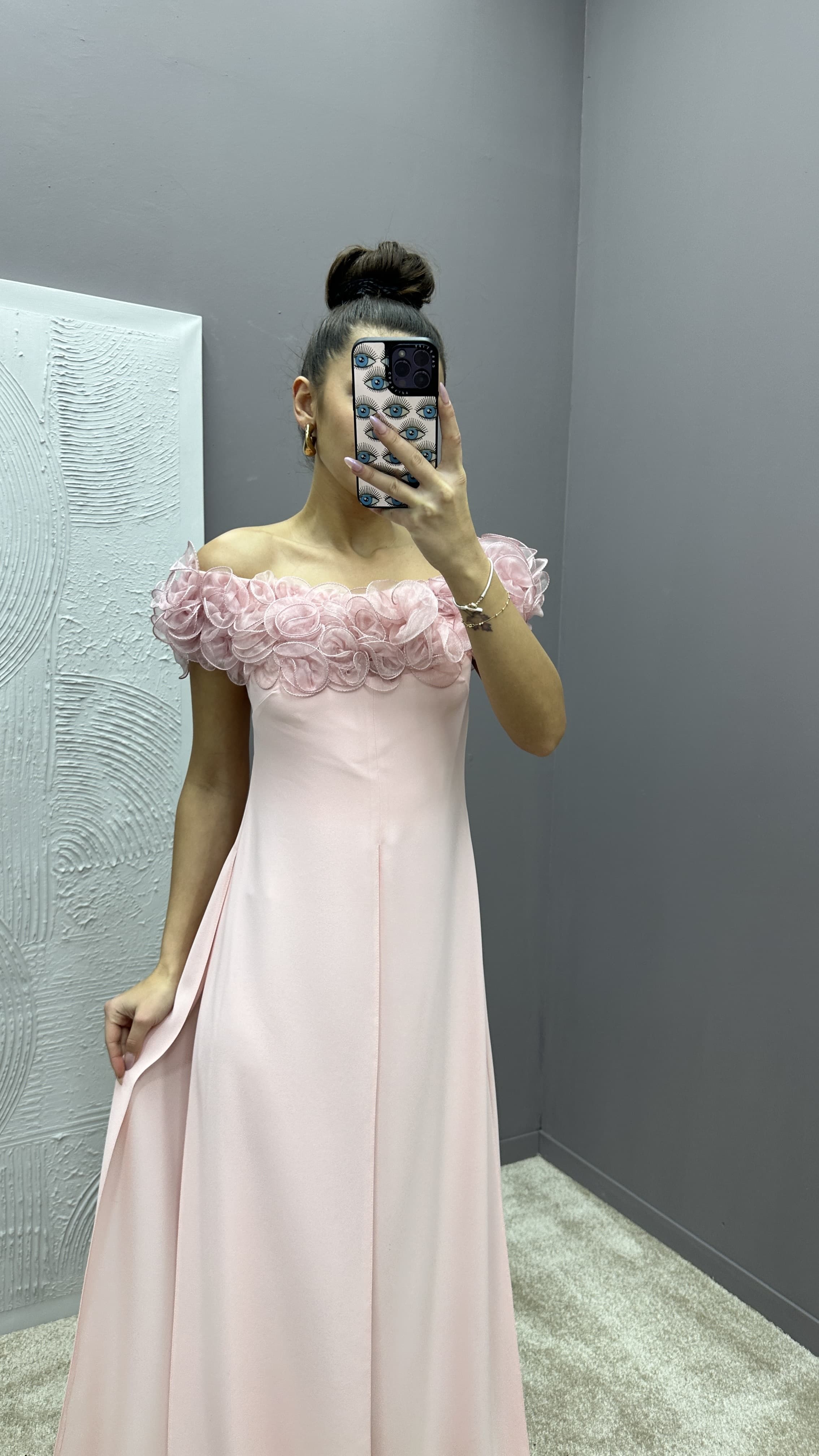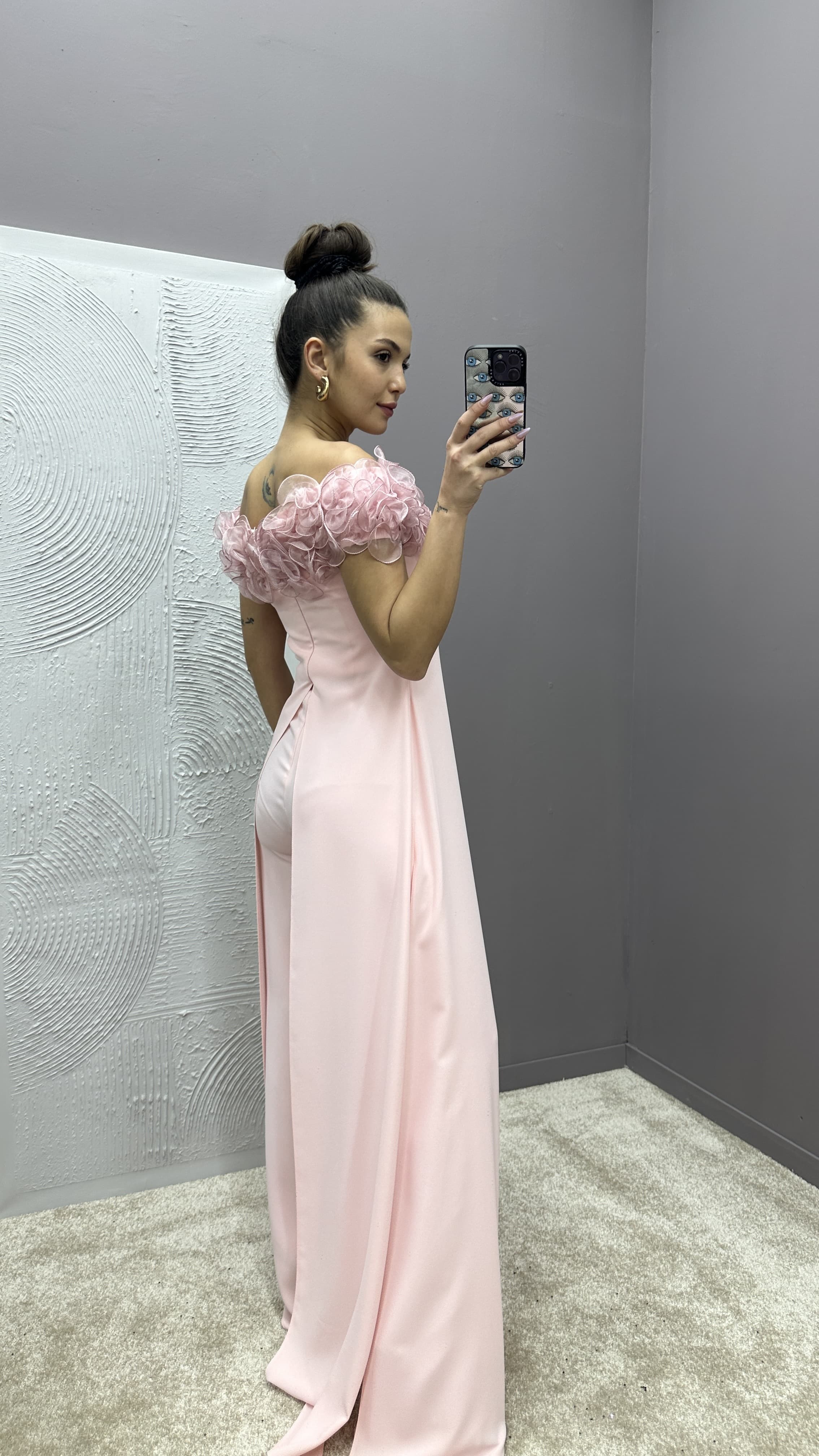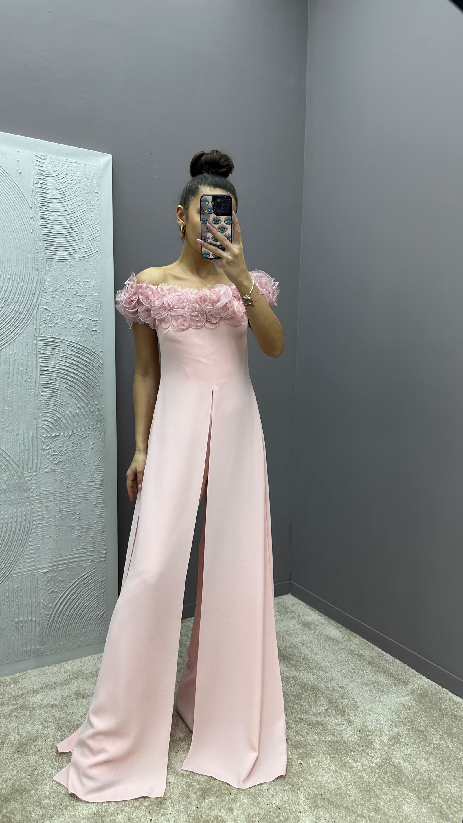 Trägerloser, puderfarbener Overall mit Rüschendetail