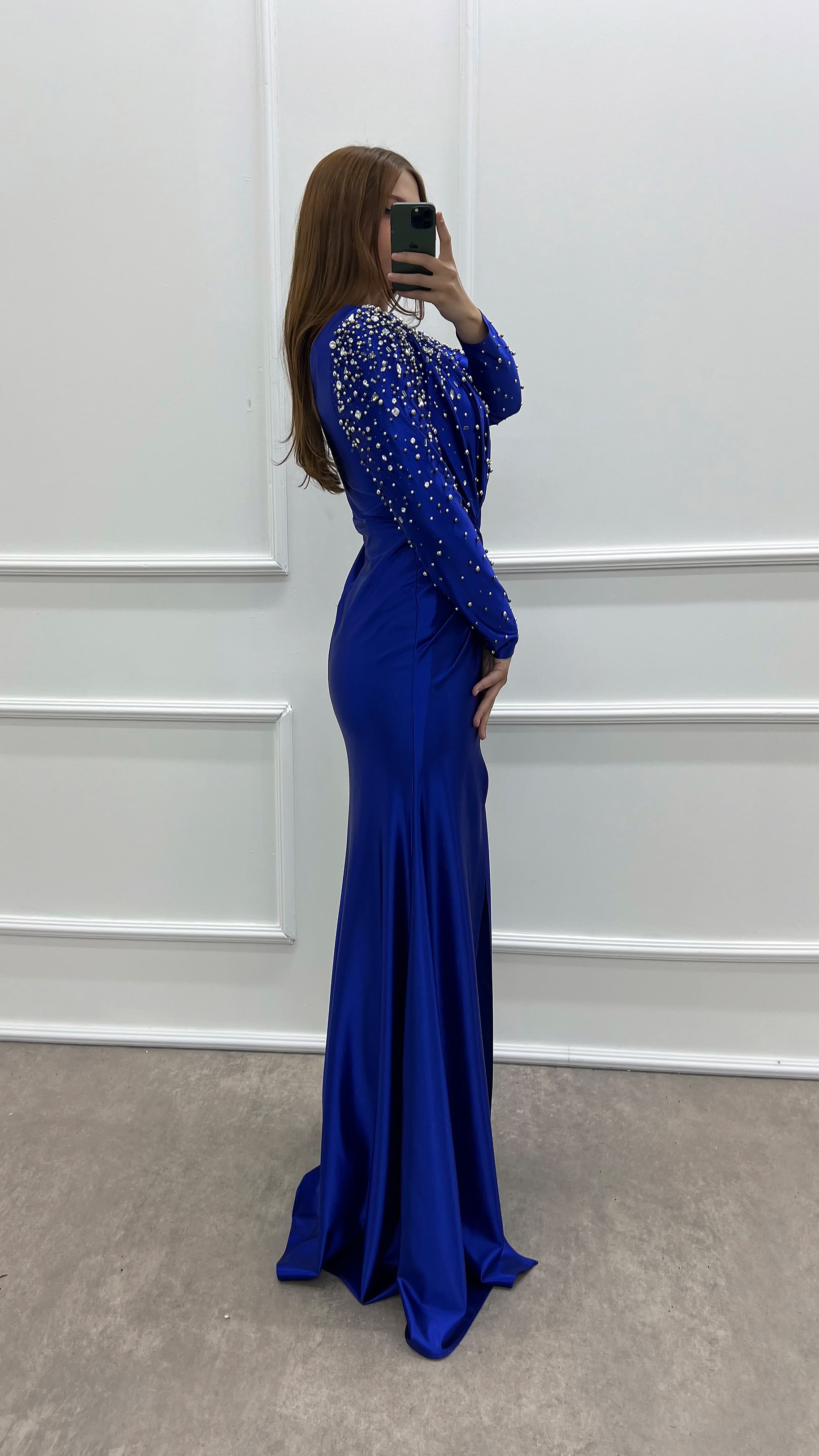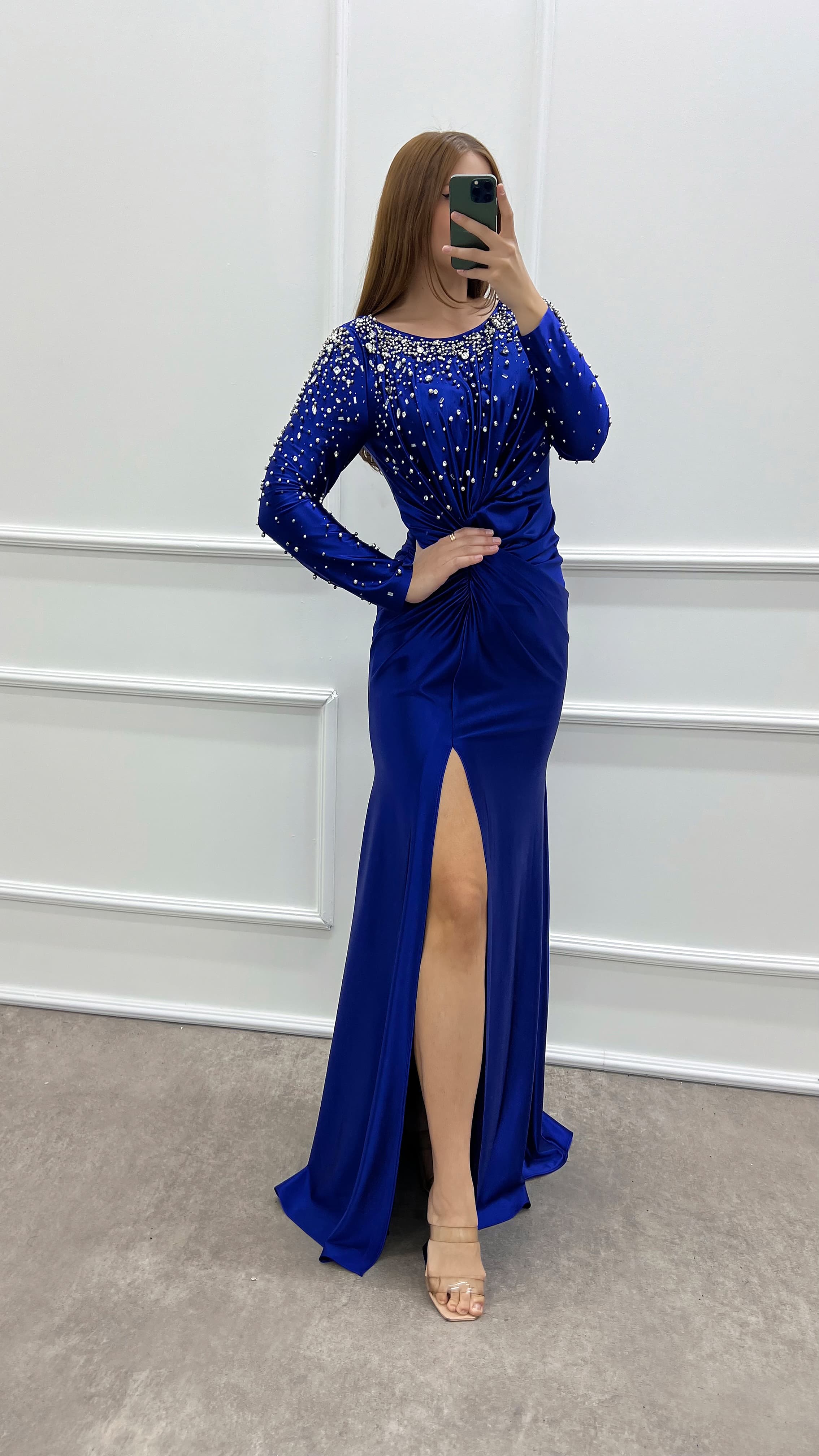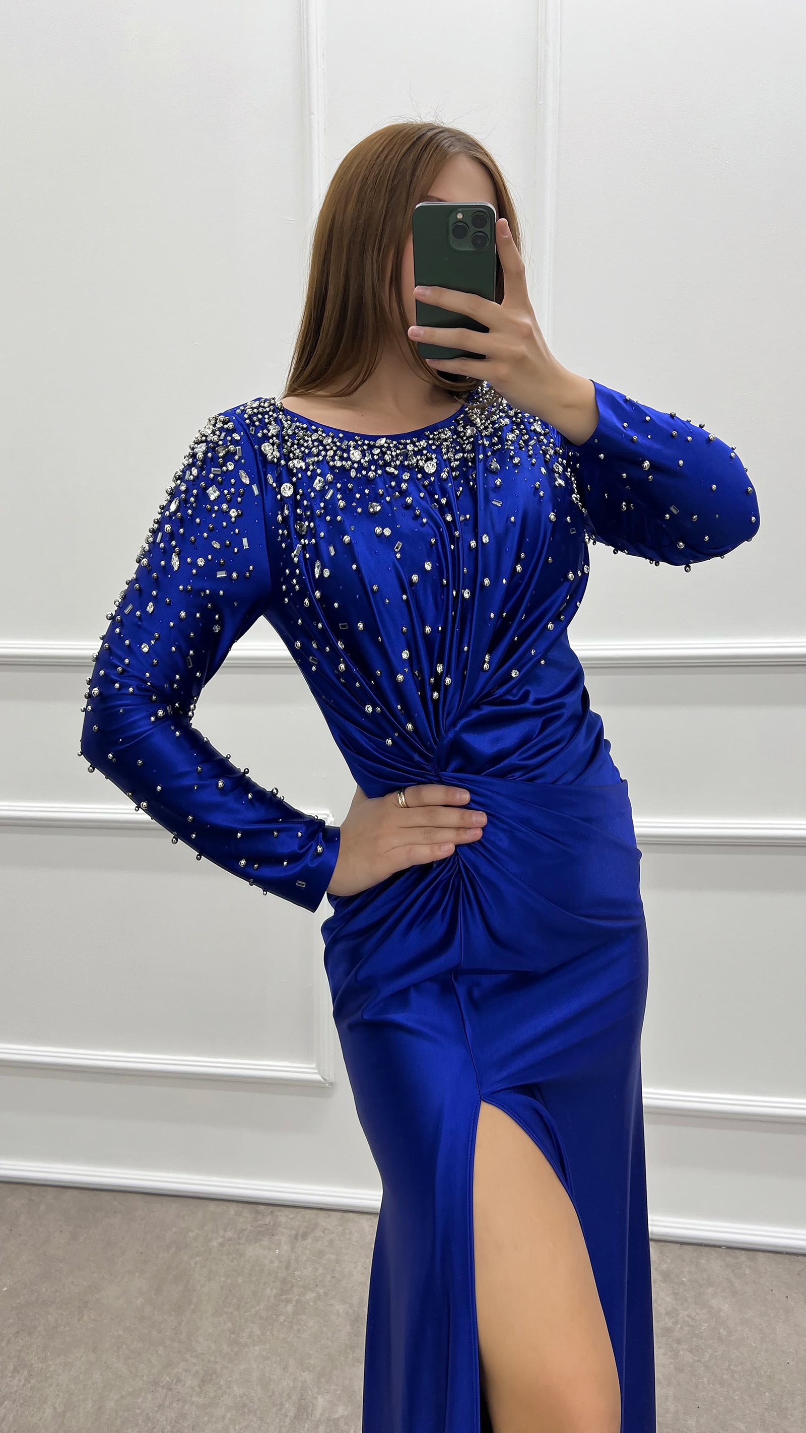 Saks Satin Plus Size Kleid mit drapierten Steinen an der Taille
