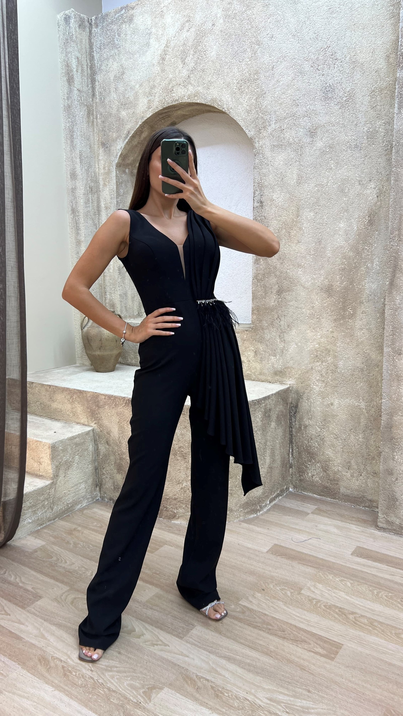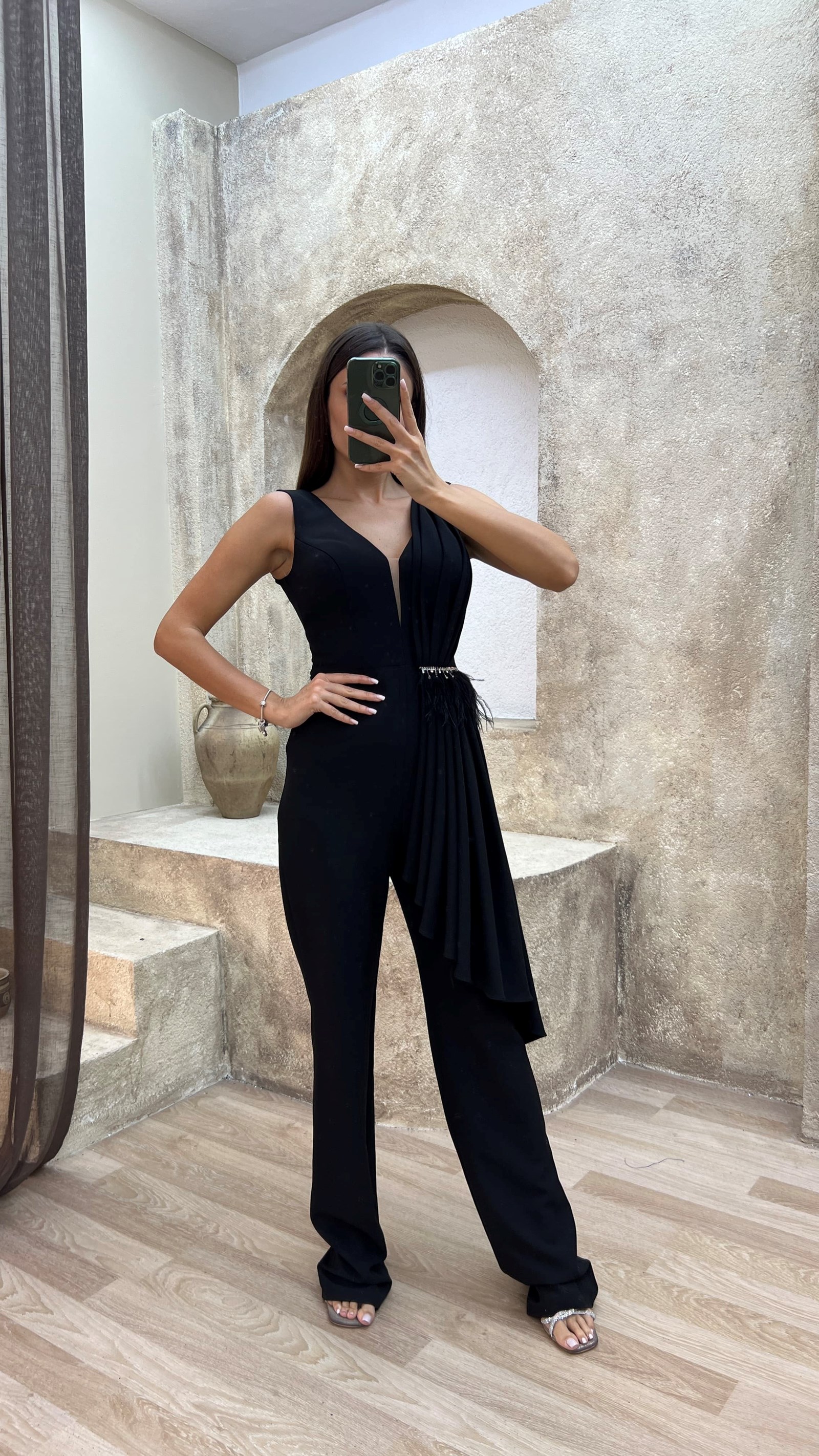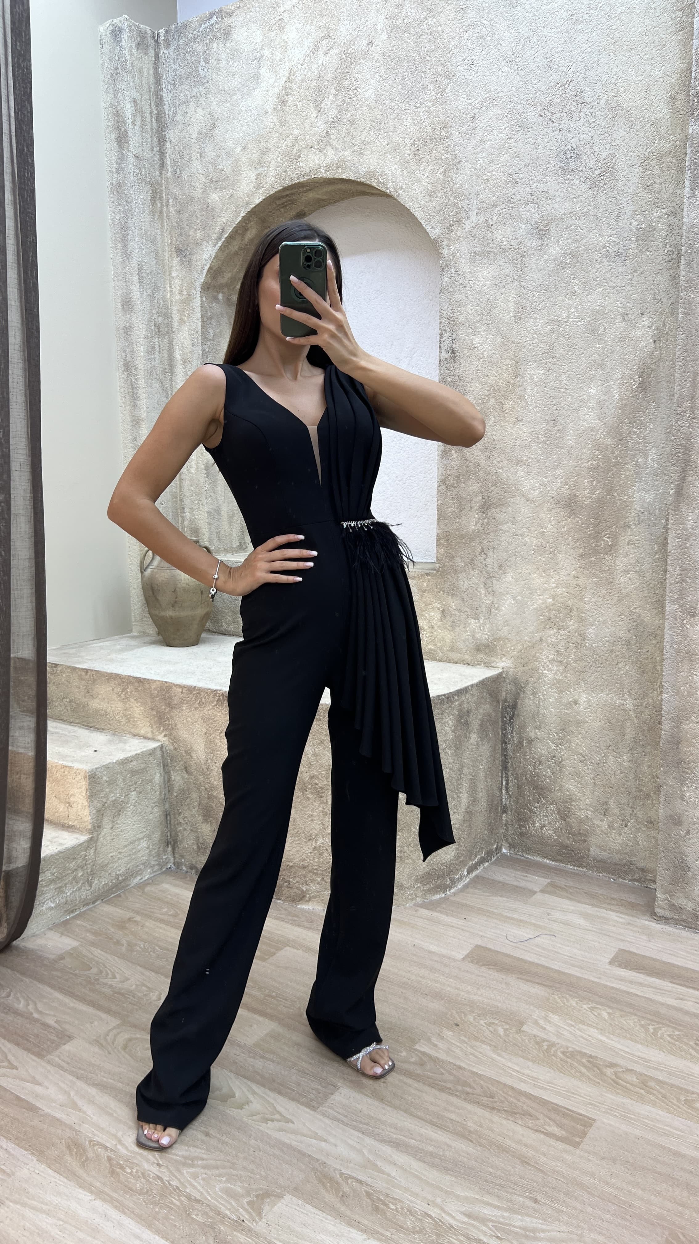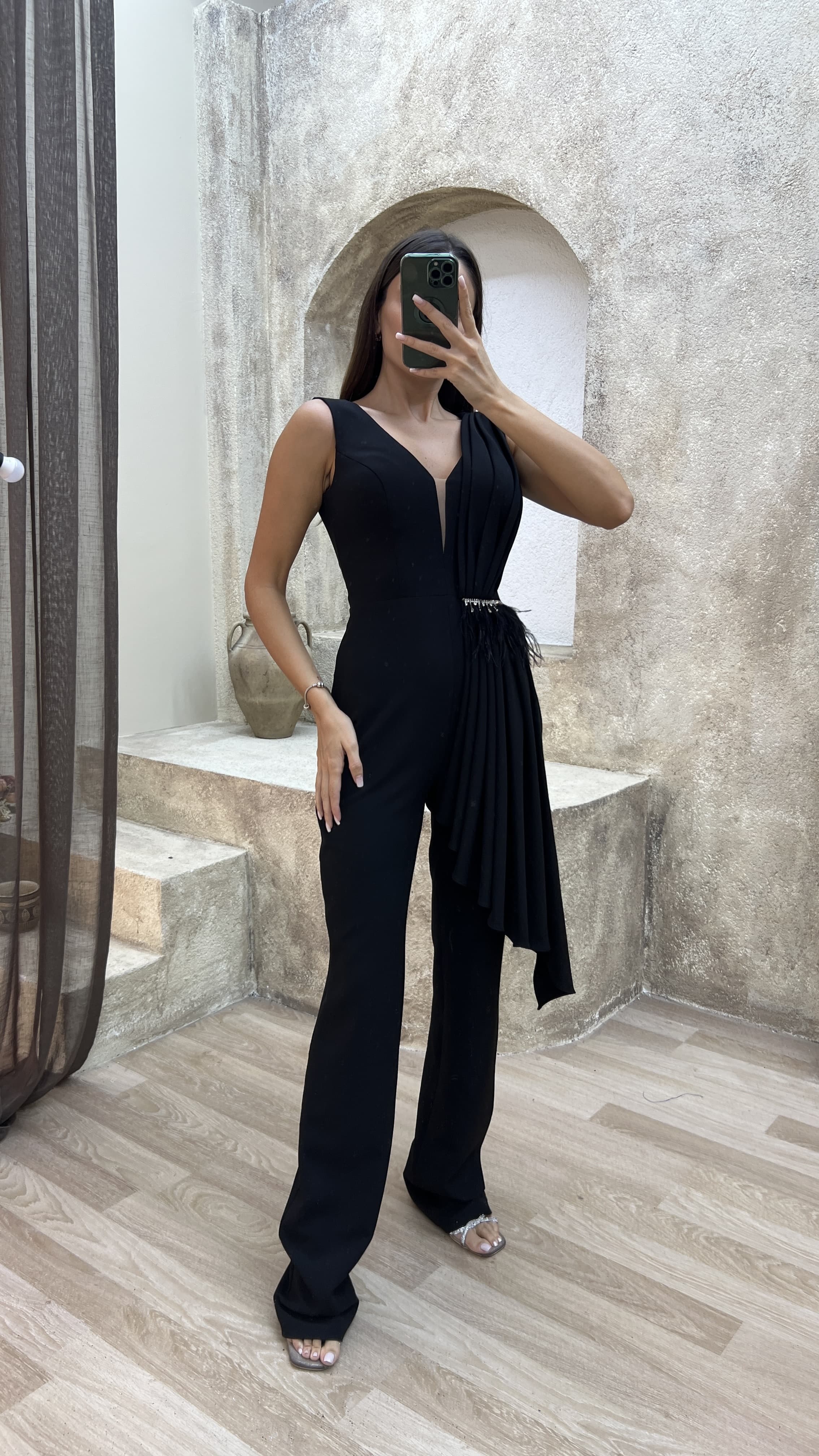 Schwarzer Jumpsuit mit Plissee-Design in der Taille