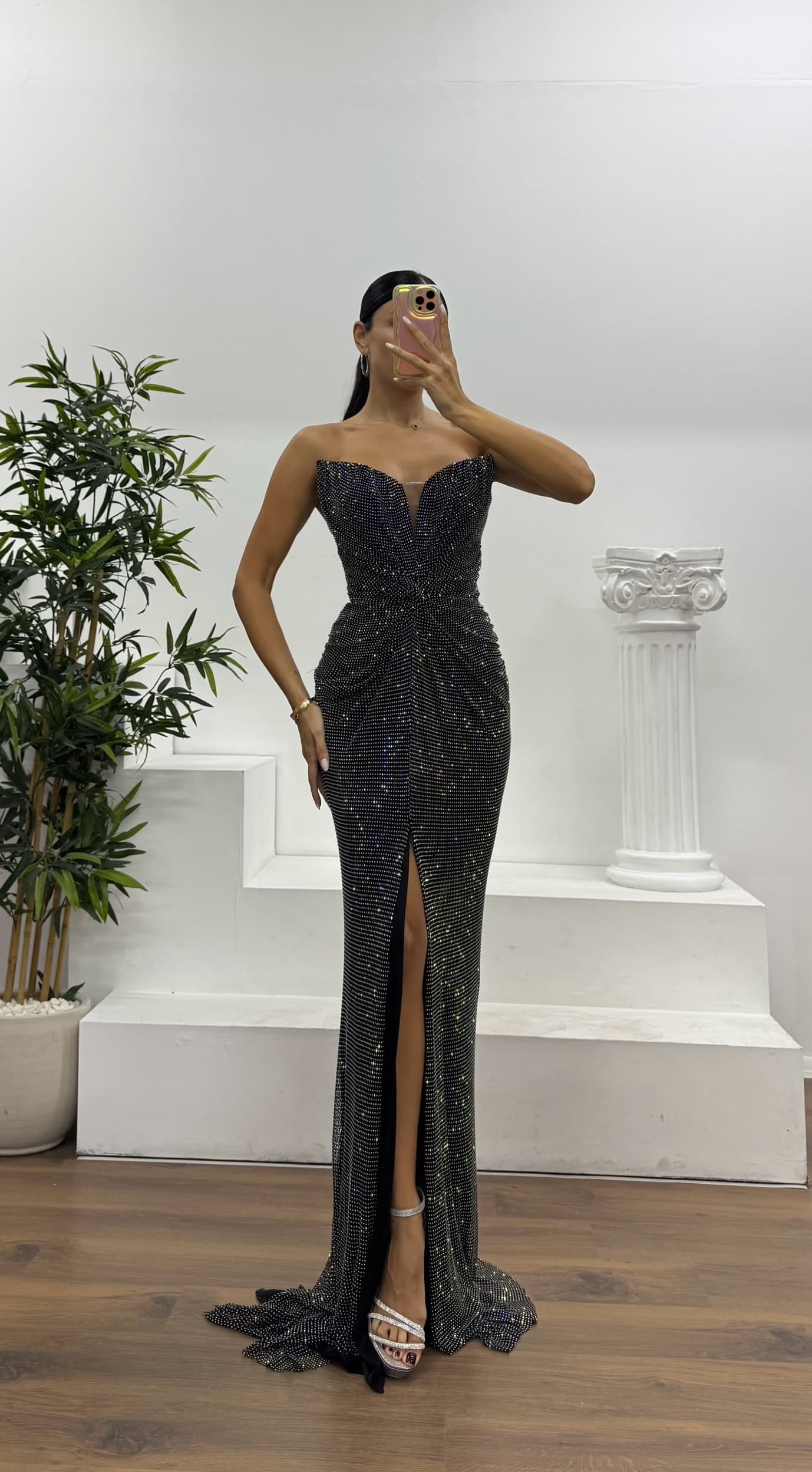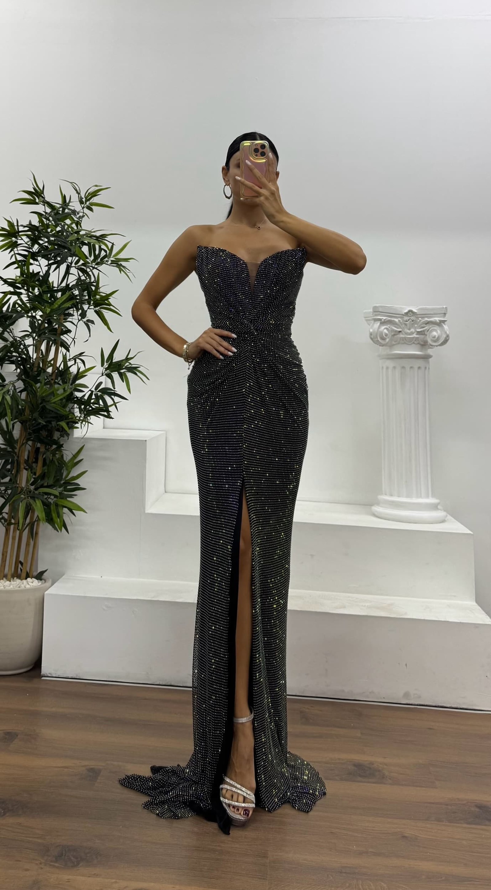 Schwarzes trägerloses Abendkleid von Jan Jan