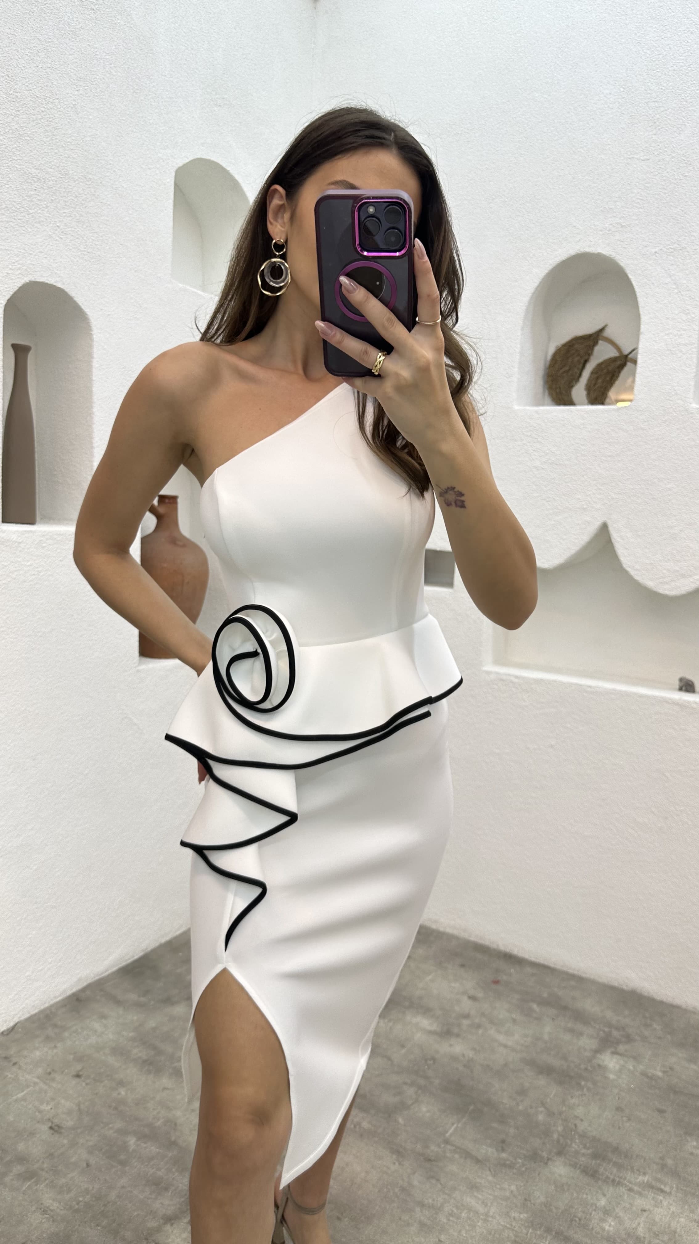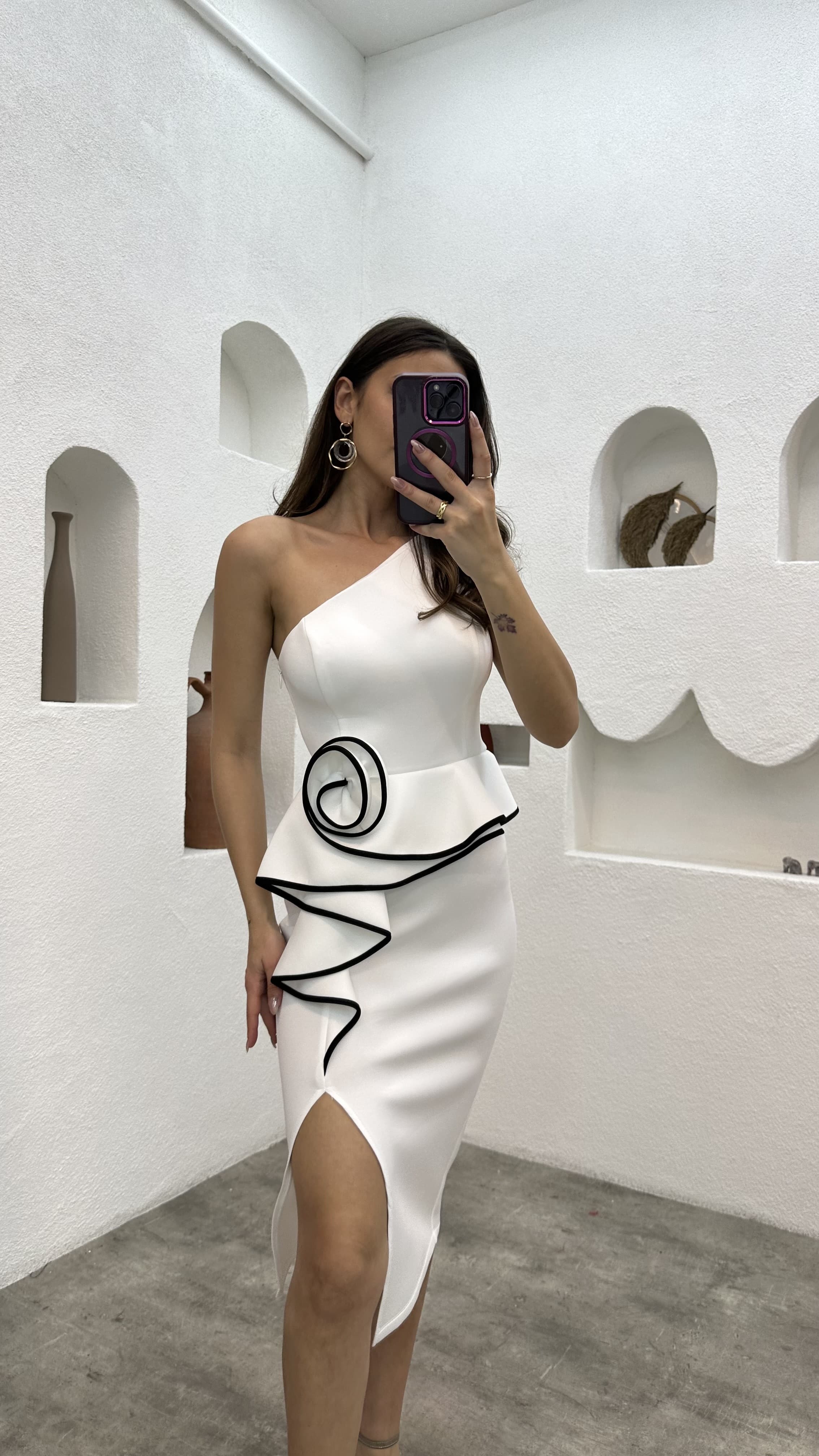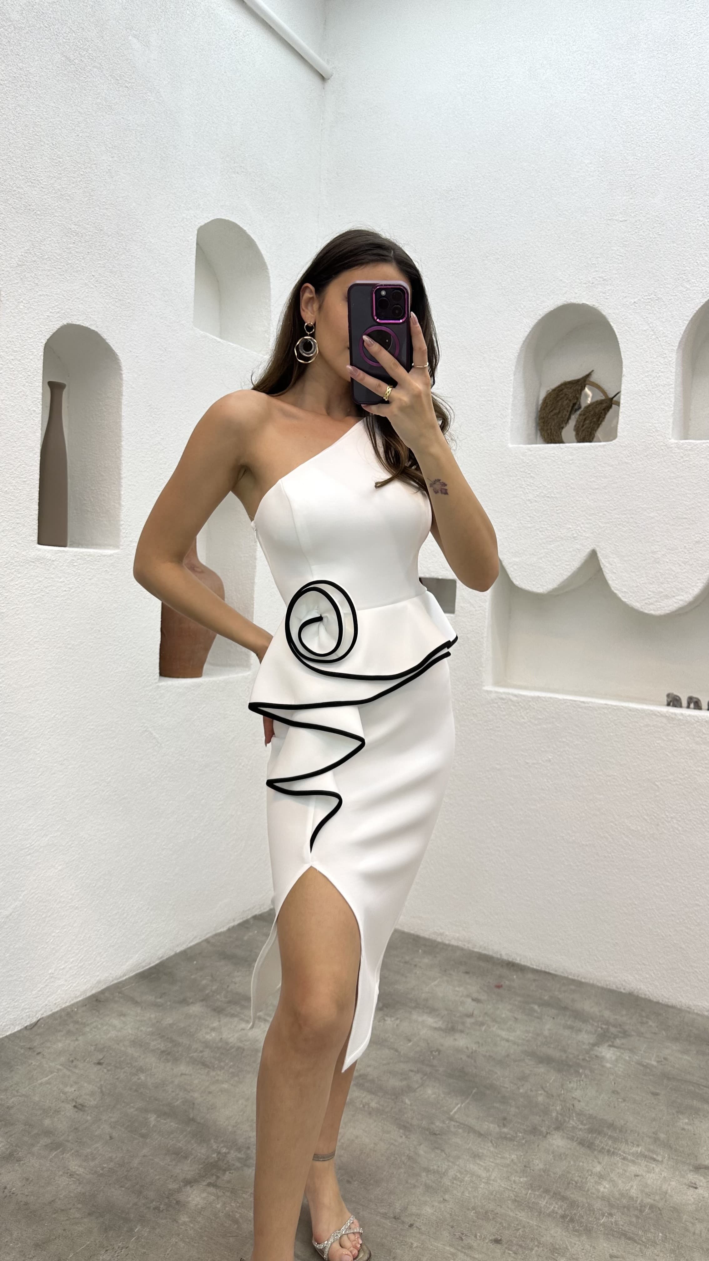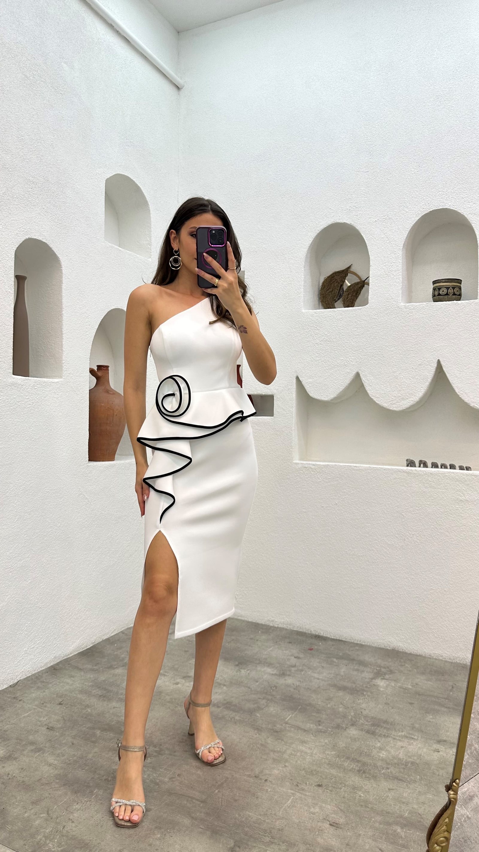Schwarzes Midi-Bleistiftkleid mit One-Shoulder-Träger