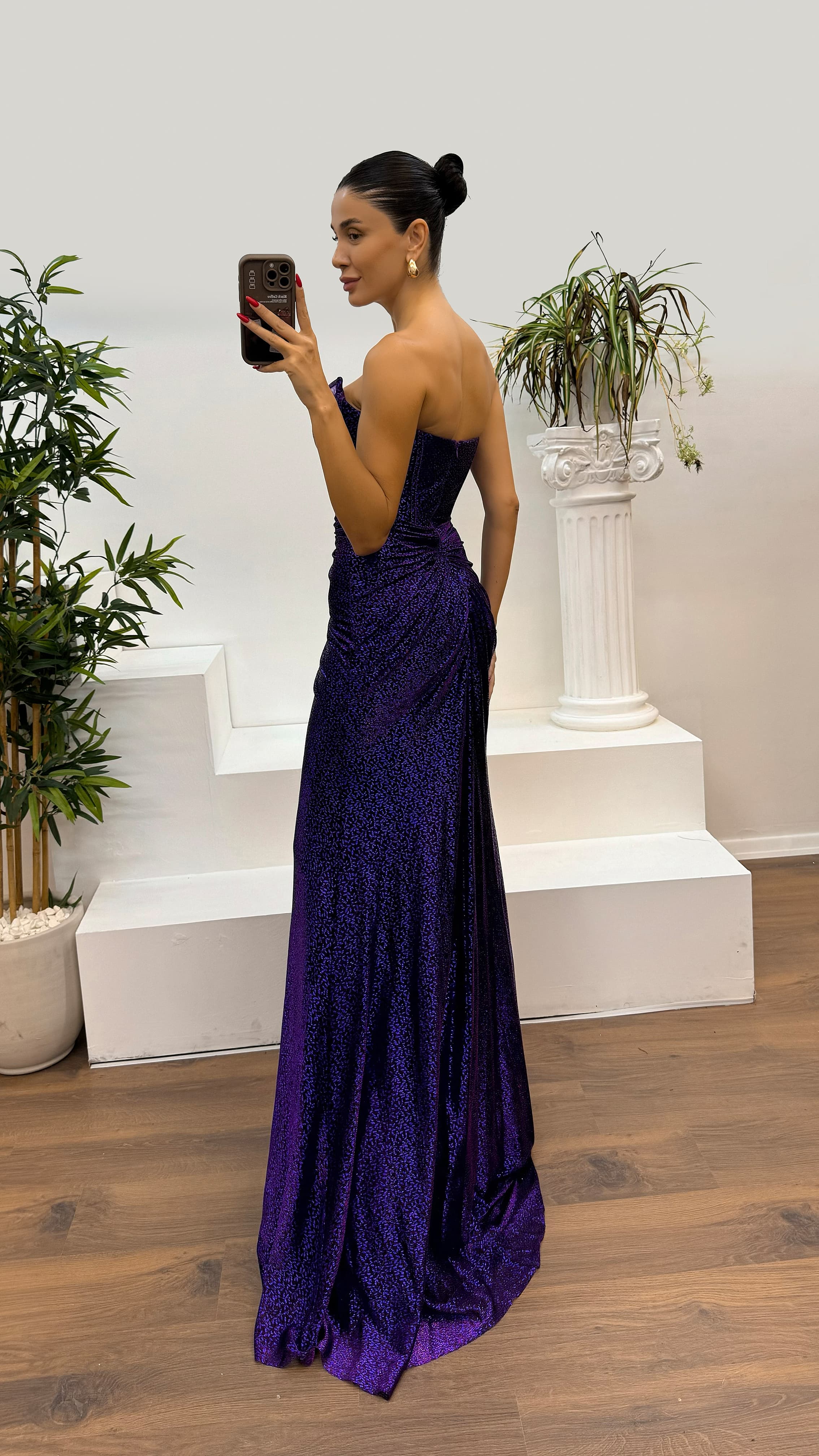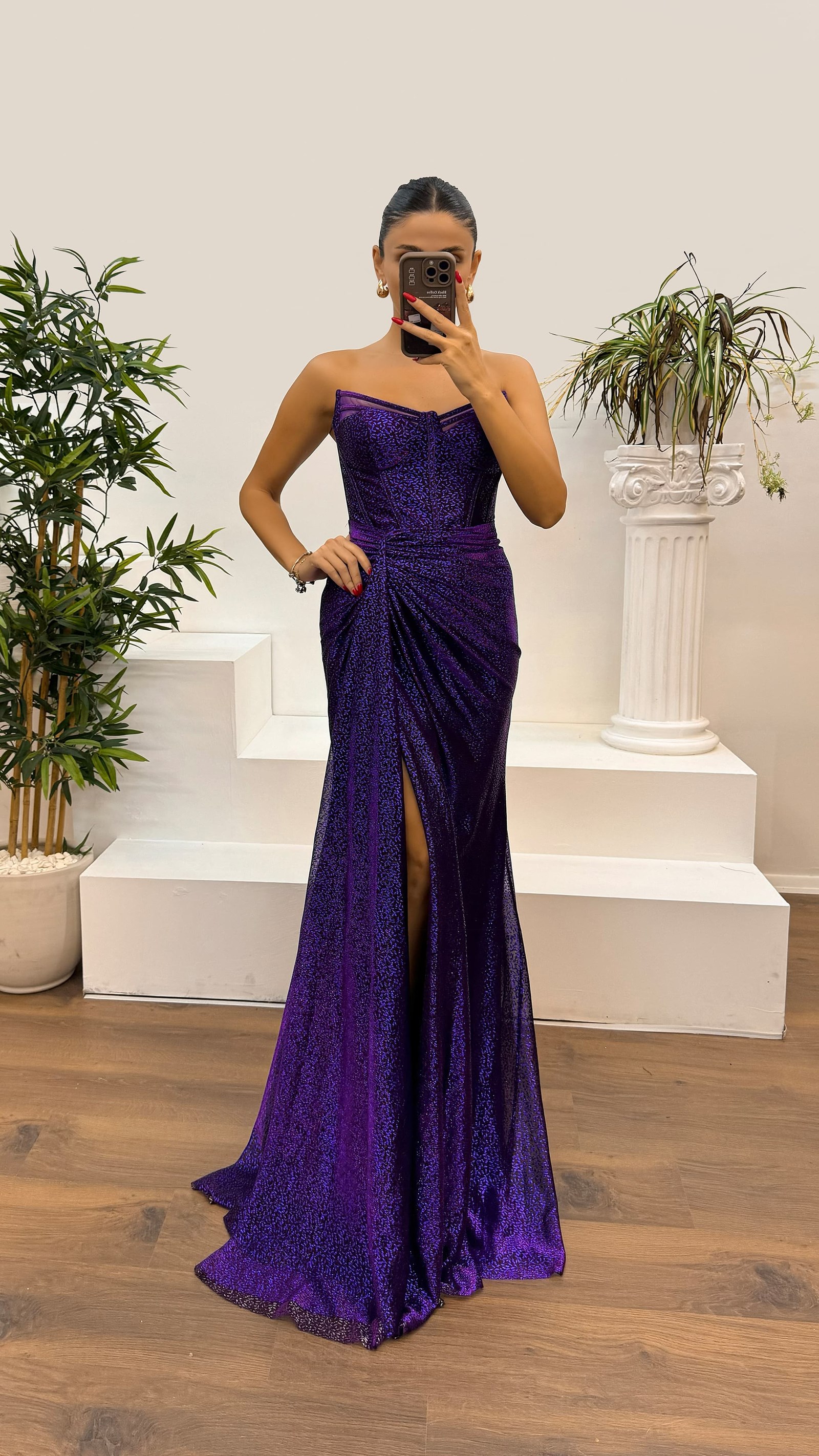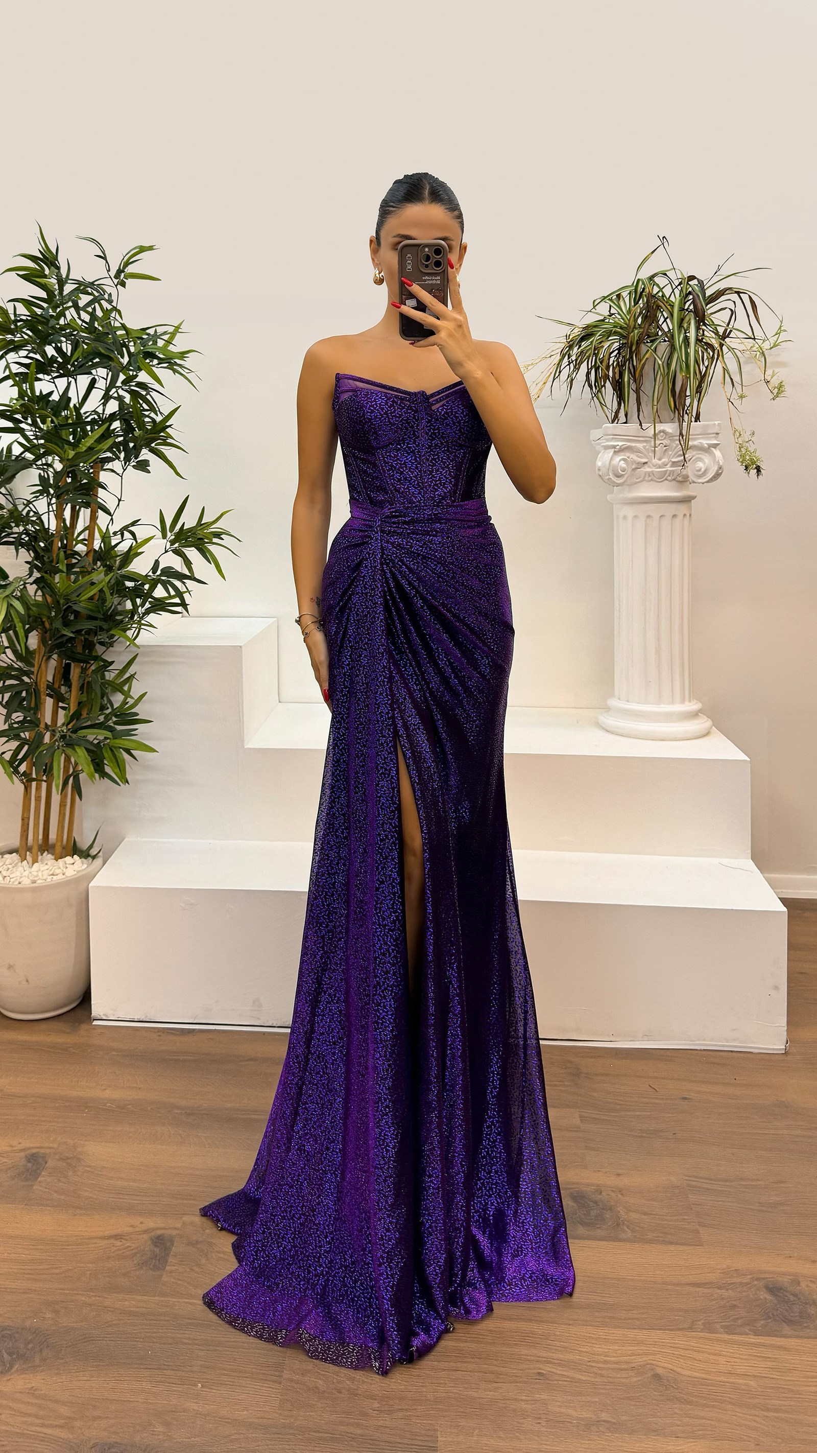 • Aqua Yeşil Straplez Desenli Abiye Elbise