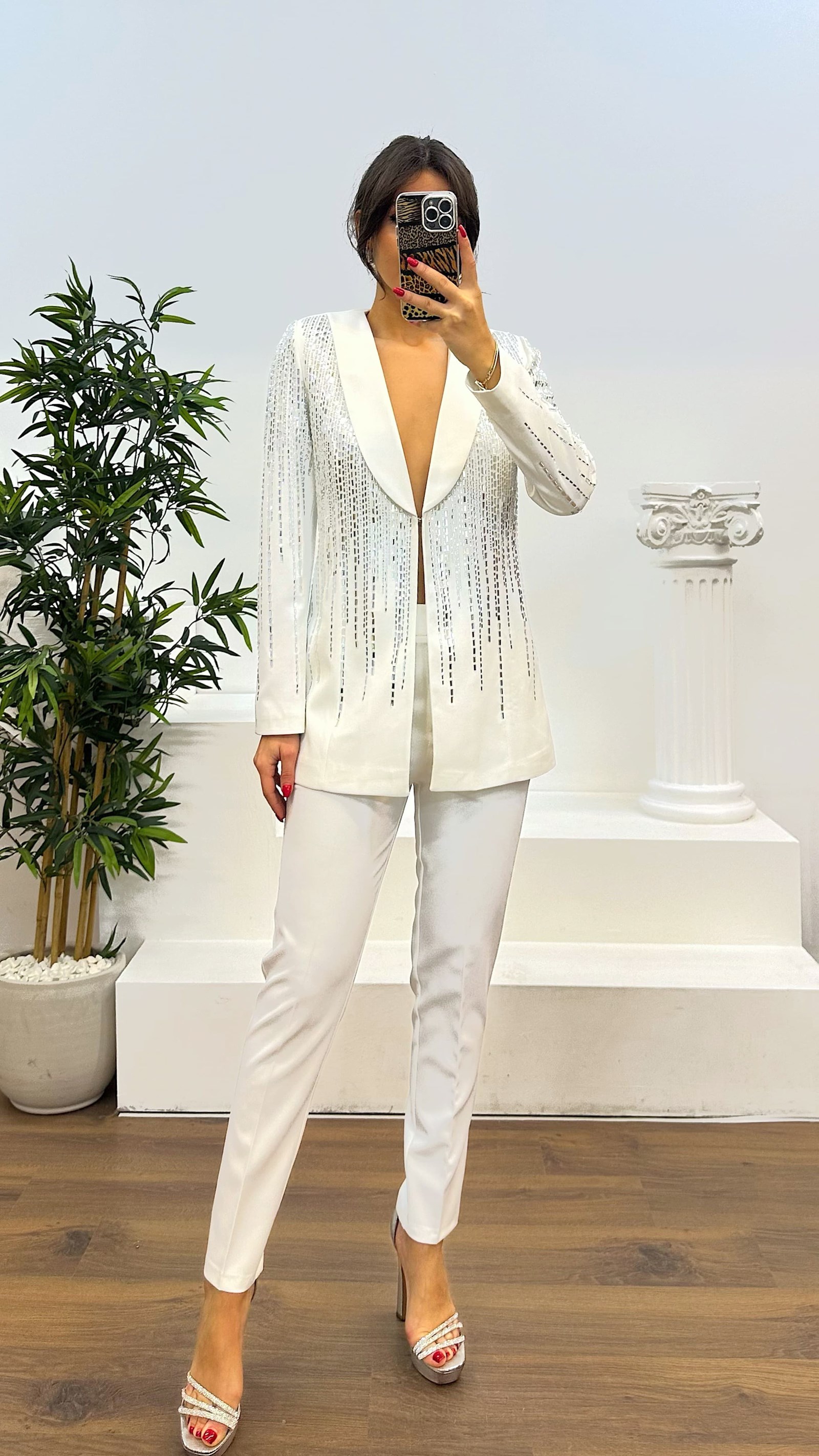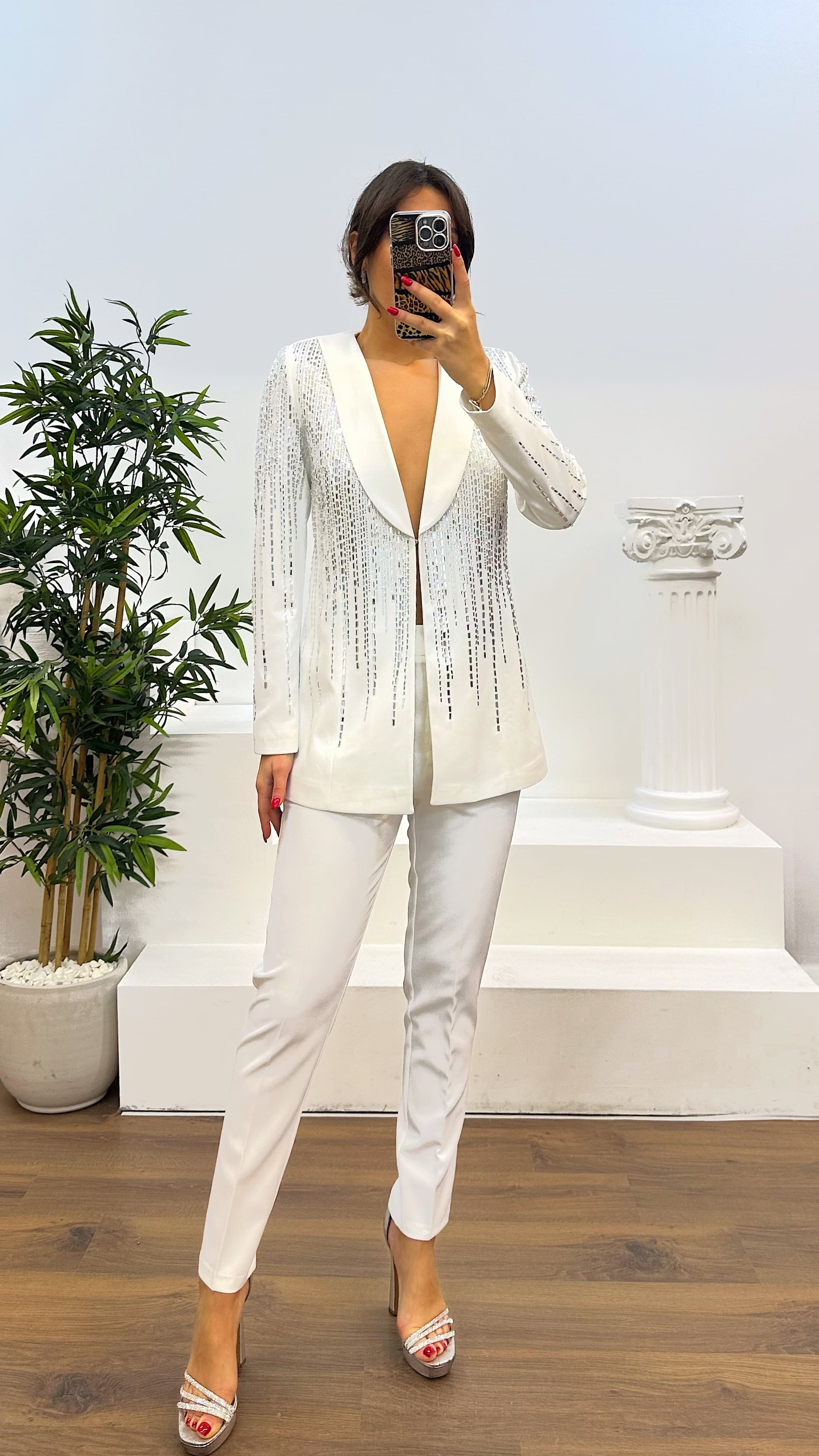 • Beyaz İşlemeli Takım Elbise