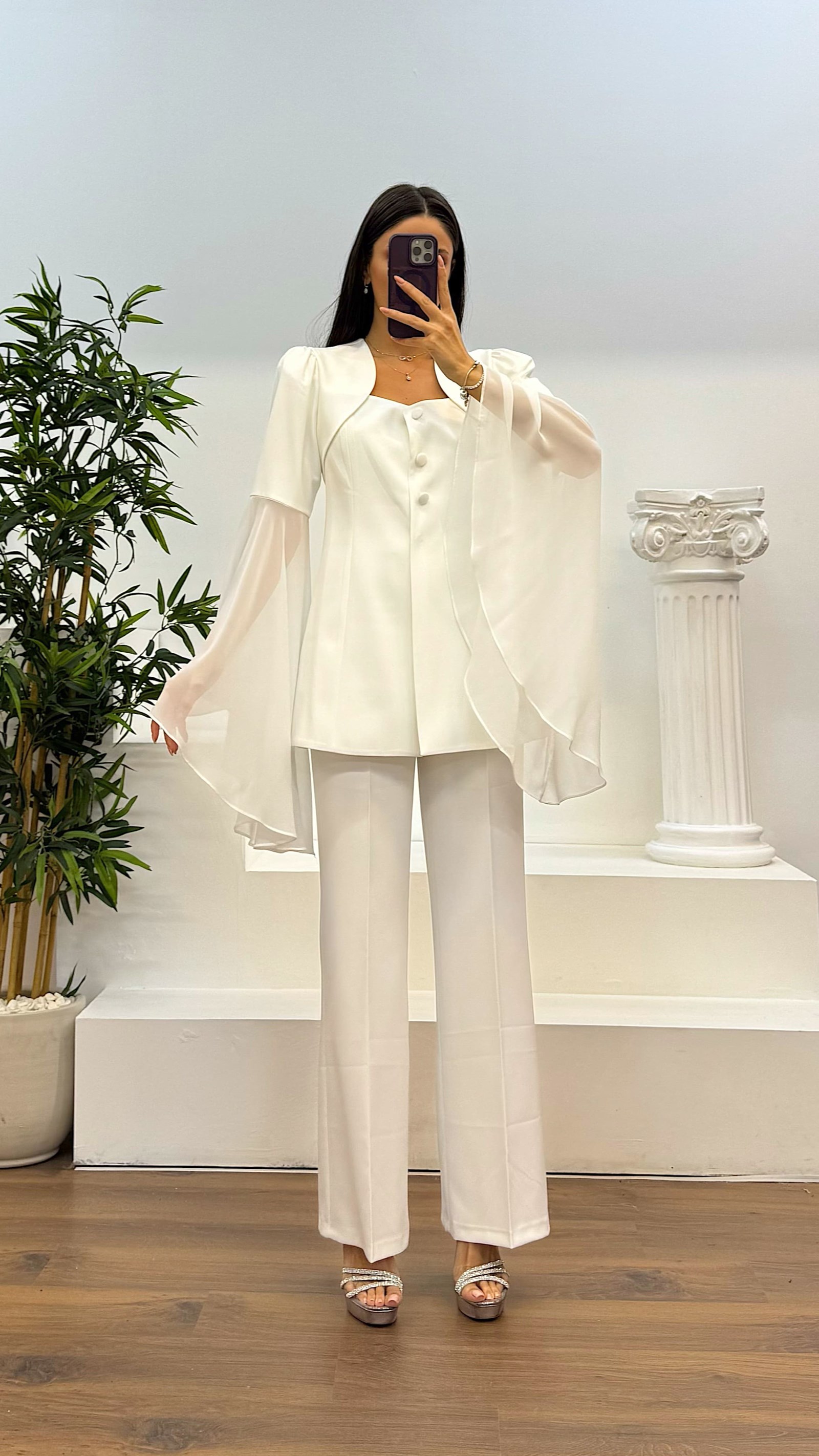 Abendkleid-Set mit Chiffon-Details Das Produkt passt für die Größen 36-46, mit Brustpolstern, gefüttert, mit Reißverschluss, abnehmbarem Gürtel, Jacke mit Knopfverschluss, entworfen als Abendkleid-Set mit Chiffon-Details. Produktlänge: 100 cm Ärmellänge des Produkts: 60 cm Stoffart: Atlas 100% Polyester - Chiffon 66% Viskose 34% Polyester