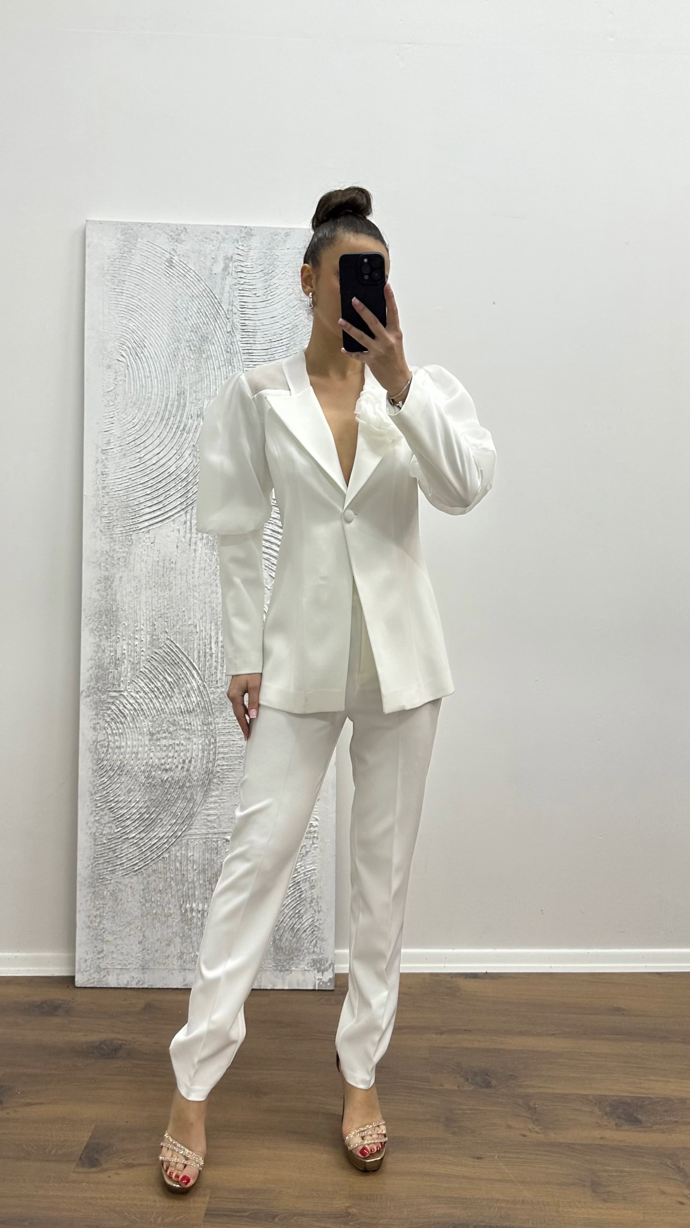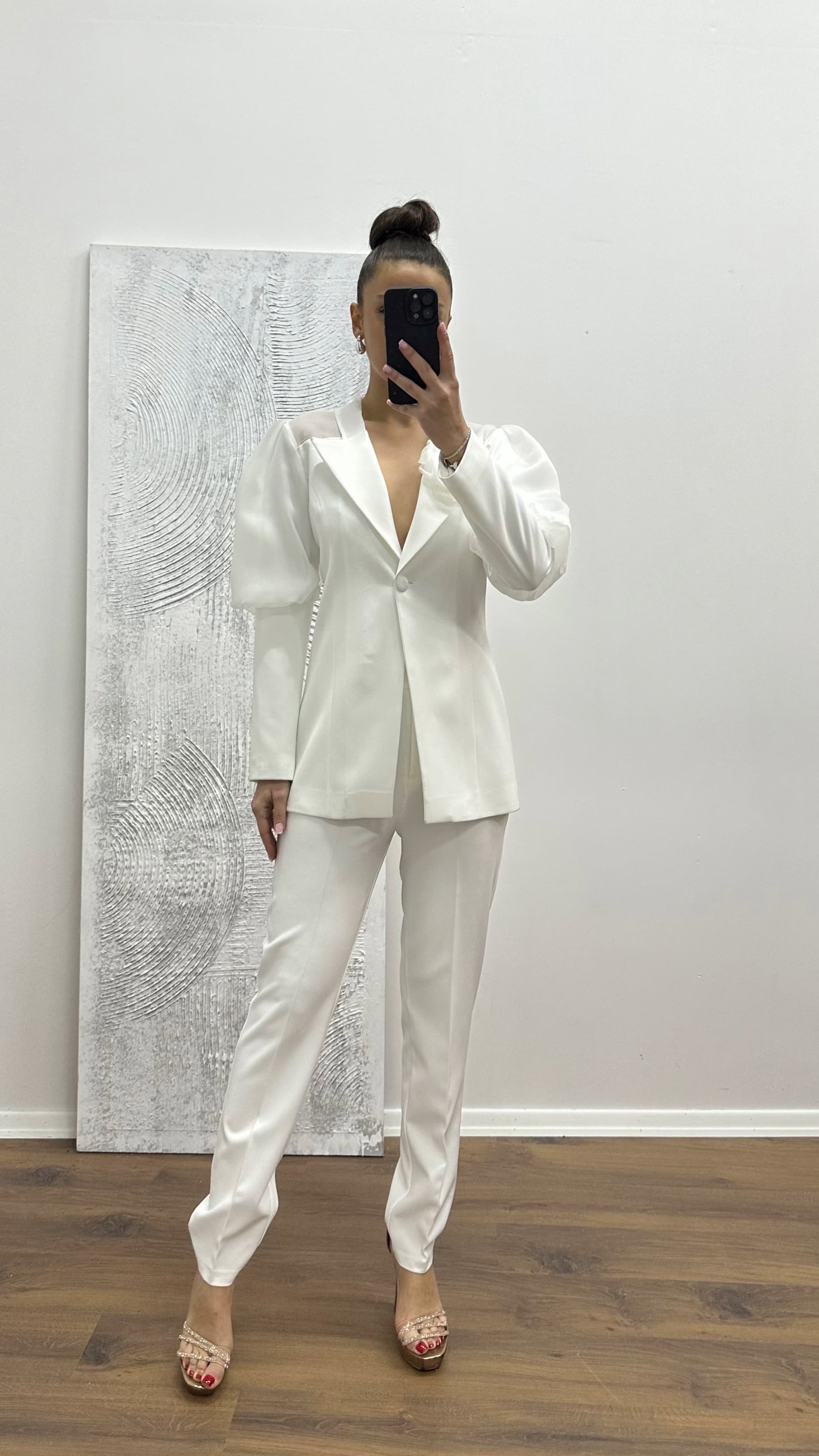 • Weißes Abendkleid-Set mit Ballonärmeln