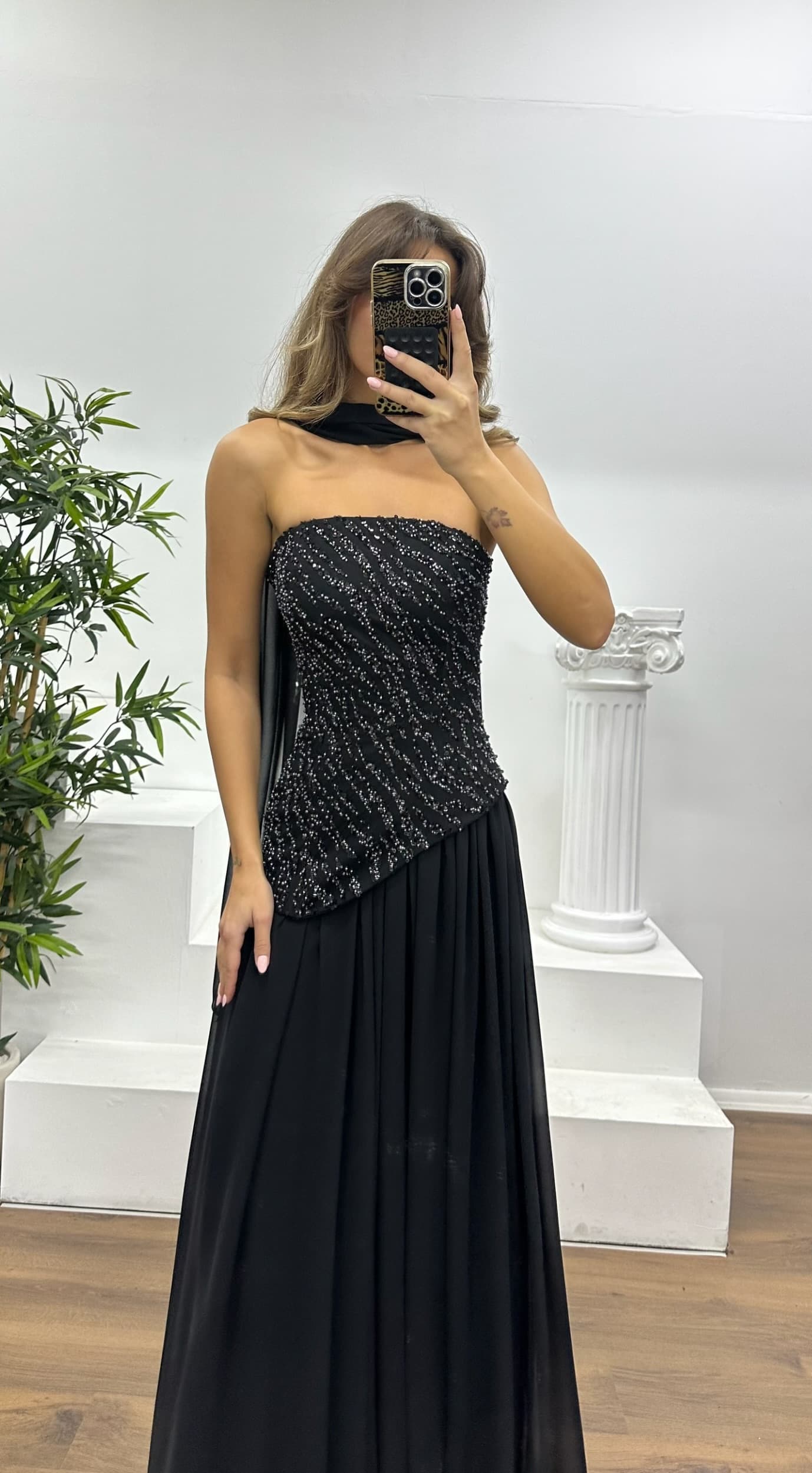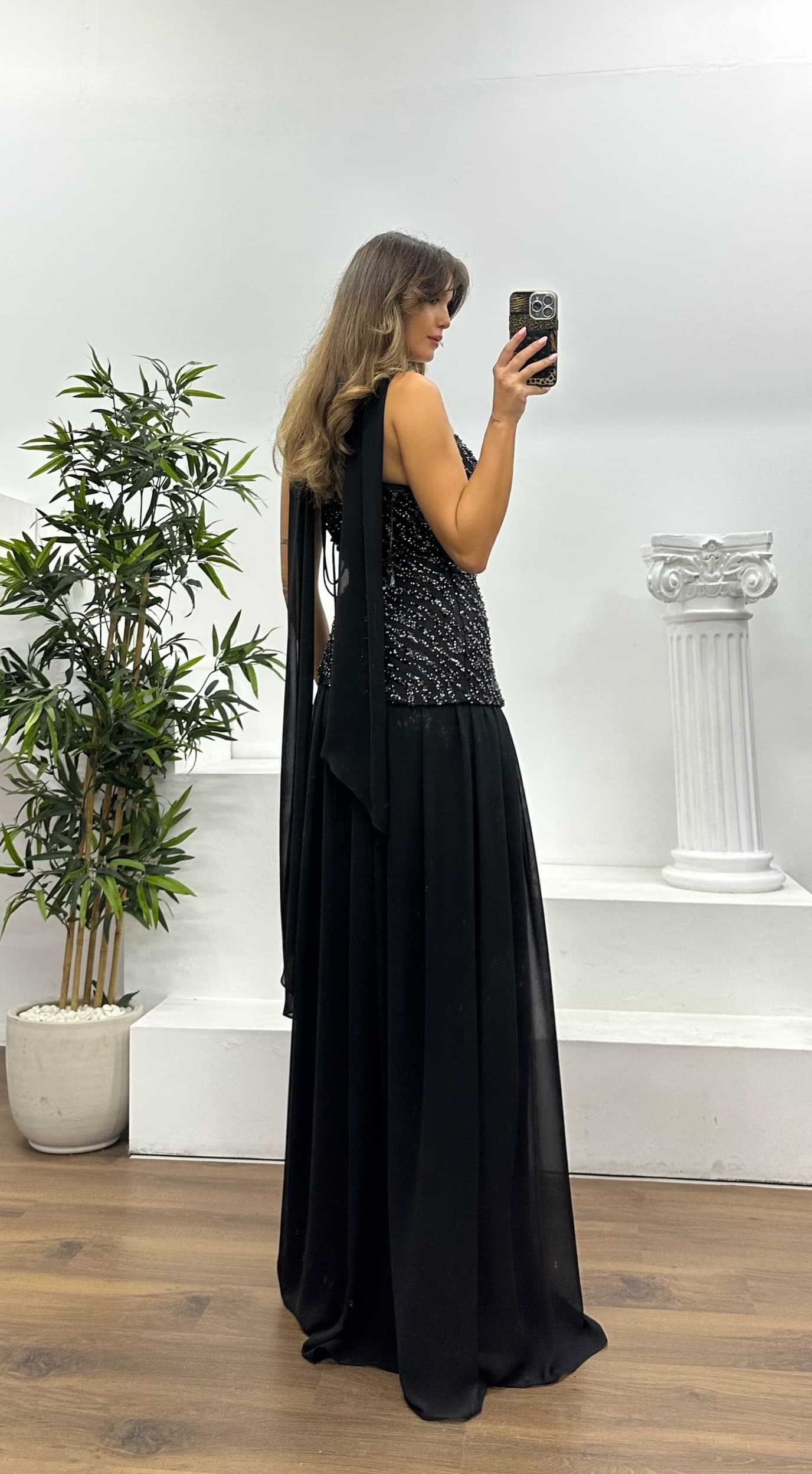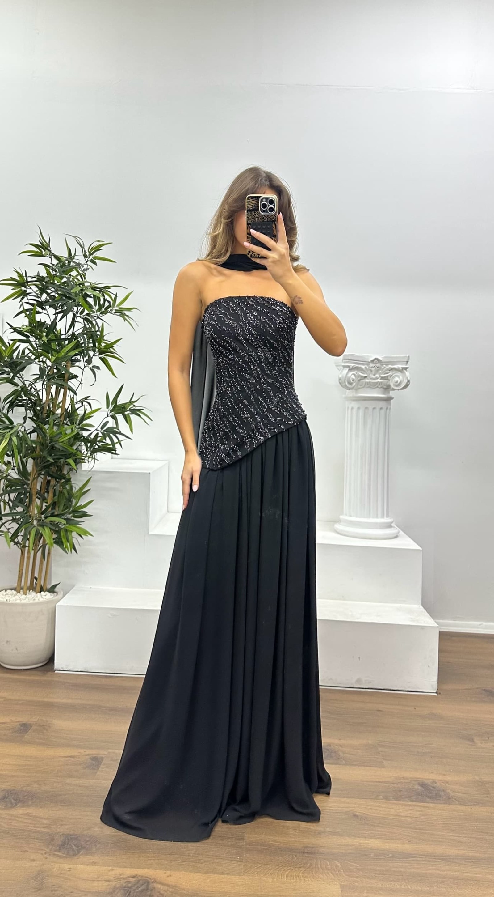 Asymmetrisch geschnittenes besticktes Abendkleid