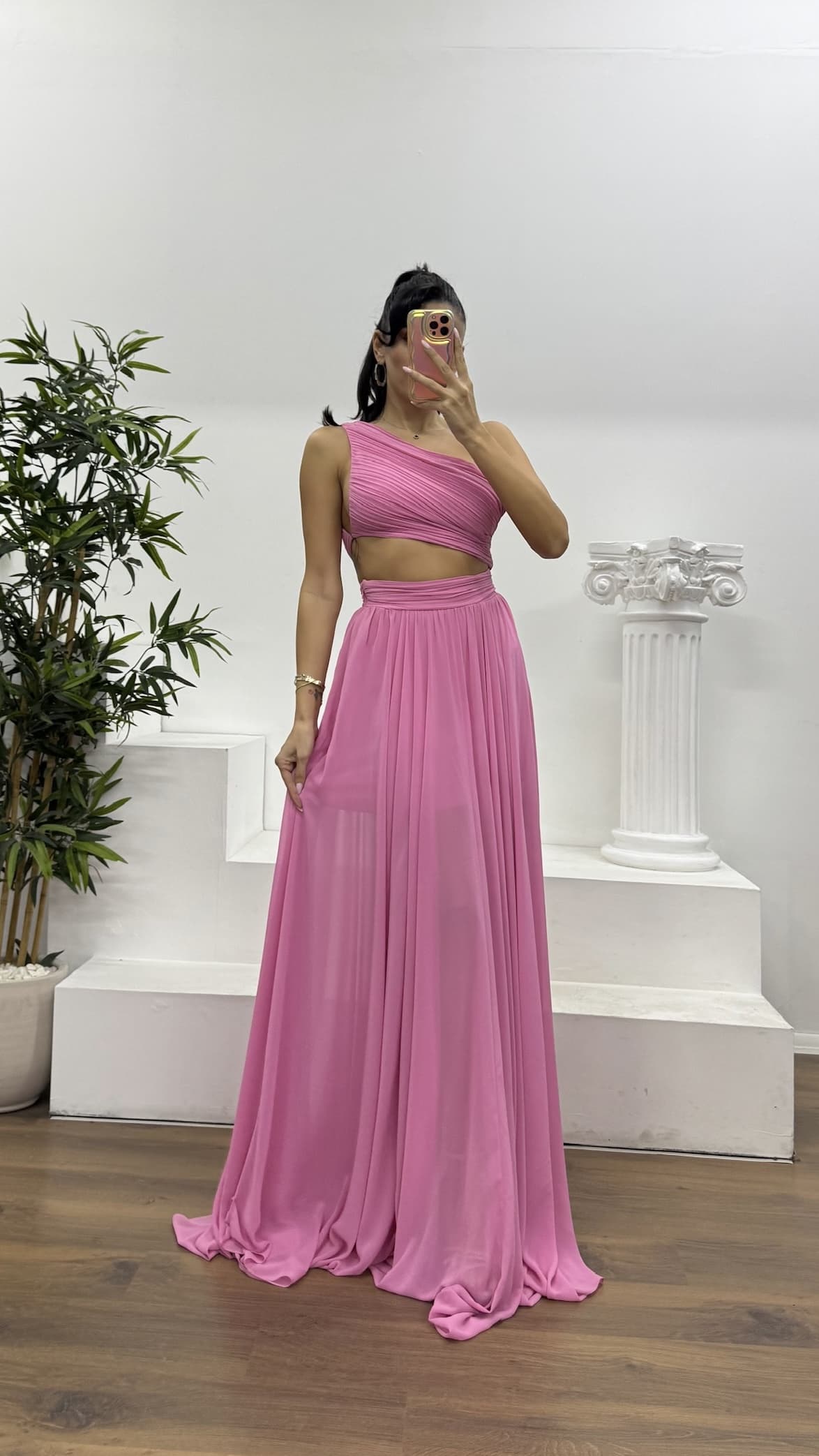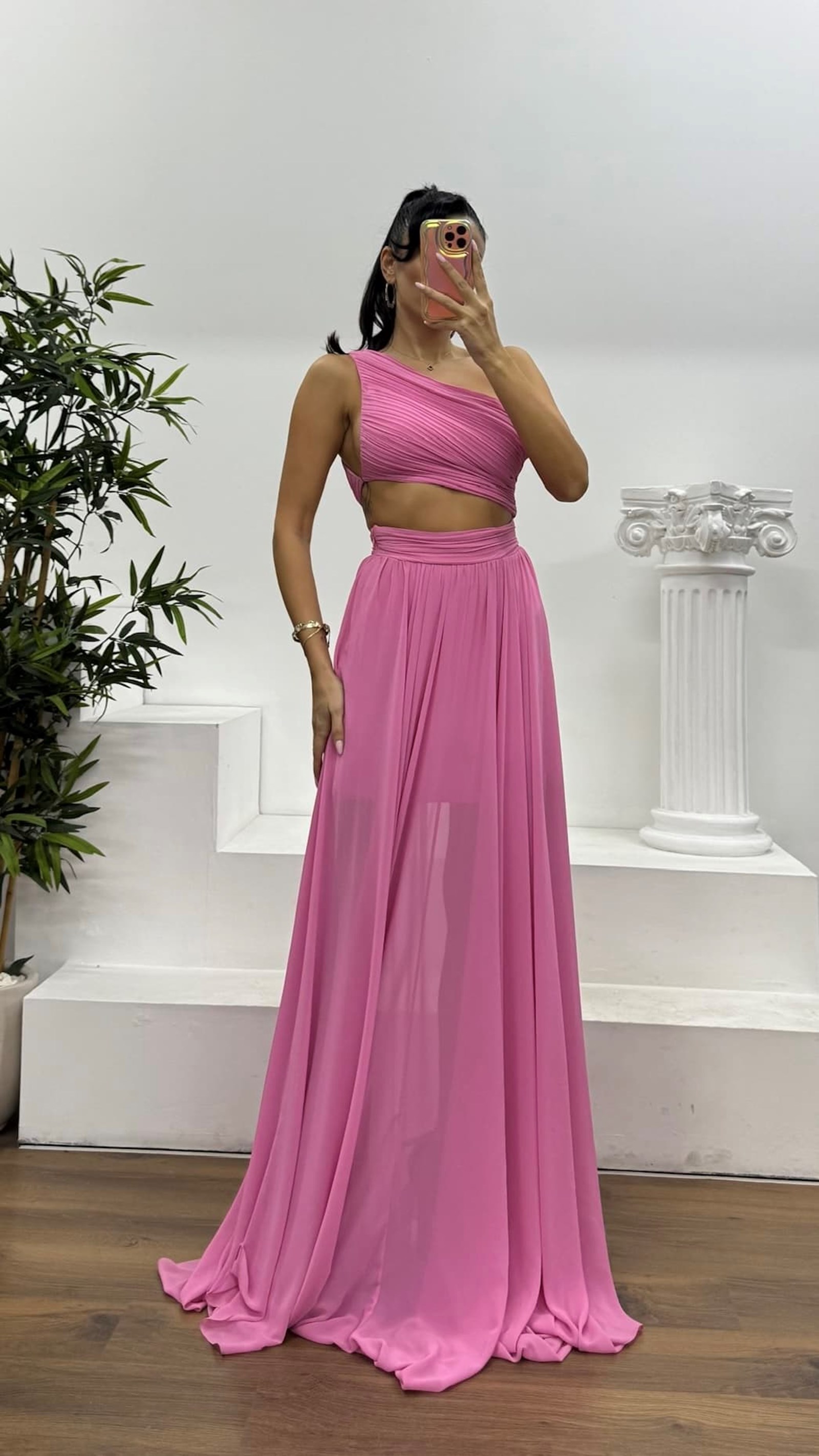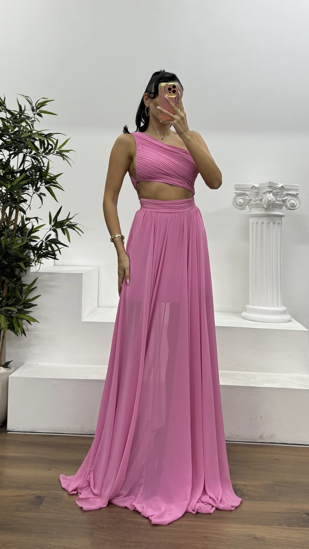 • Rosa Abendkleid mit tiefem Ausschnitt und One-Shoulder-Design