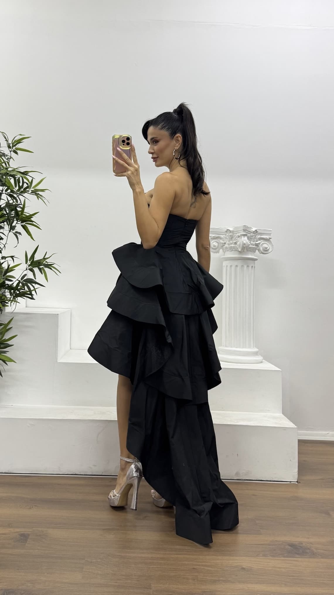 Abendkleid mit mehreren Volantschichten Das Produkt passt bis Größe 36. Es verfügt über ein gepolstertes Brustteil, Futter, einen Reißverschluss hinten und ist als schulterfreies Abendkleid gestaltet. Produktlänge: kann zwischen 170–175 cm variieren. Stoffart: Taft, 100 % Polyester. Eine ideale Wahl, um bei Hochzeiten, Verlobungen, Abschlussfeiern oder besonderen Anlässen elegant hervorzustechen.