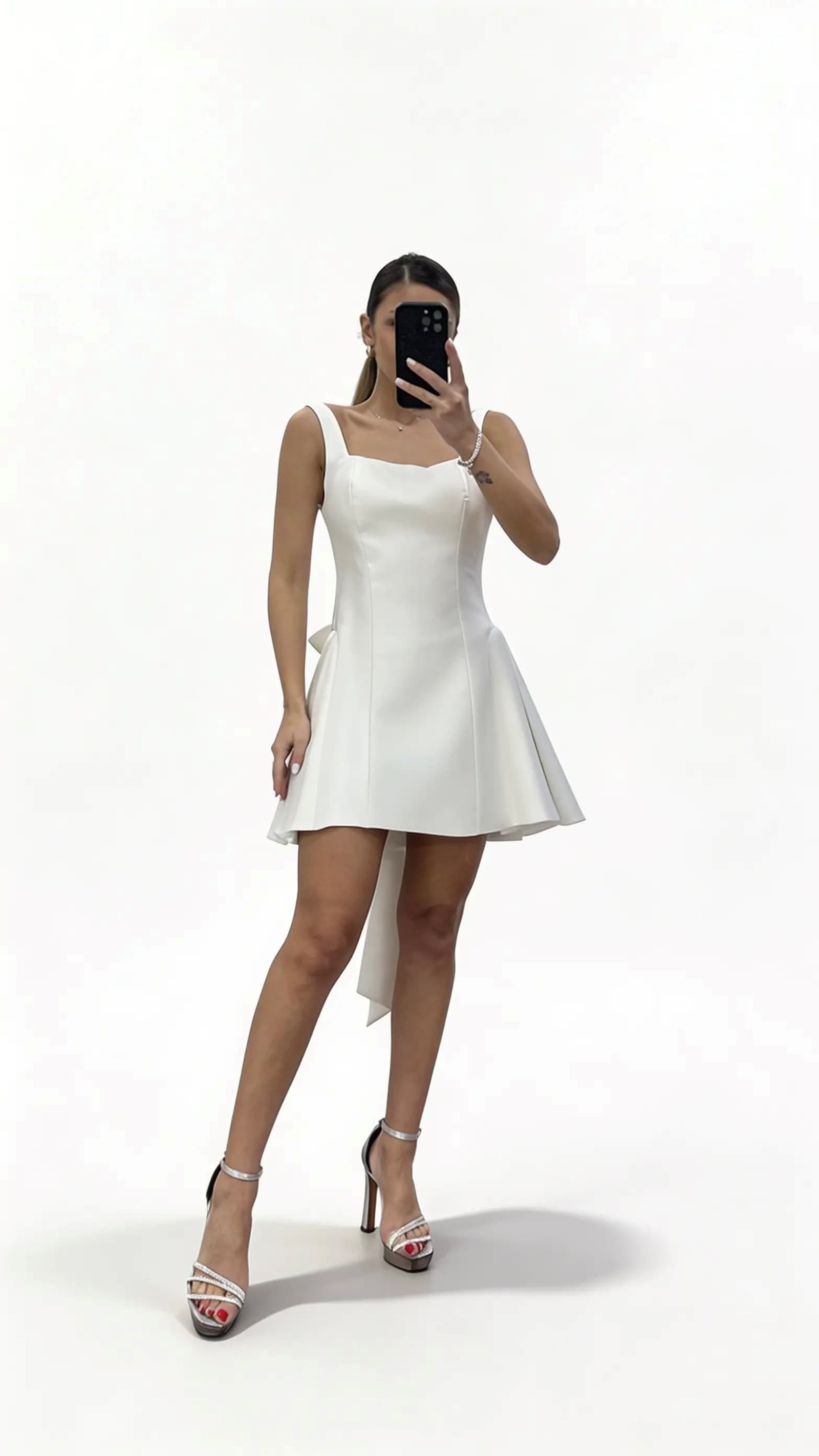 • Kemik Kalın Askılı Kare Yaka  A Kesim Kısa Abiye Elbise