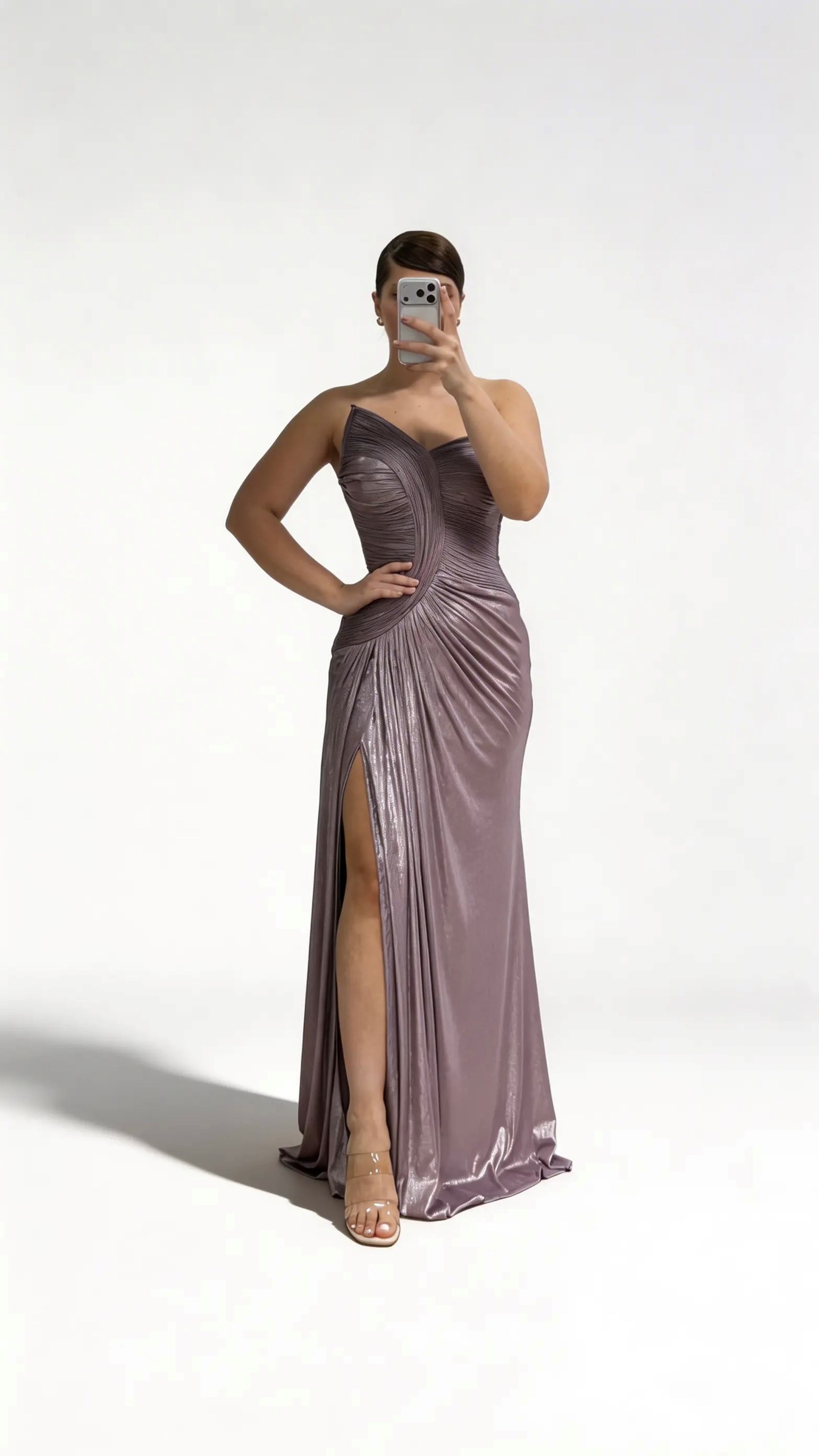 • Bakır Asimetrik Kavis Drapeli Straplez Büyük Beden Abiye Elbise