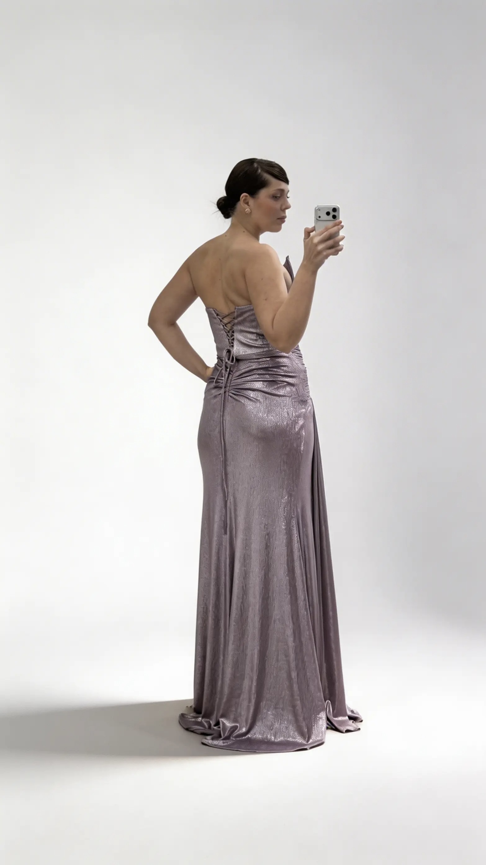 Lilafarbenes  asymmetrisches  geschwungenes  drapiertes  trägerloses Abendkleid in Übergröße