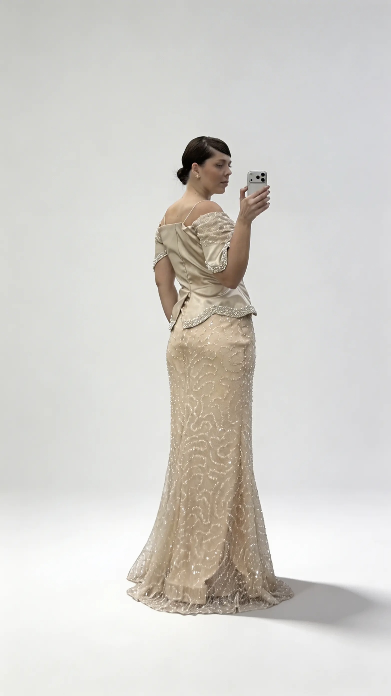 Goldenes  schulterfreies  mehrlagiges Pailletten Abendkleid in Korsettform in Übergröße