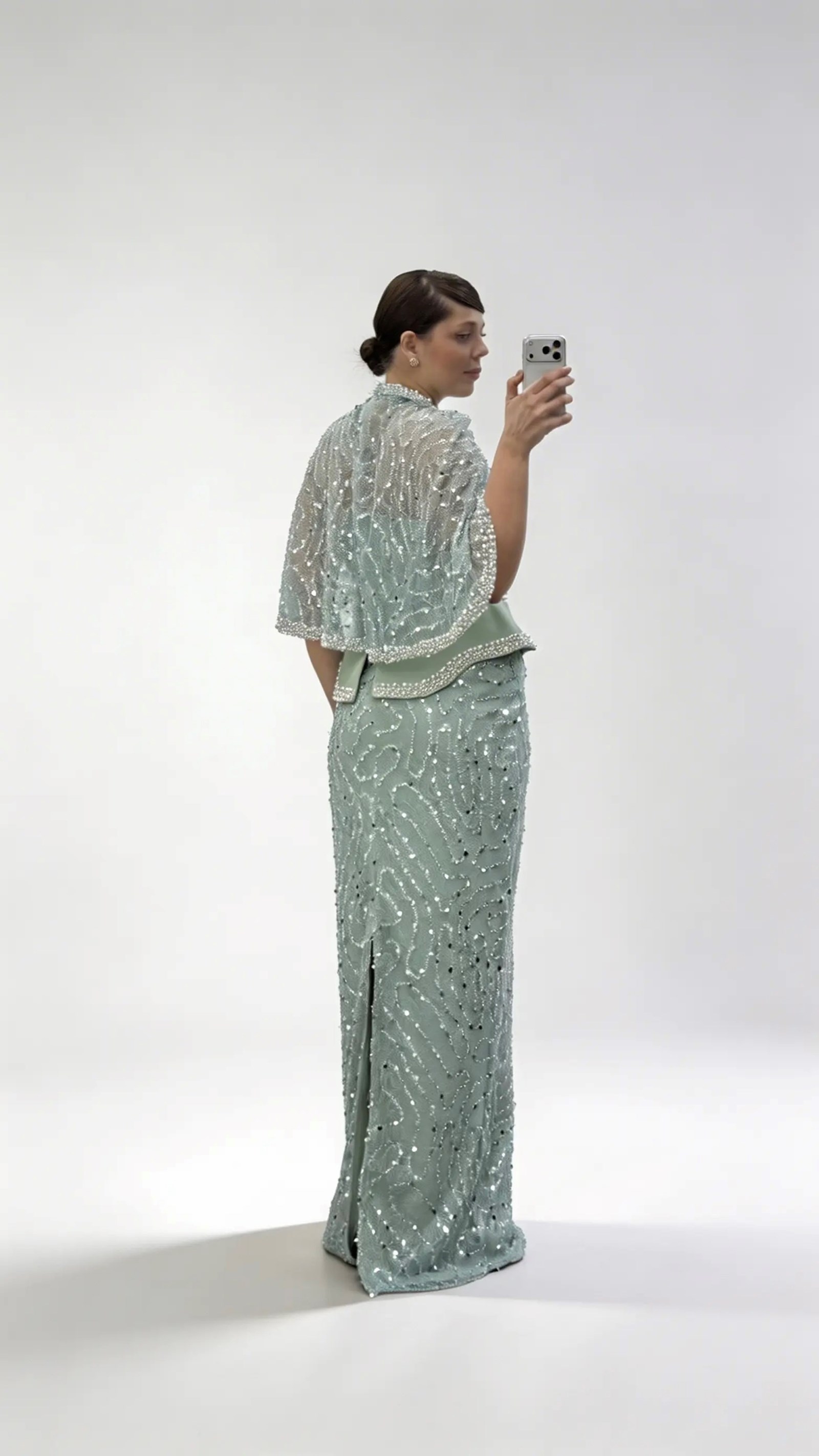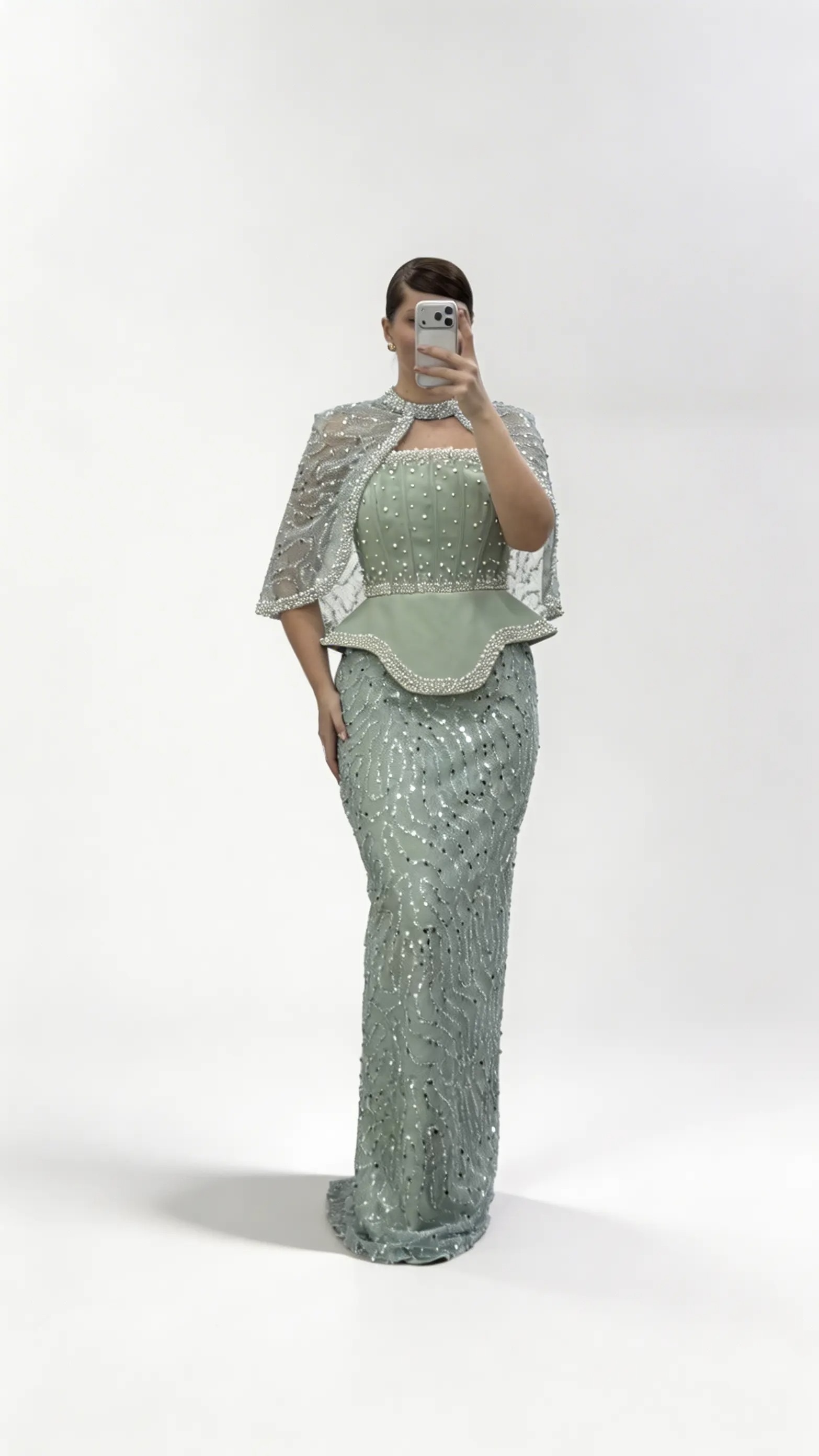 Mintgrünes  trägerloses Pailletten Abendkleid in Übergröße mit Cape