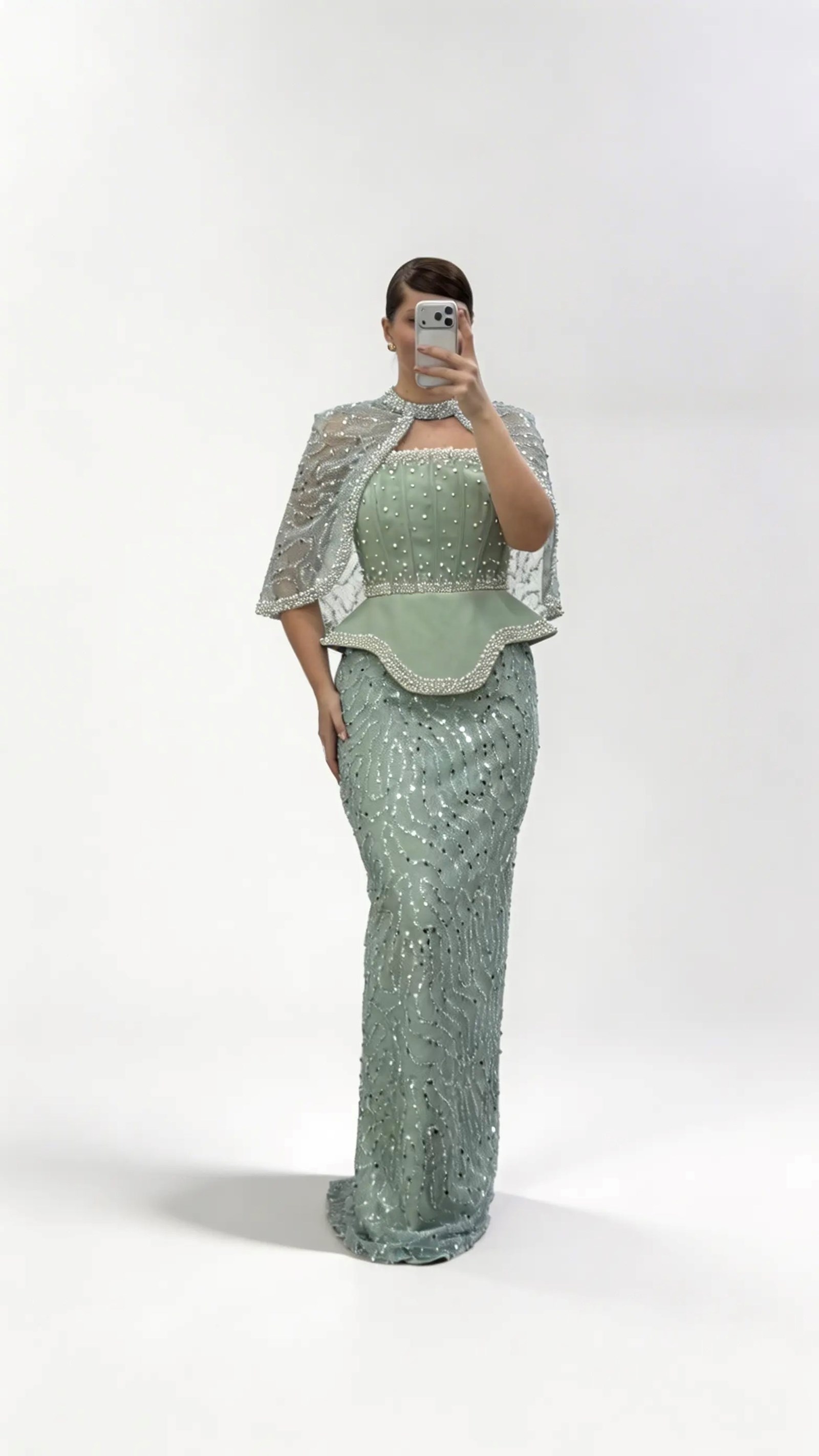 • Mint Straplez  Pelerinli Pul Payet Büyük Beden Abiye Elbise