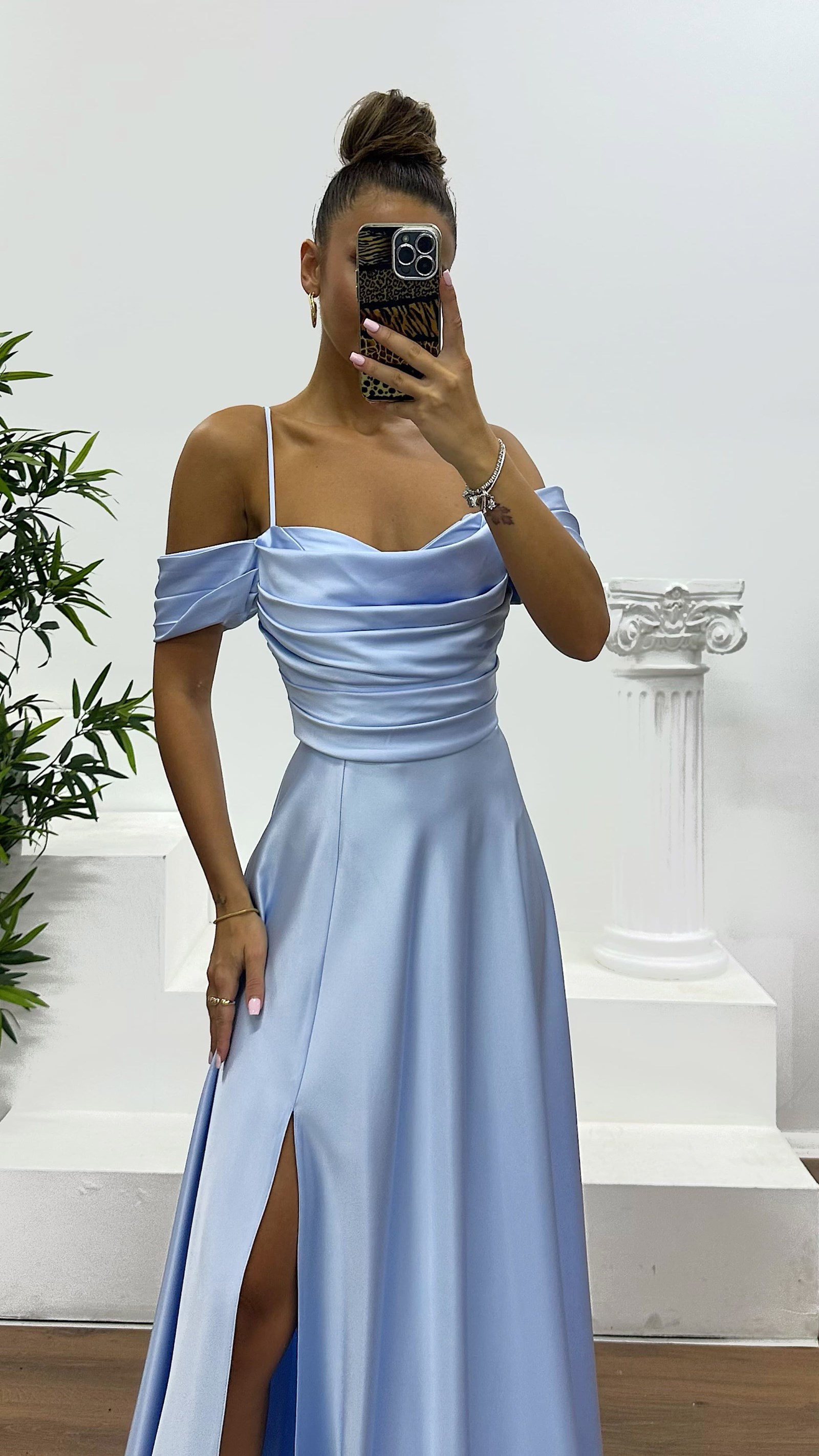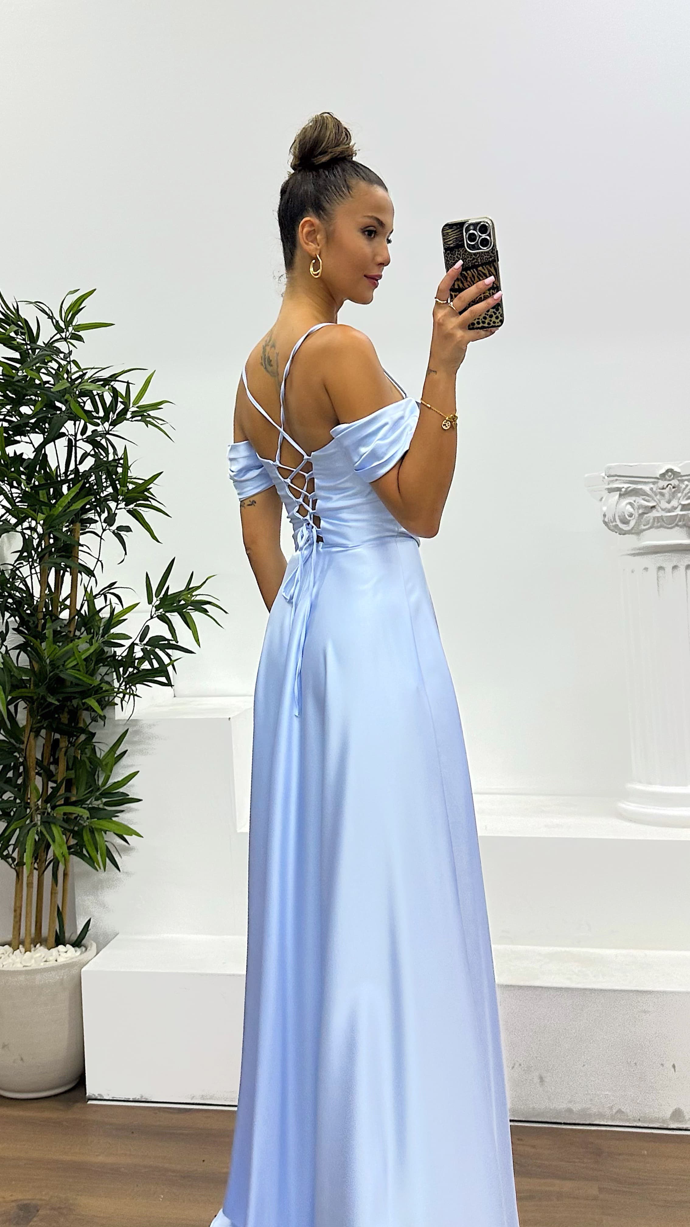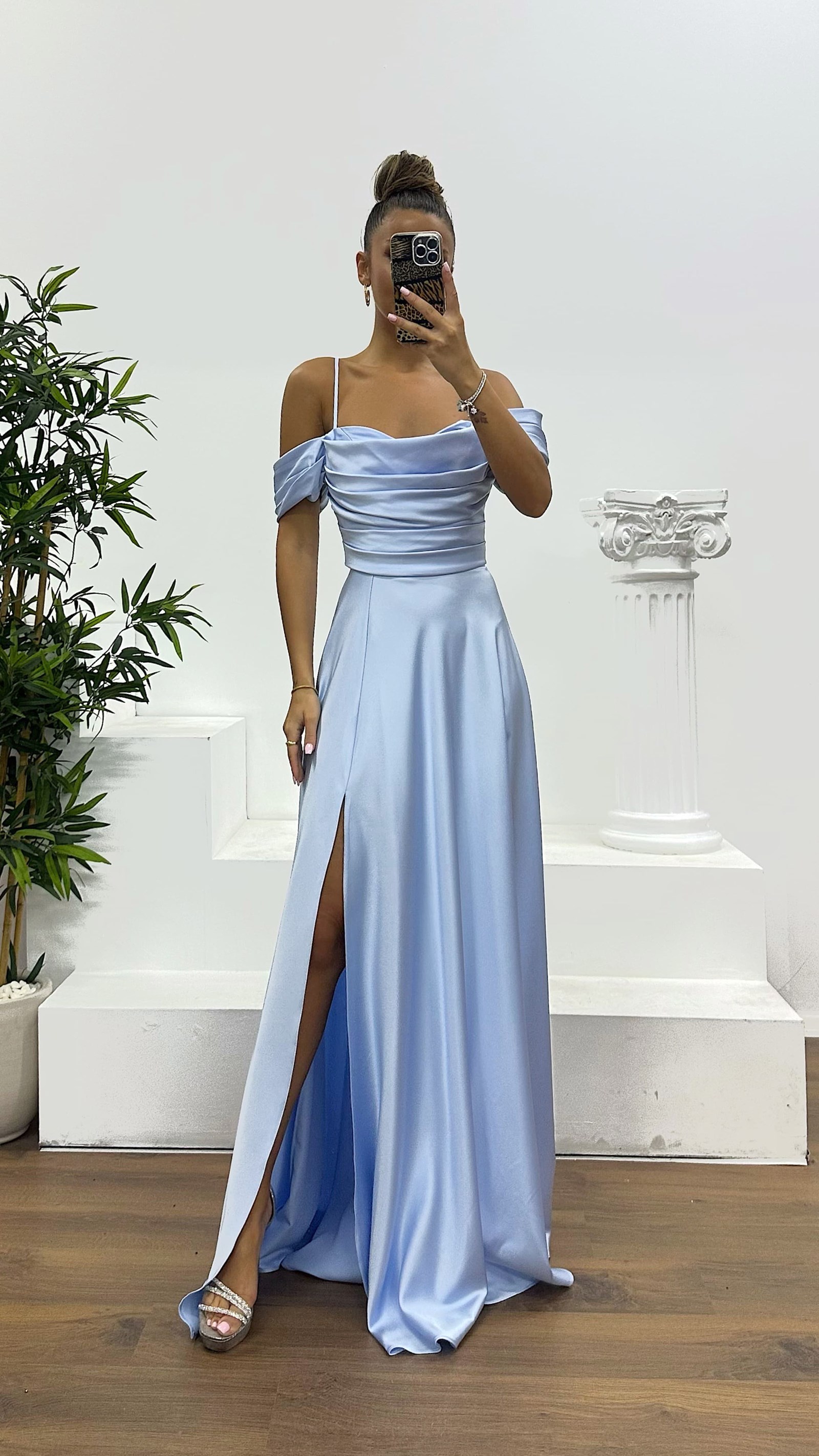 • Açık Mavi Sırt Detay Drapeli Abiye Elbise