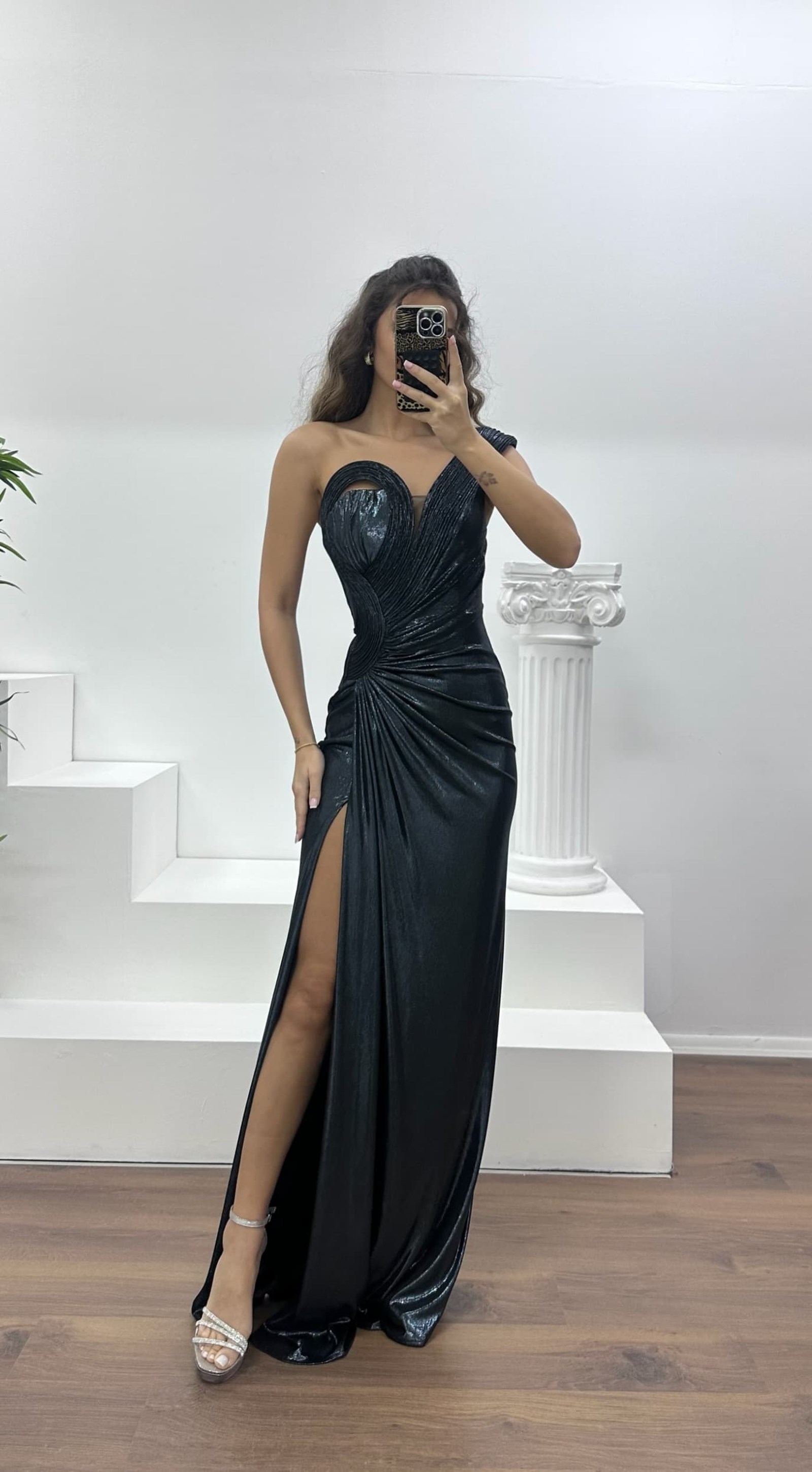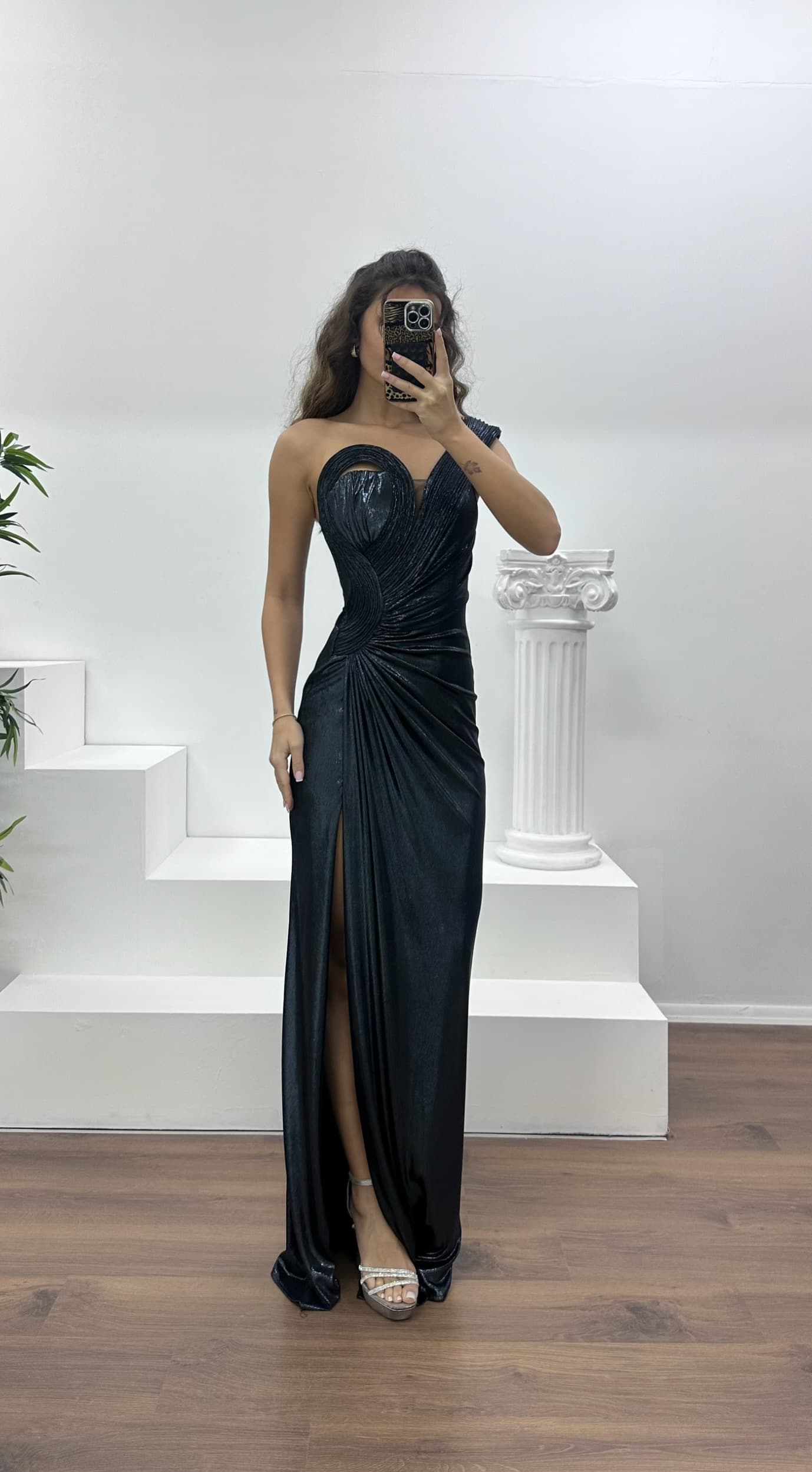 Ürün 36-44 bedene kadar uyumludur. göğüs pedli, astarlı, arka kapama fermuar, yırtmaçlı, tek omuz abiye olarak tasarlanmıştır.