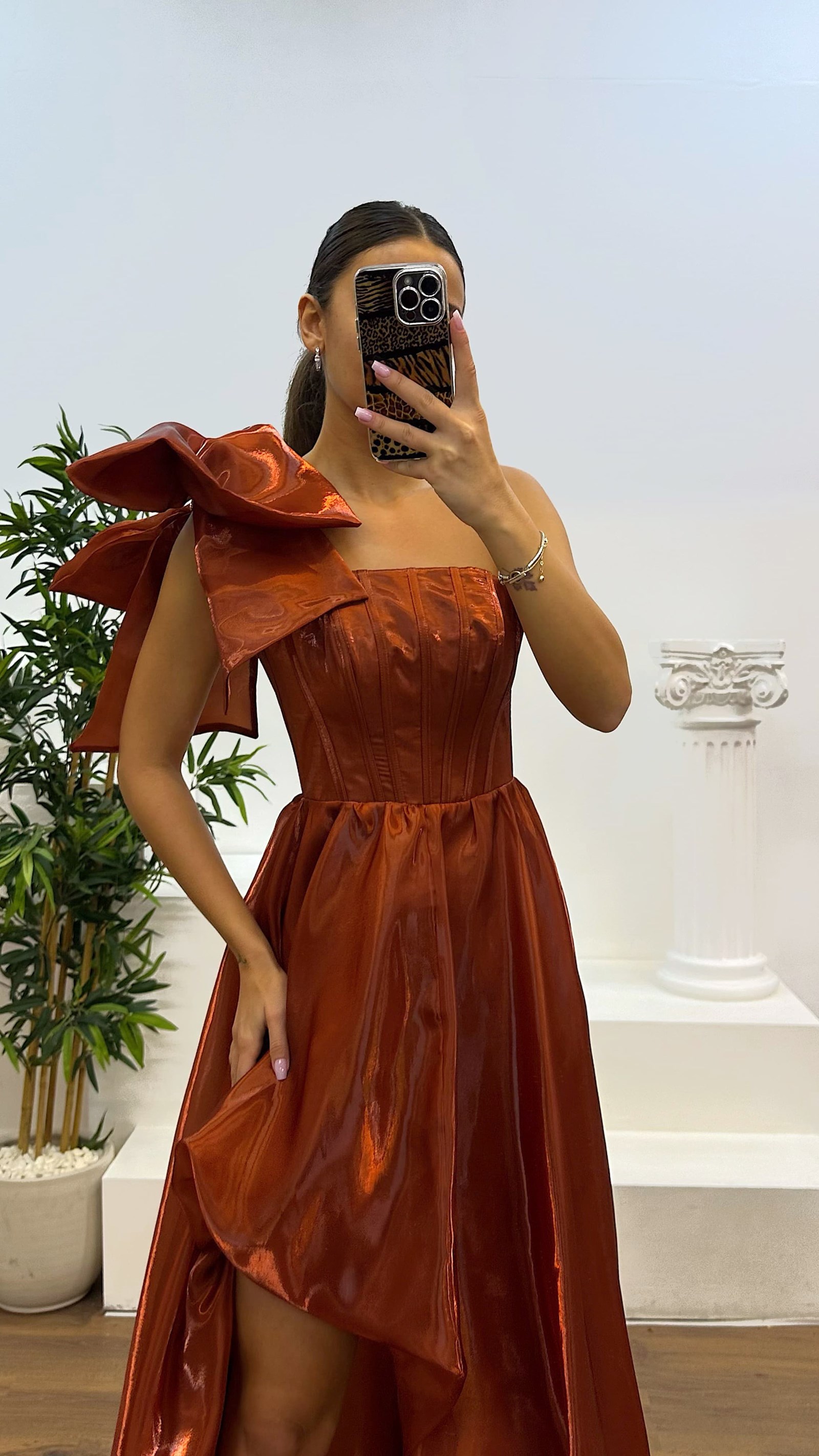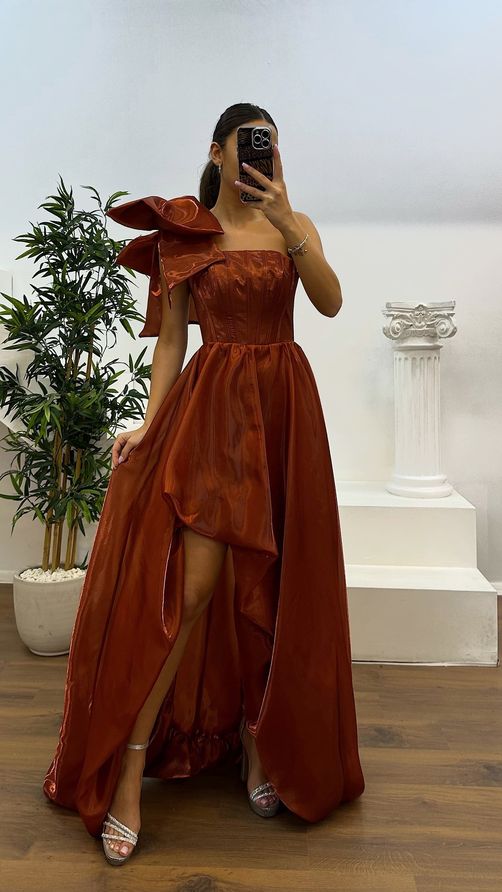 • Bakır Tek Omuz Abiye Elbise