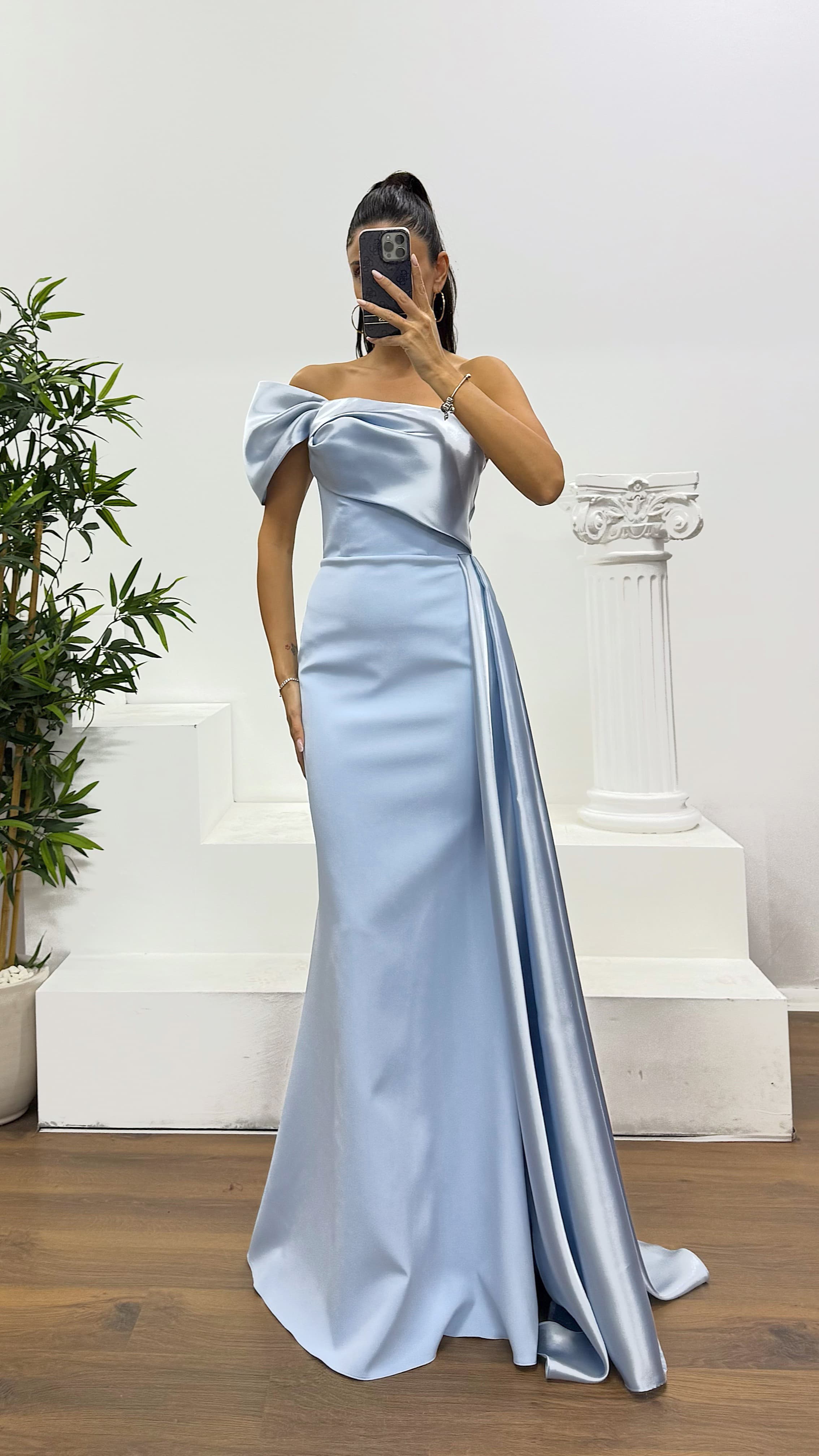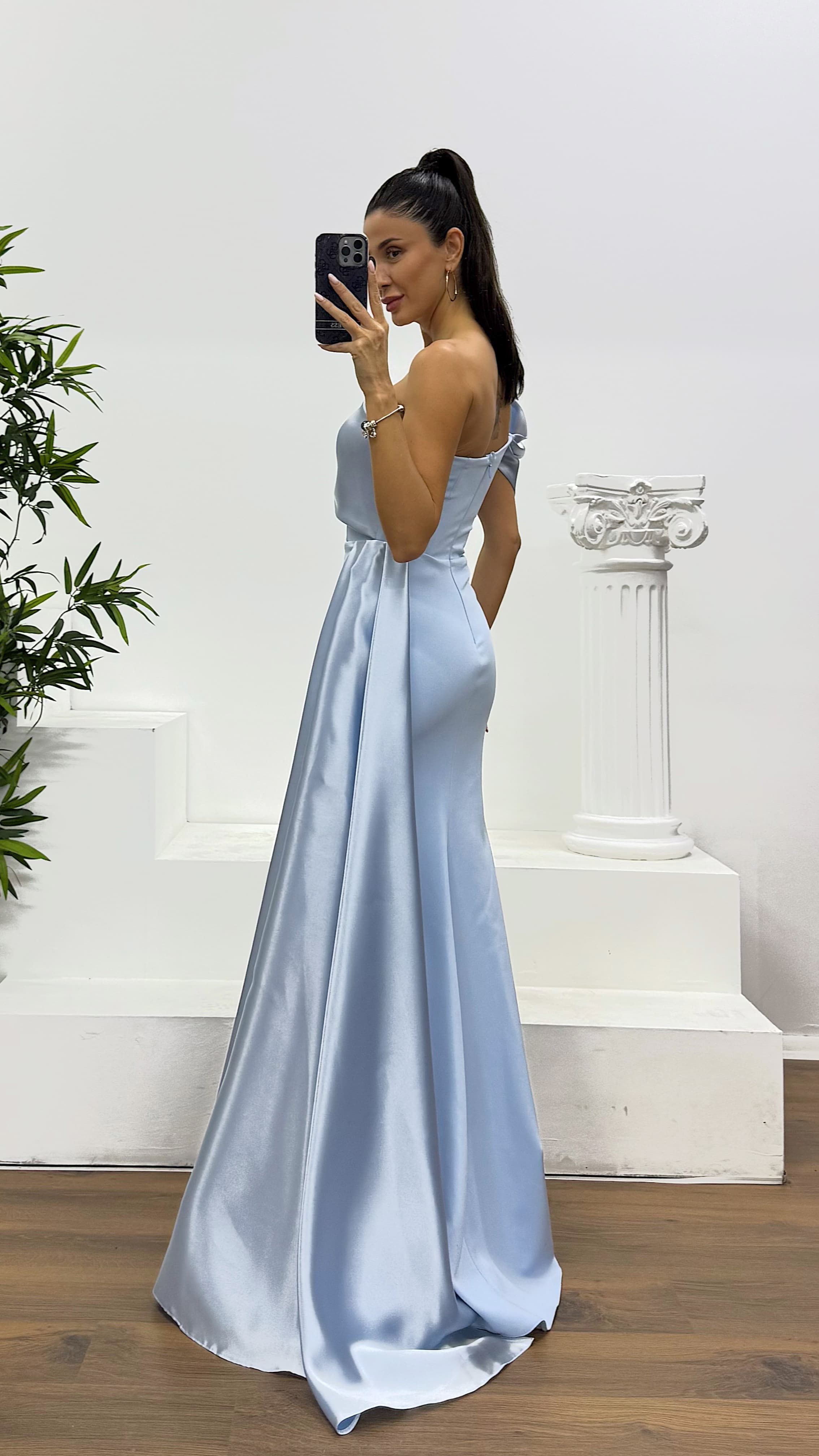 Ürün 36-42 bedene kadar uyumlu, göğüs pedli, astarlı, arka kapama fermuar, tek omuz abiye olarak tasarlanmıştır.