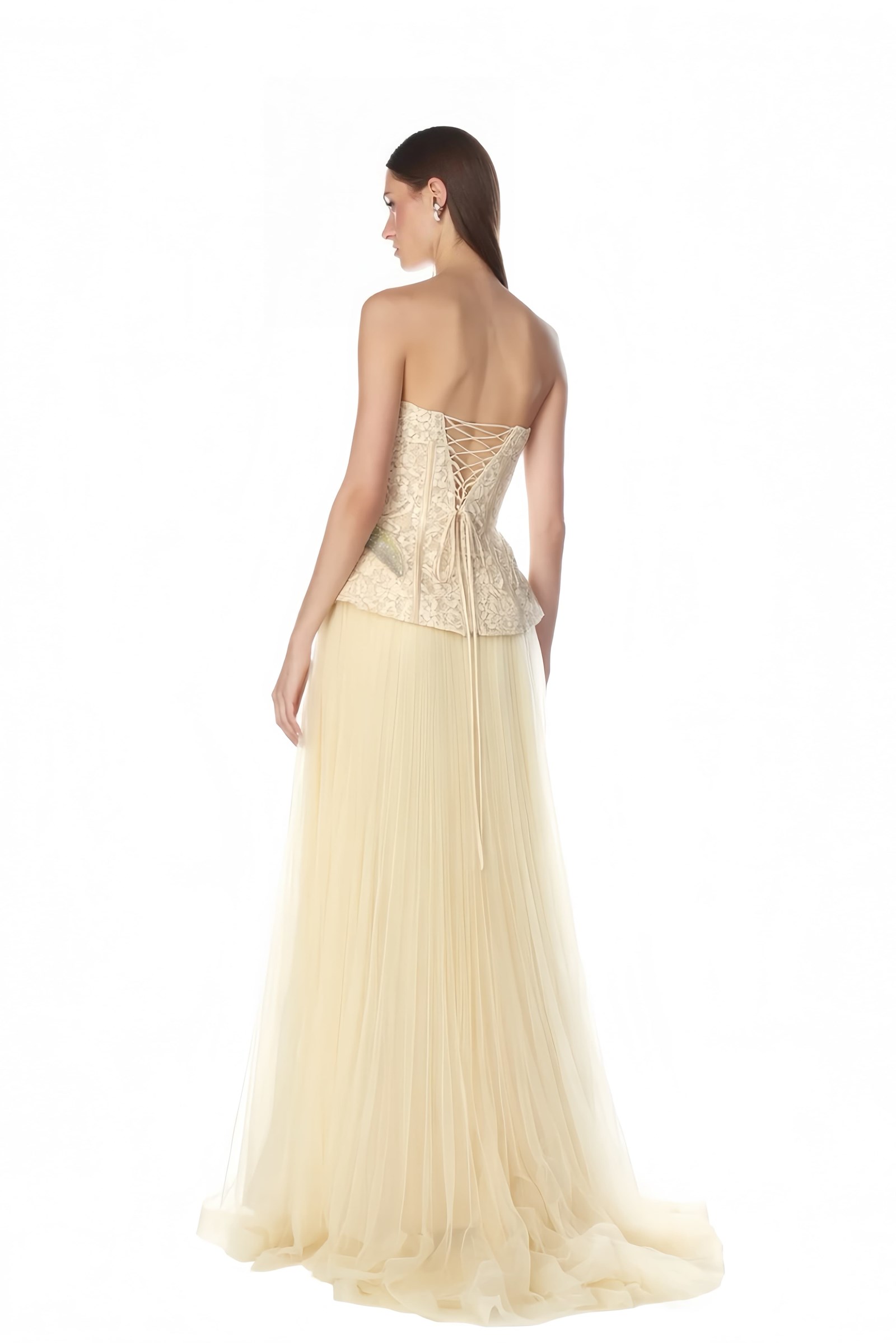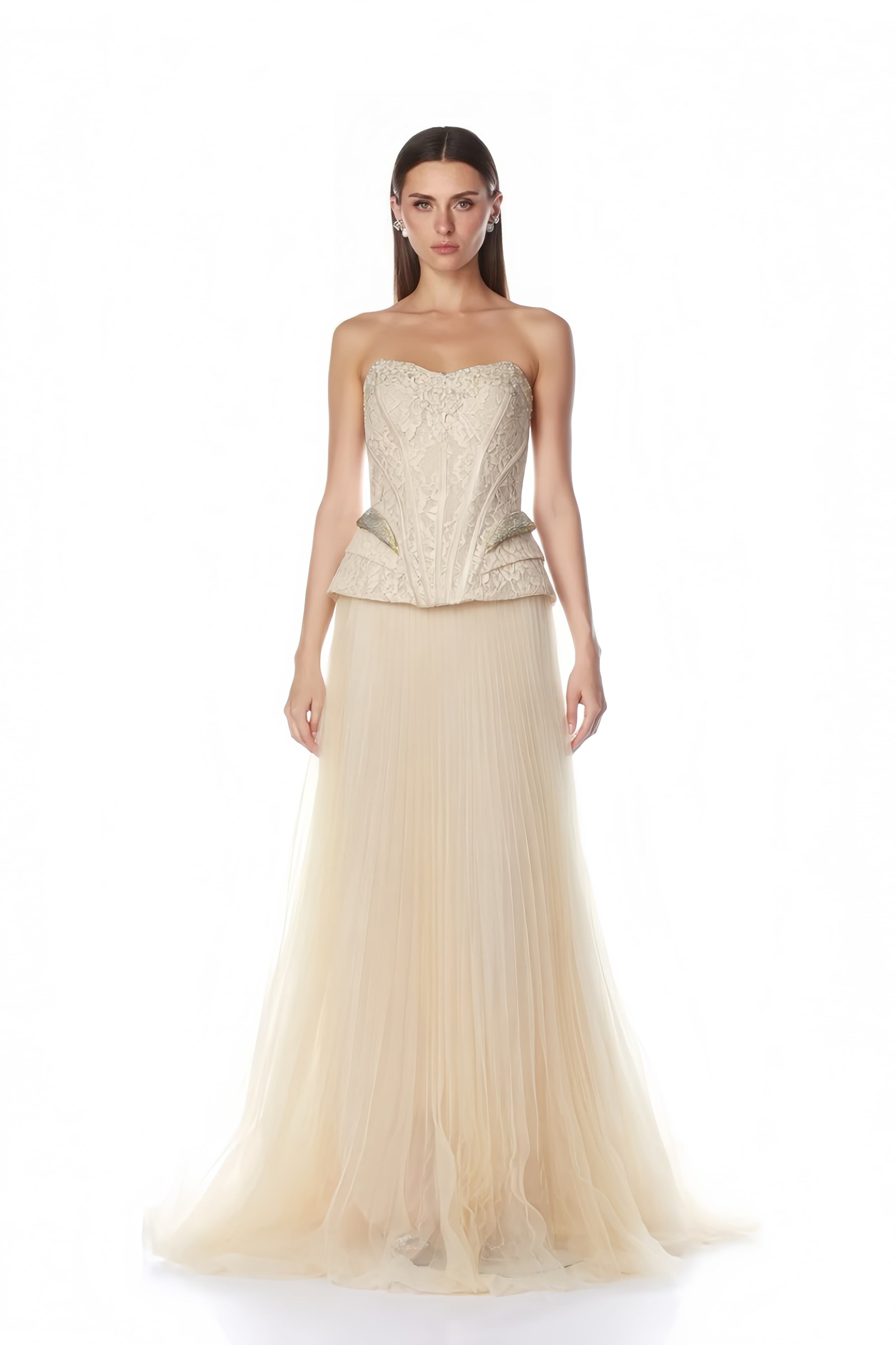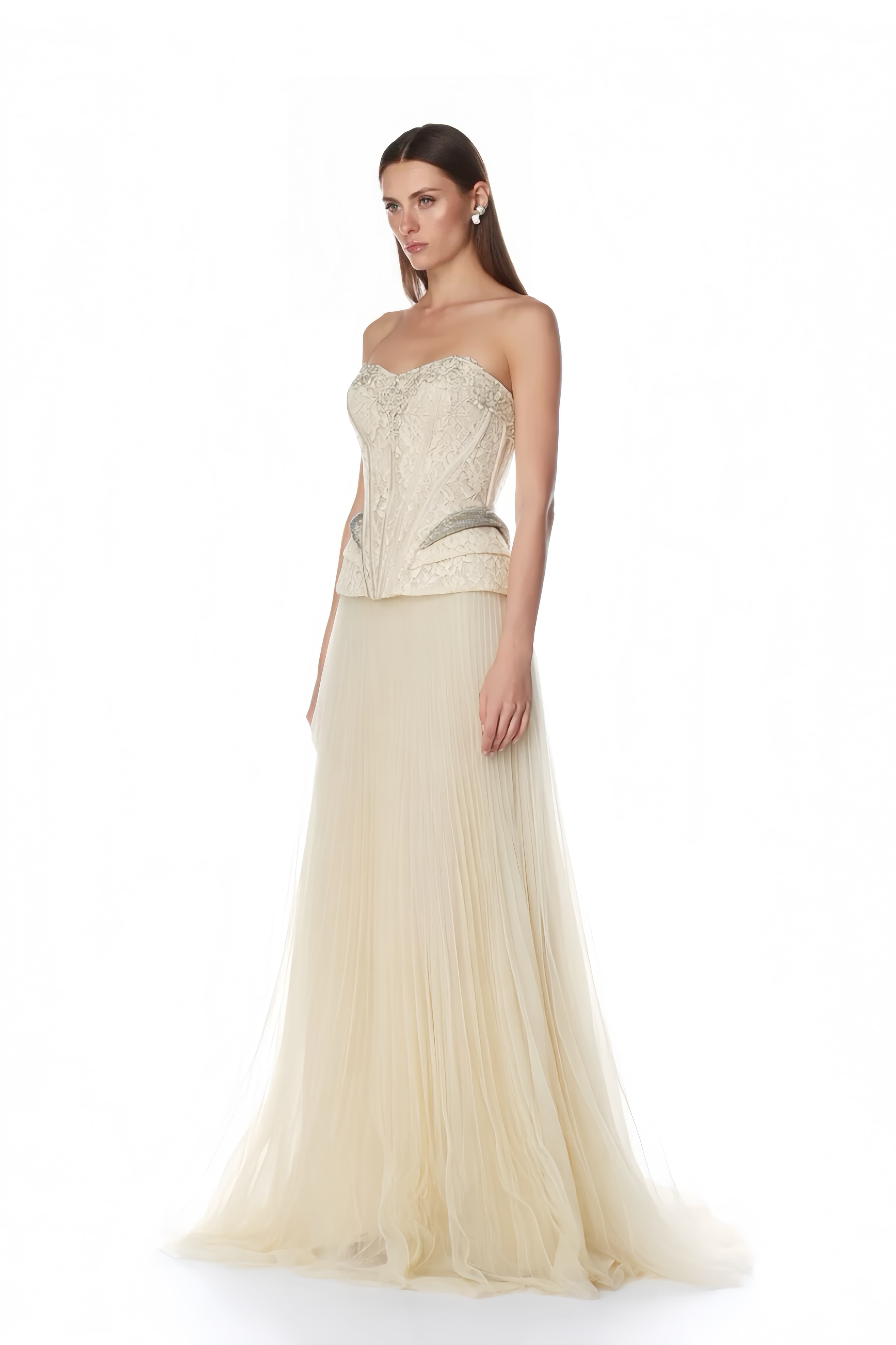 • Kemik Pilise Tül Etekli Abiye Elbise