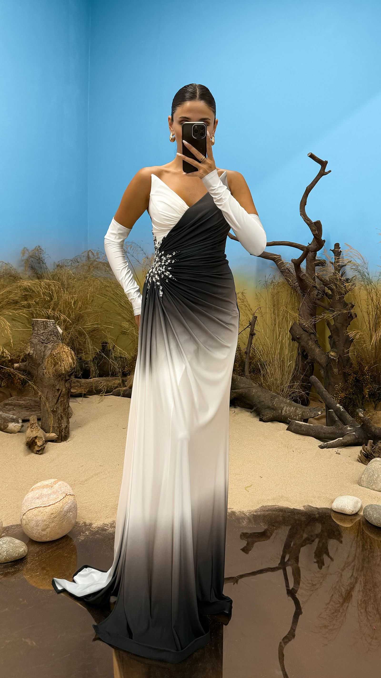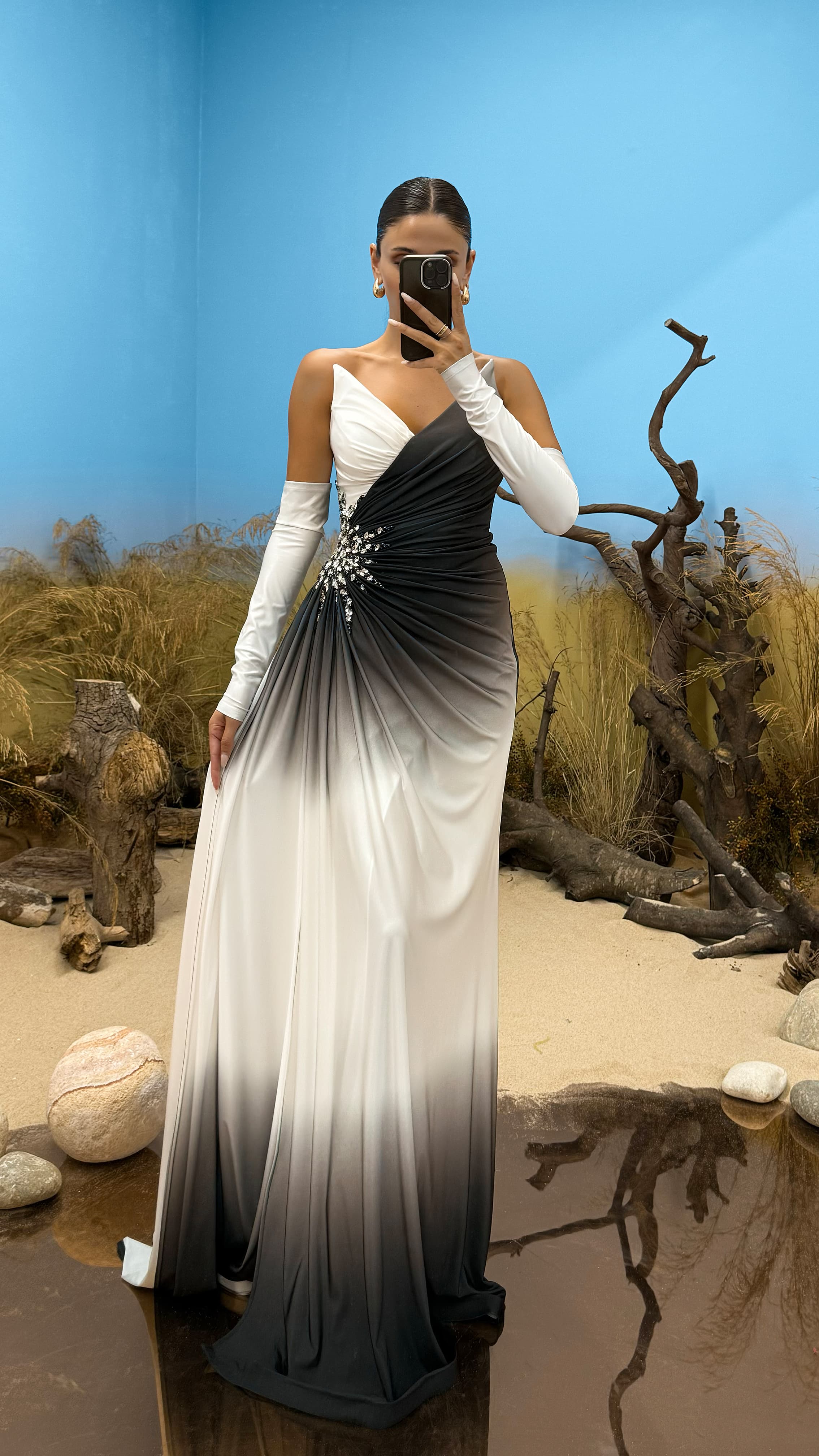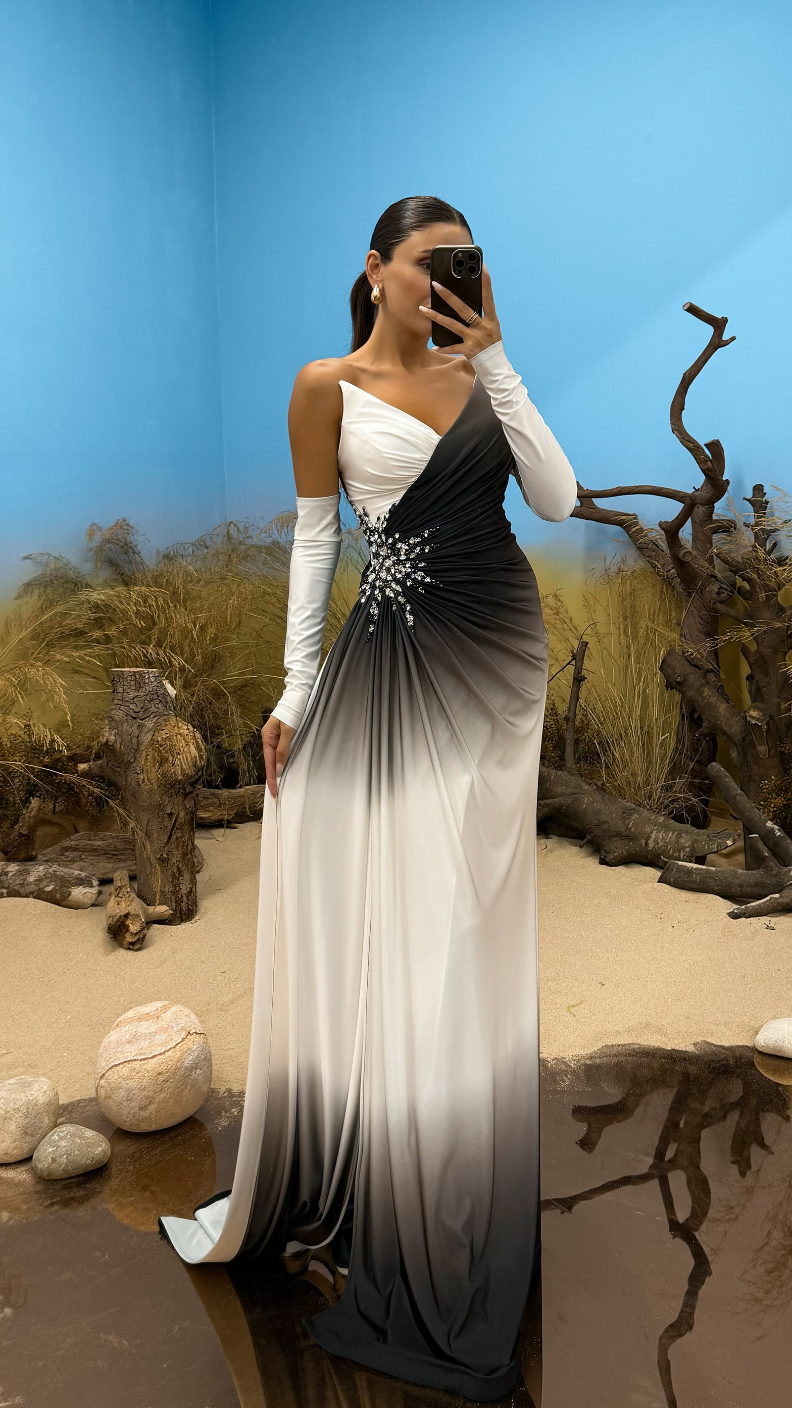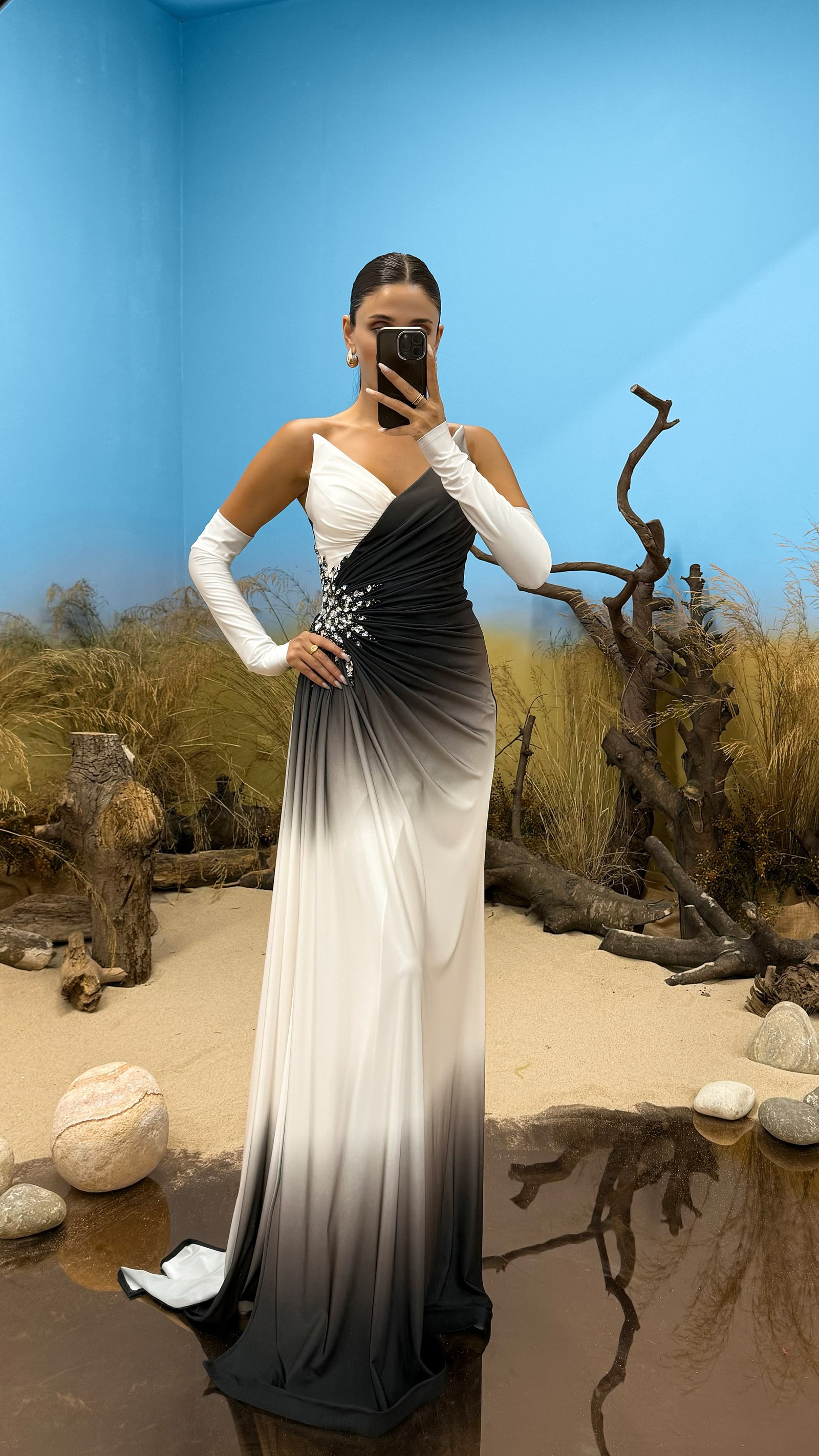 • Vizon Straplez Bel İşleme Detay Abiye Elbise
