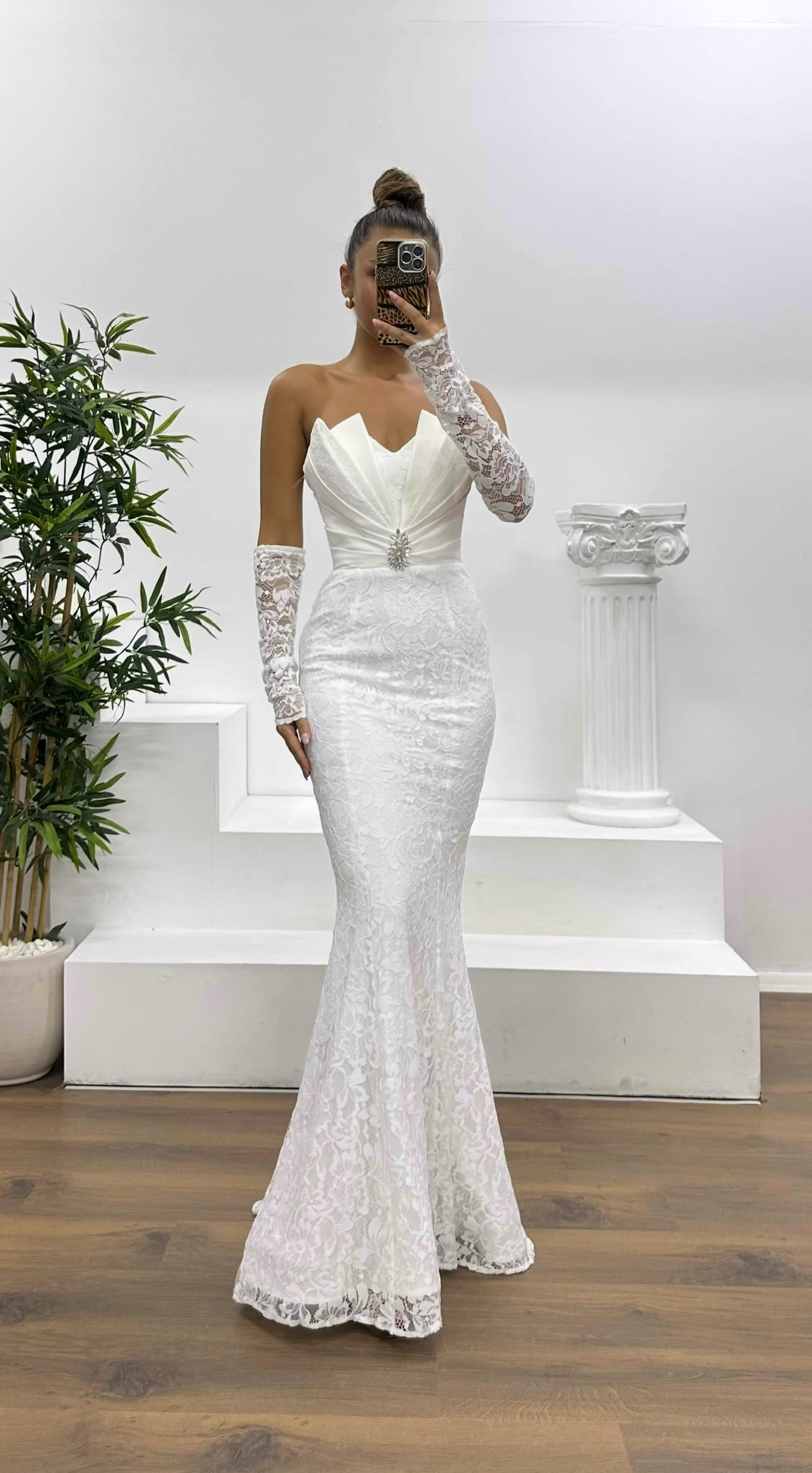 Straplez dantel abiye elbise