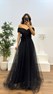 • Siyah Madonna Yaka Tül Abiye Elbise