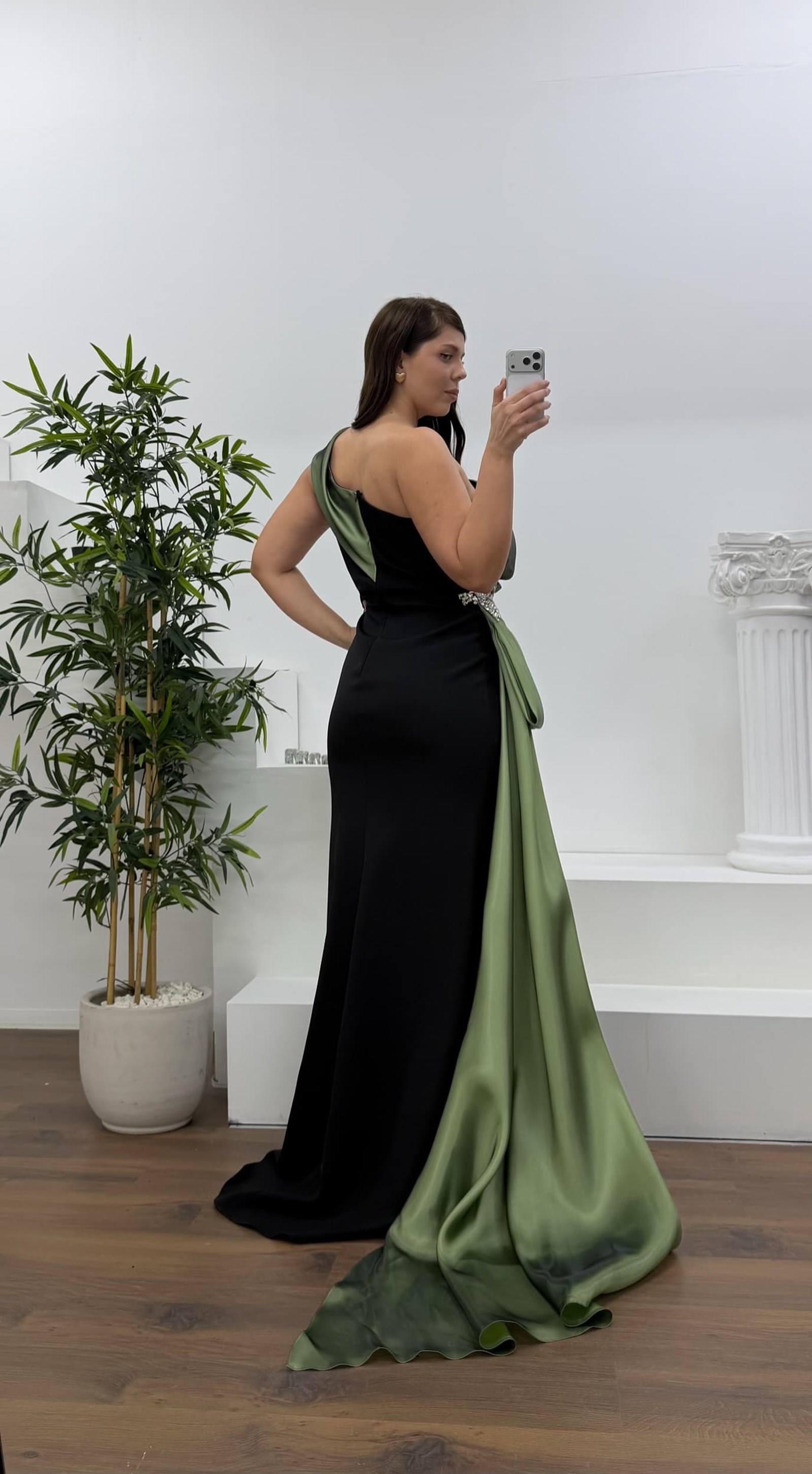 • Kemik Tek Omuz Taş Detay Büyük Beden Abiye Elbise