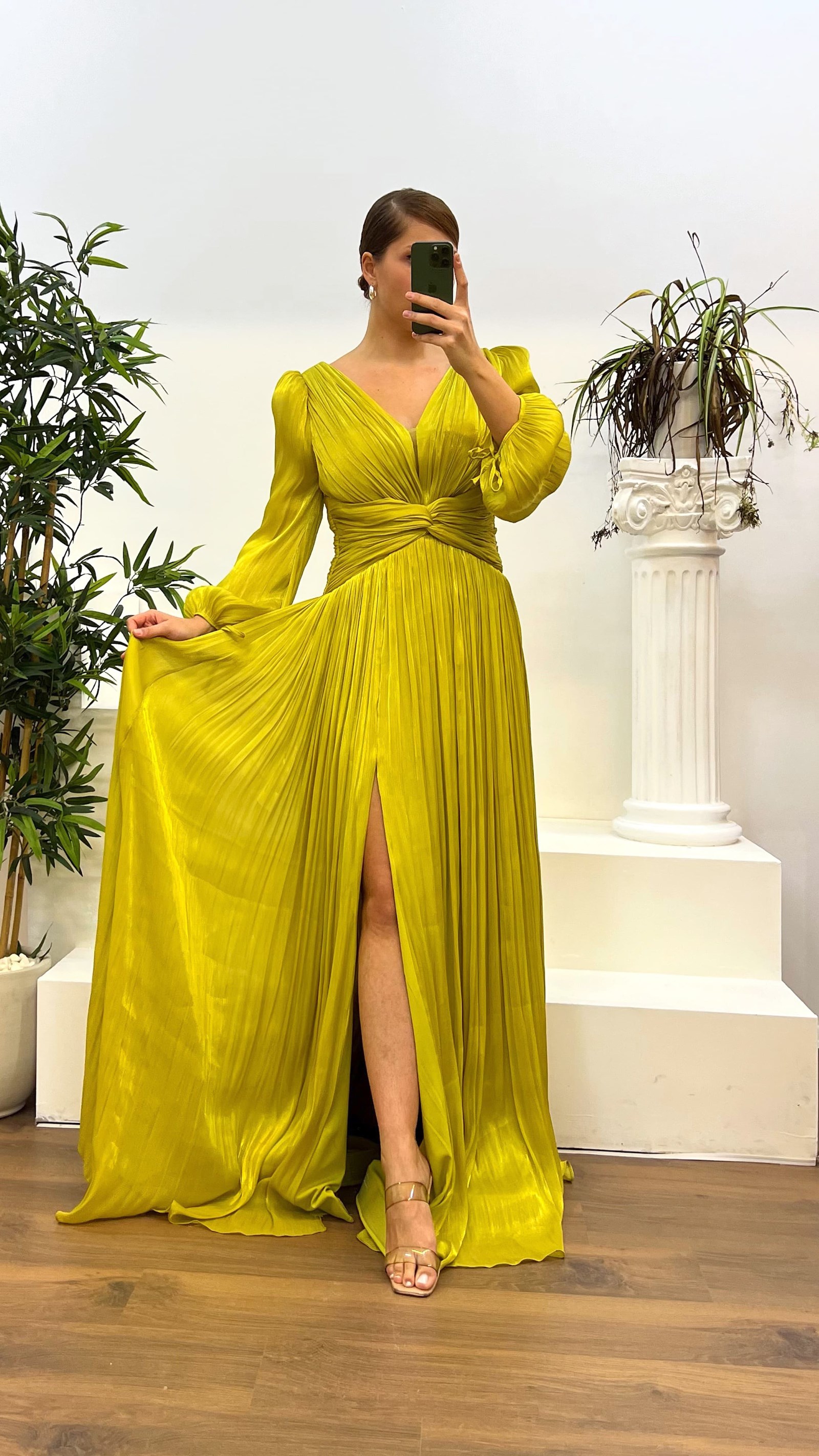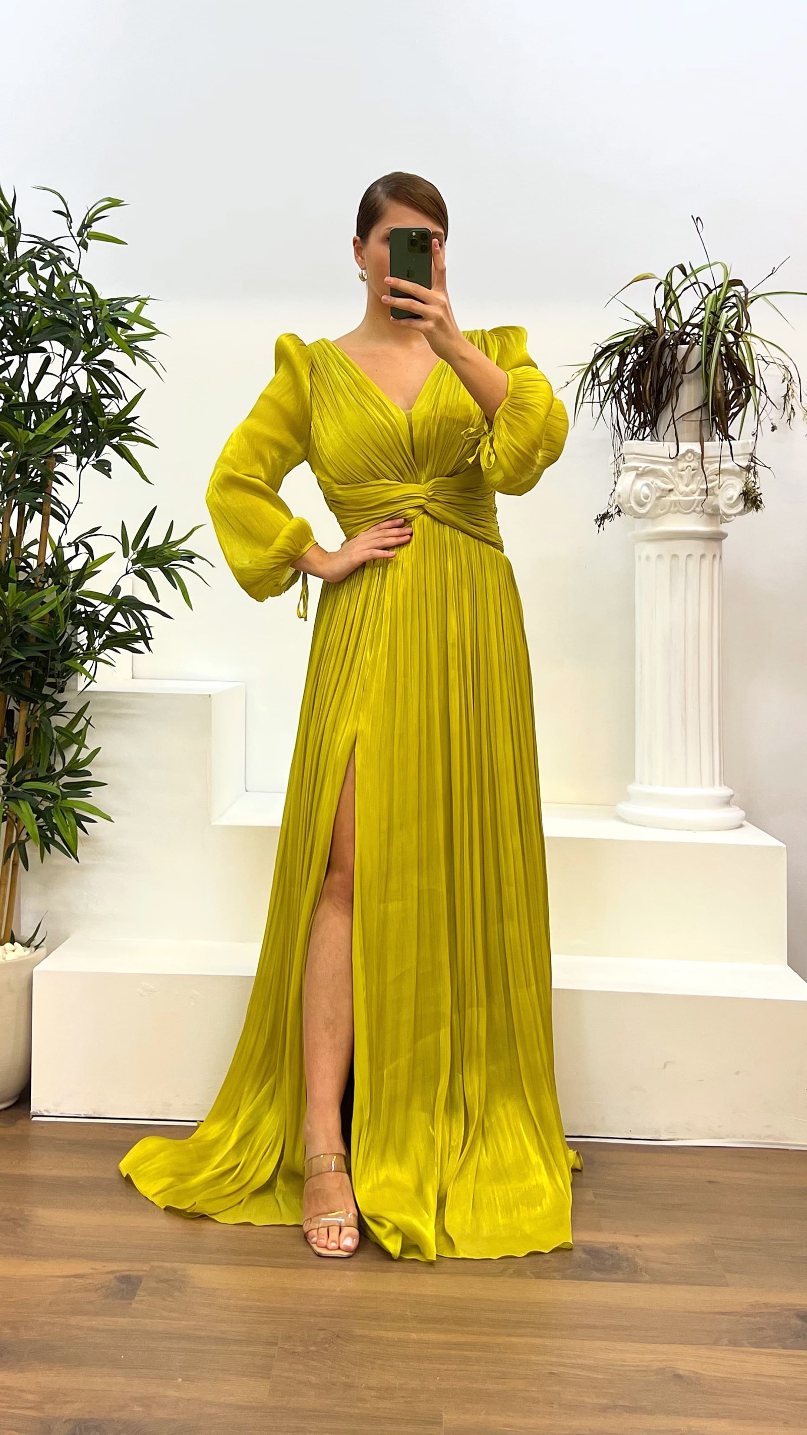 Balon kol drapeli abiye elbise