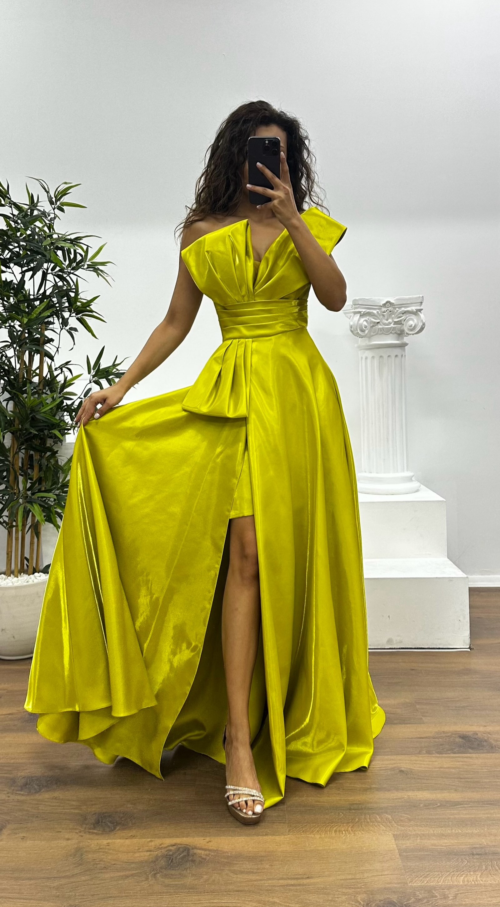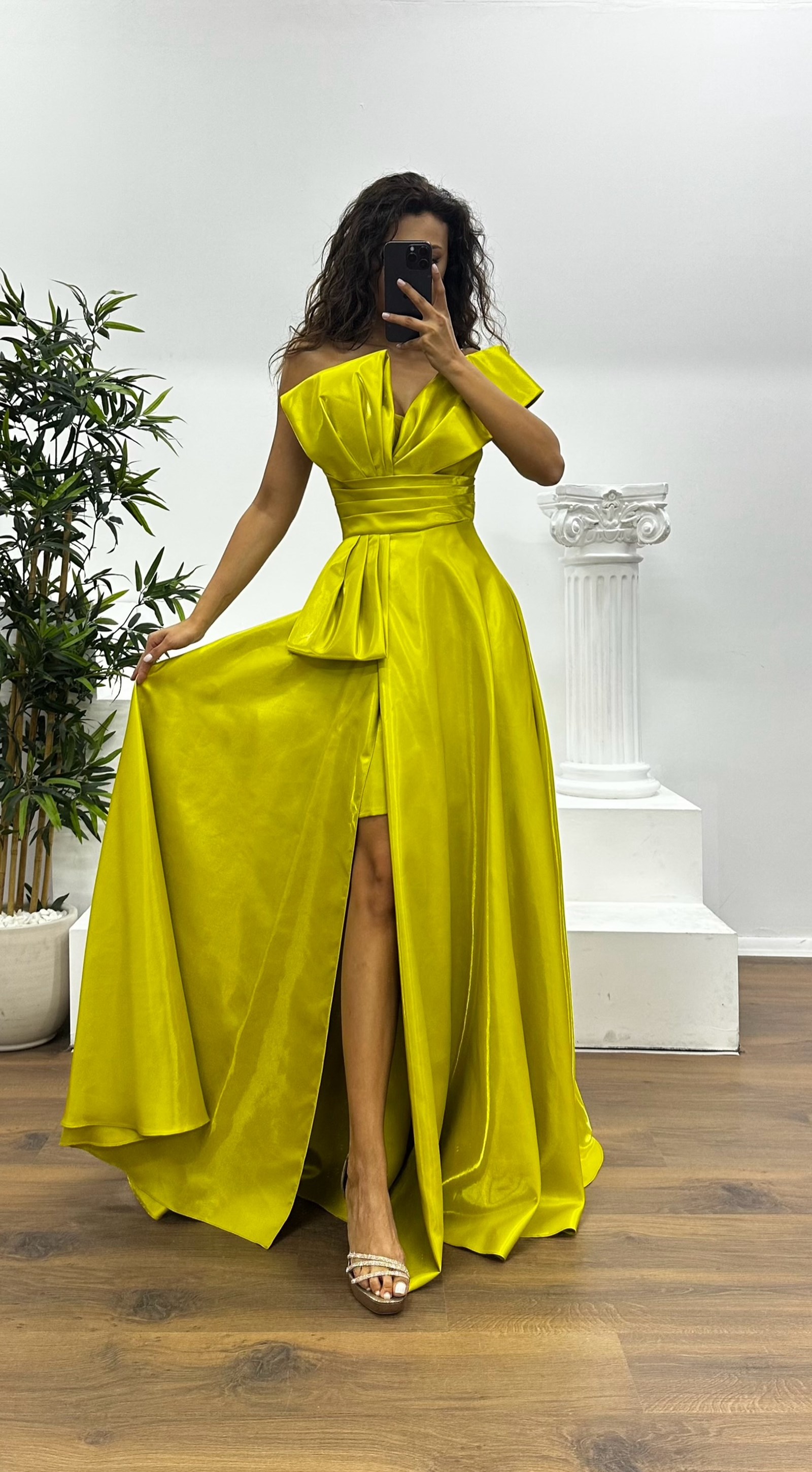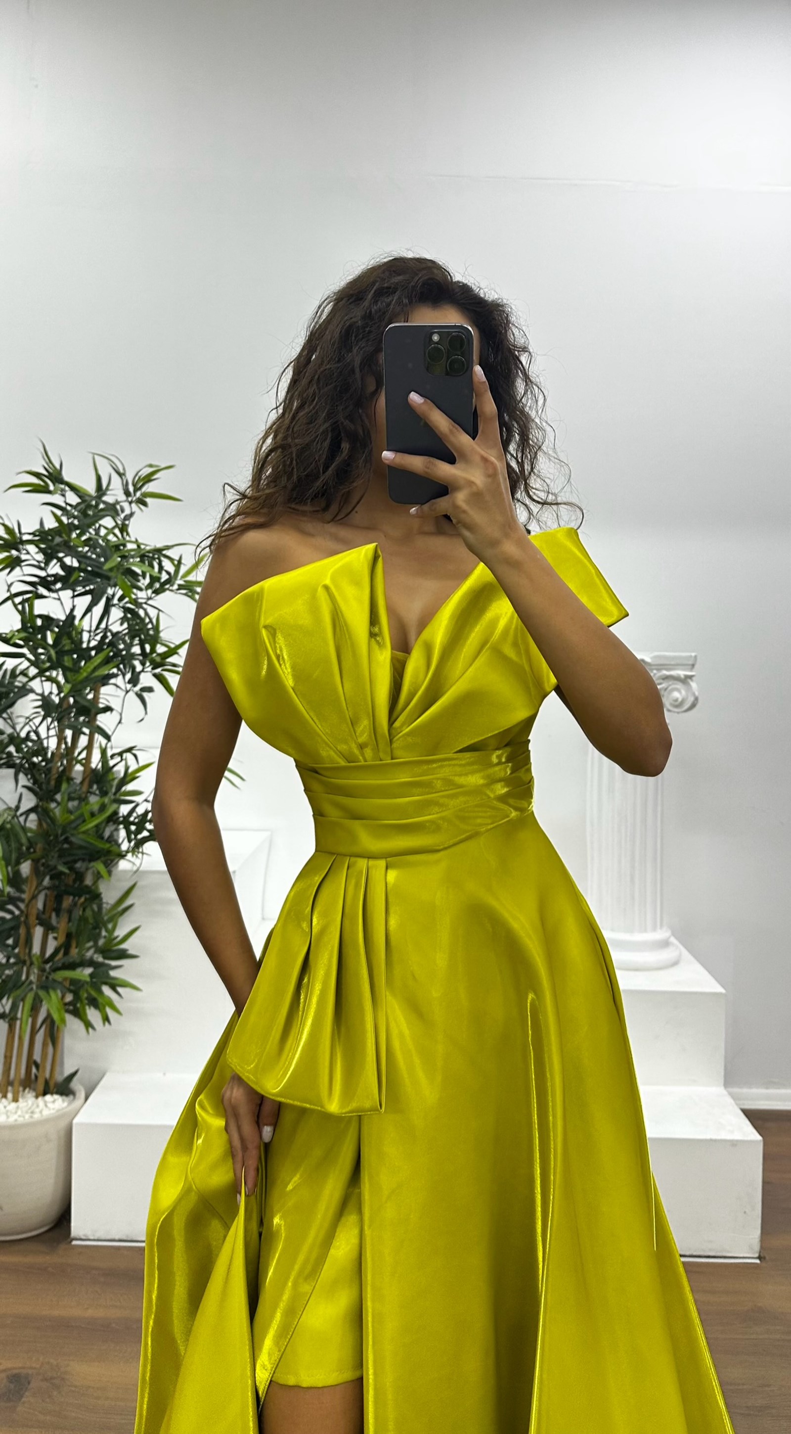 Ürün 36-42 bedene kadar uyumlu, göğüs pedli, astarlı, arka kapama fermuar, yırtmaçlı abiye olarak tasarlanmıştır.