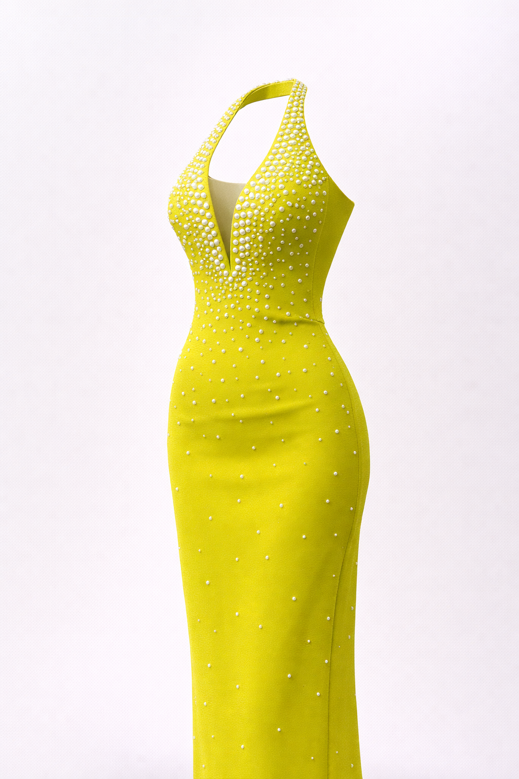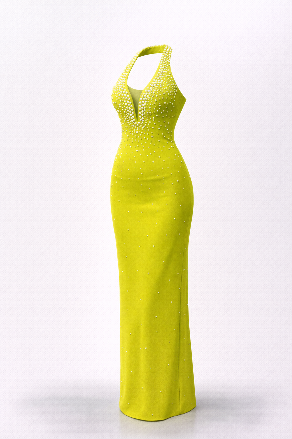 Halter yaka inci detay abiye elbise