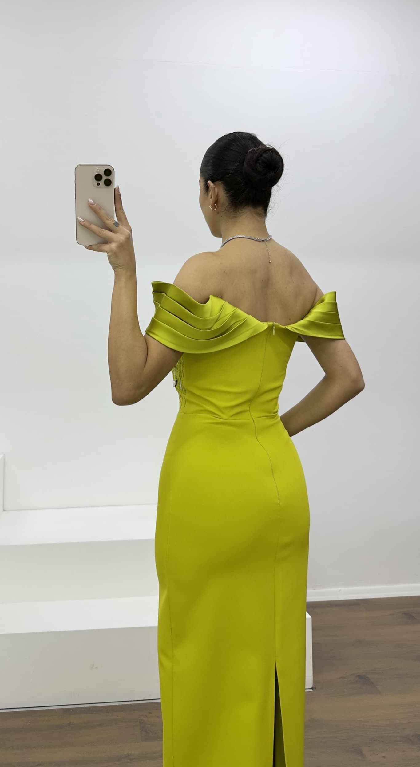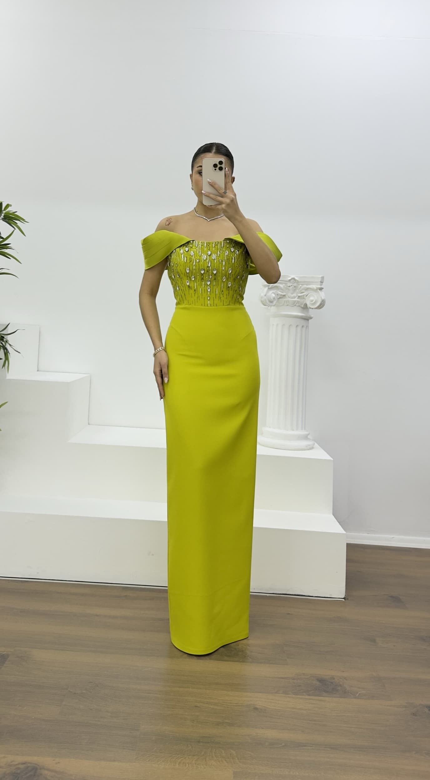 Ürün 36-42 bedene kadar uyumludur. göğüs pedli, astarlı, arka kapama fermuar, arka yırtmaçlı abiye olarak tasarlanmıştır.