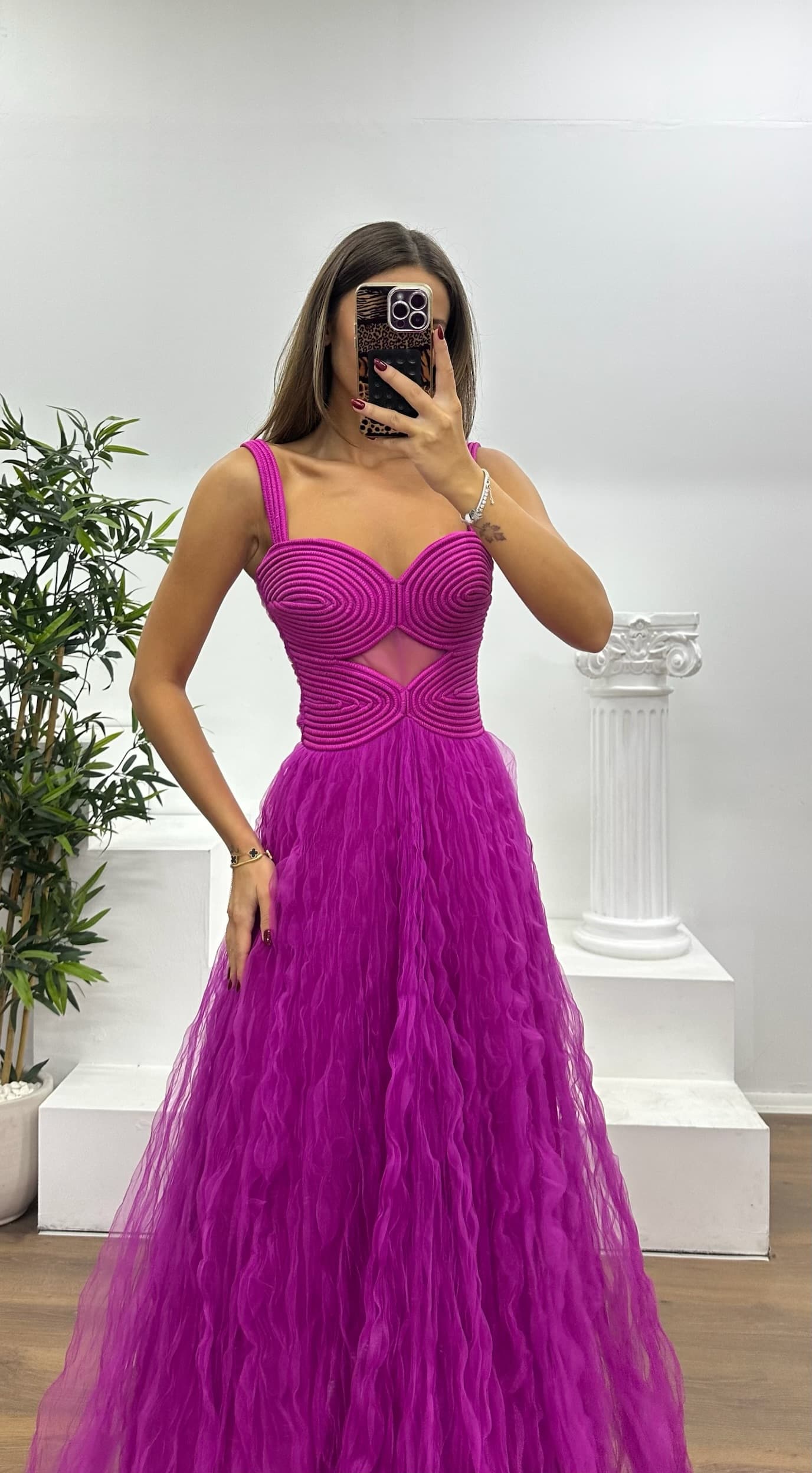 Ürün 36-44 bedene kadar uyumlu, göğüs pedli, astarlı, arka kapama fermuar, göğüs detay abiye olarak tasarlanmıştır.